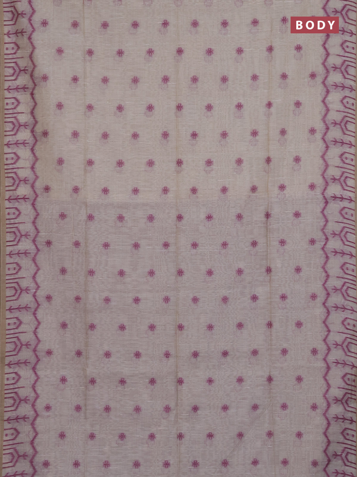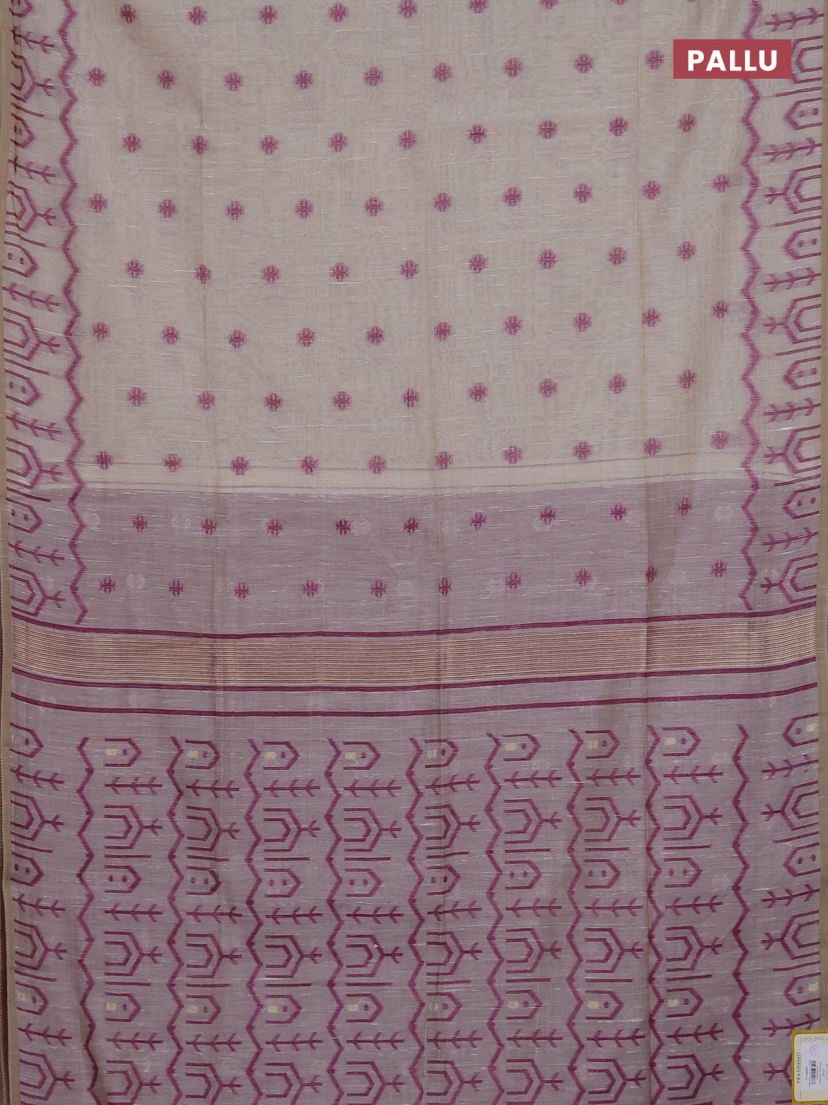 Munga cotton saree beige and purple with thread woven buttas and weaving pallu