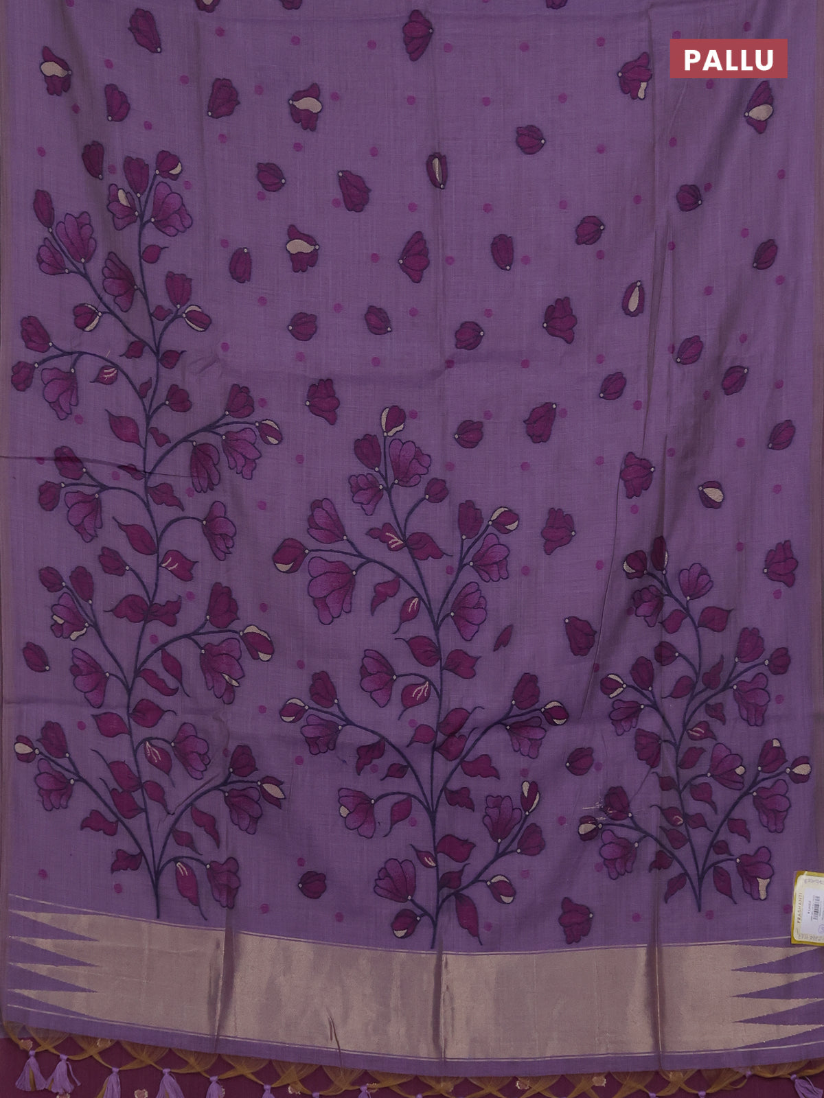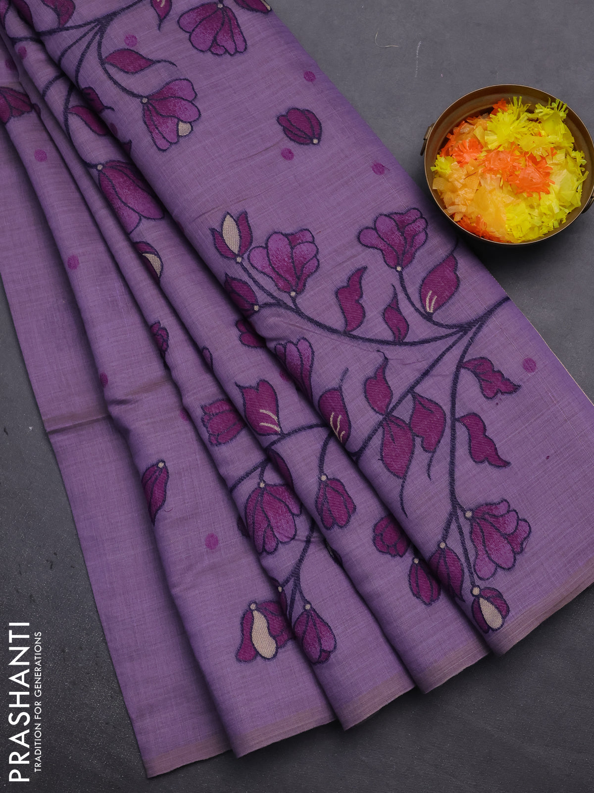 Munga cotton saree lavender and purple with thread woven floral buttas in borderless style