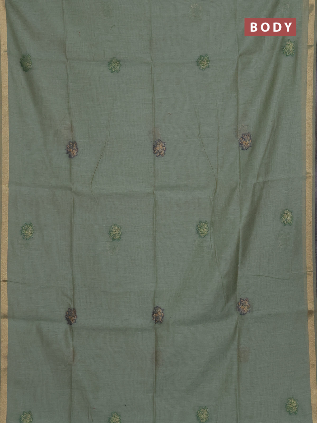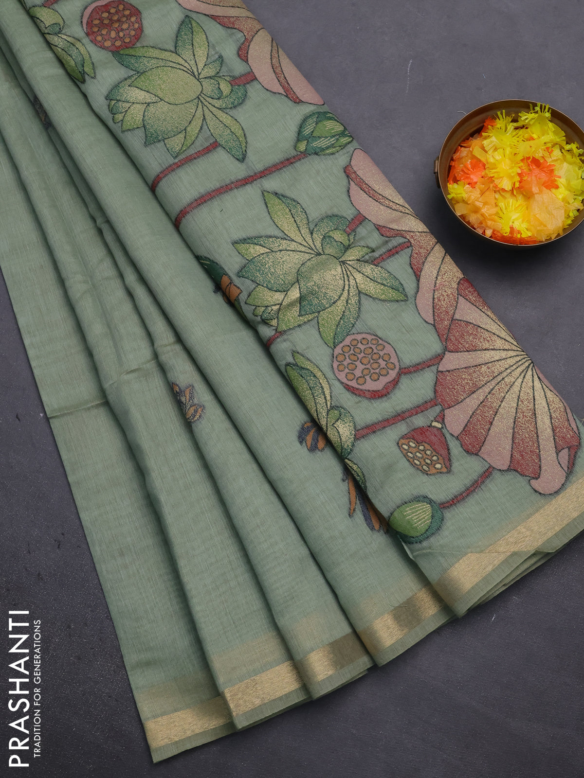 Munga cotton saree pastel green with thread woven floral buttas and floral design pallu