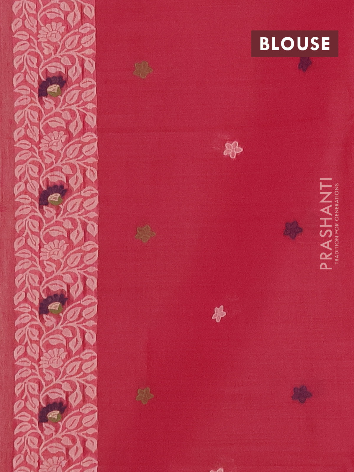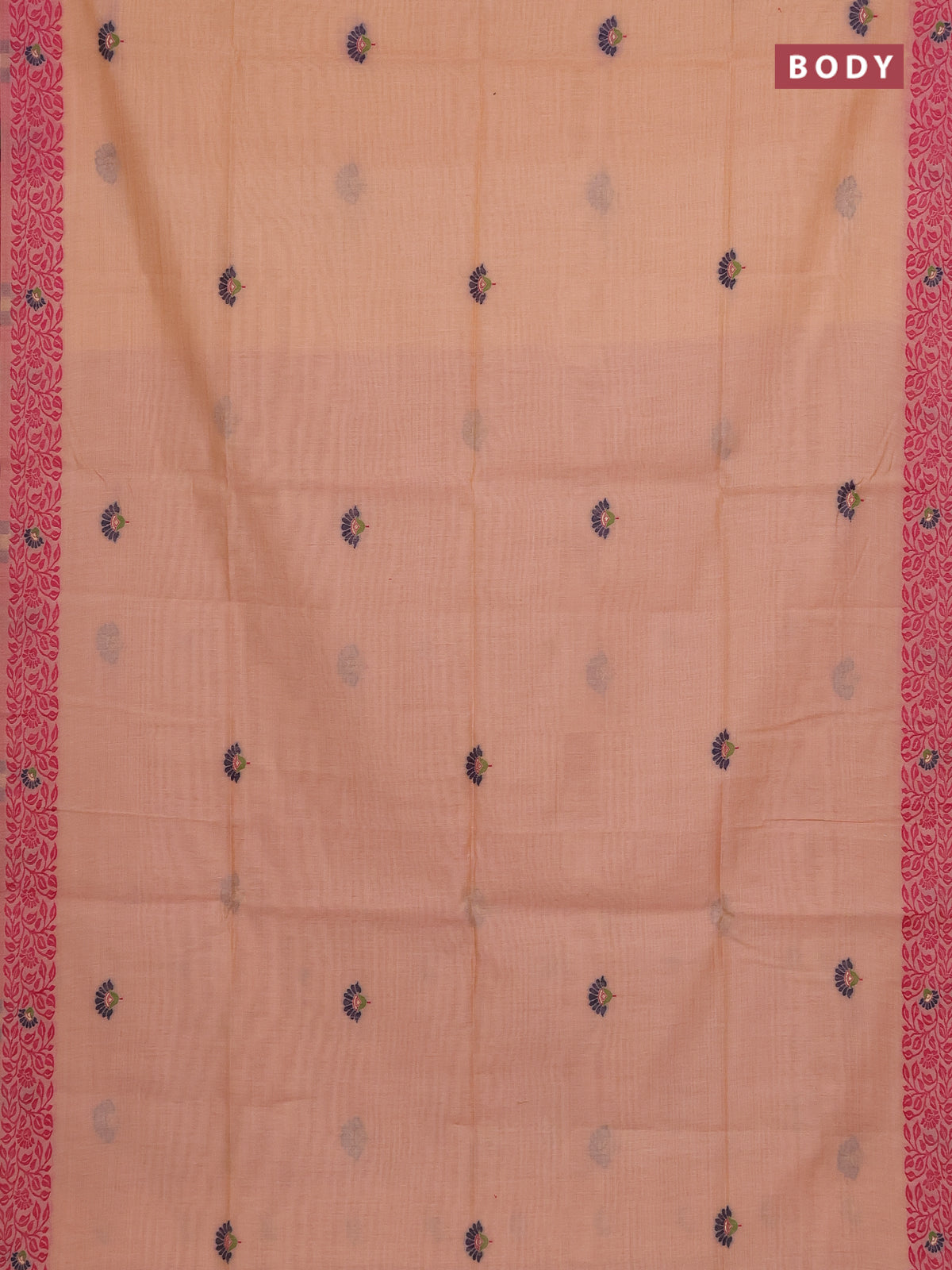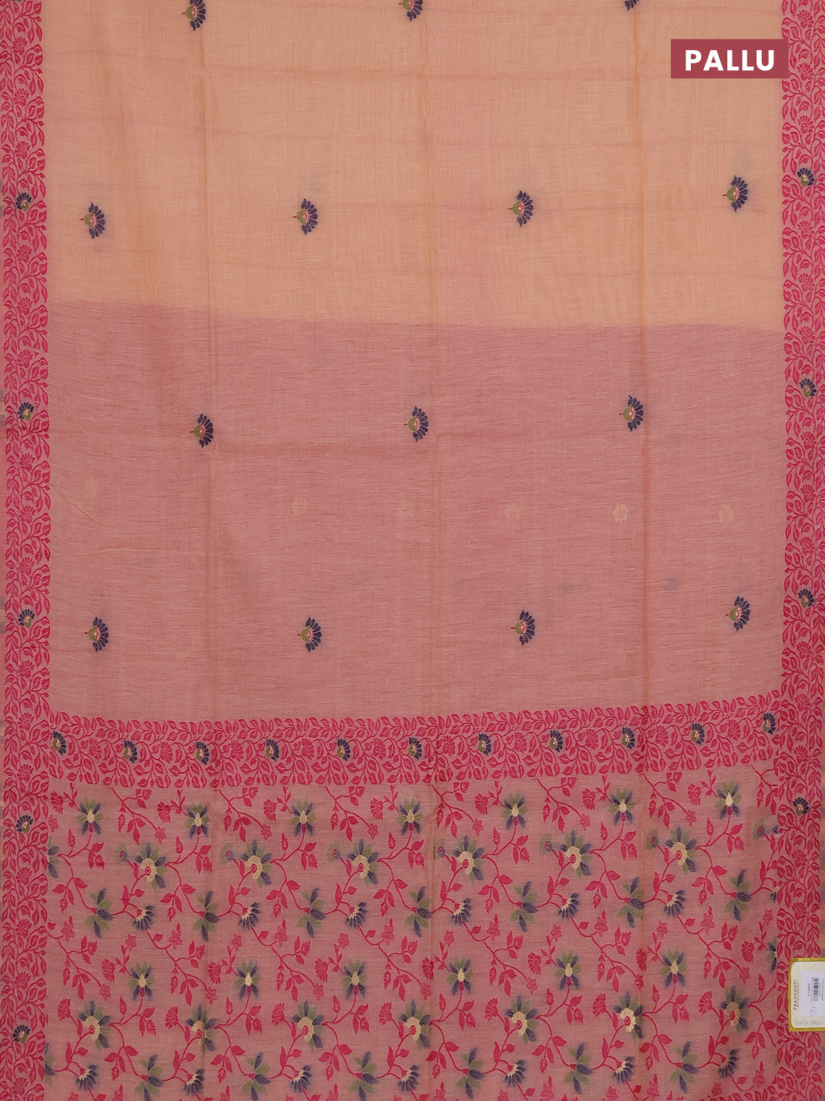 Munga cotton saree peach shade and pink with thread woven floral buttas and thread woven pallu