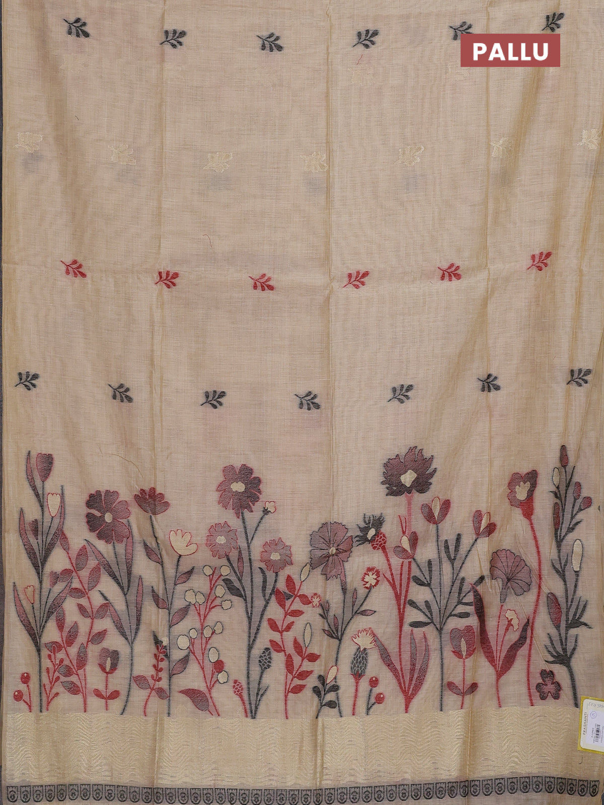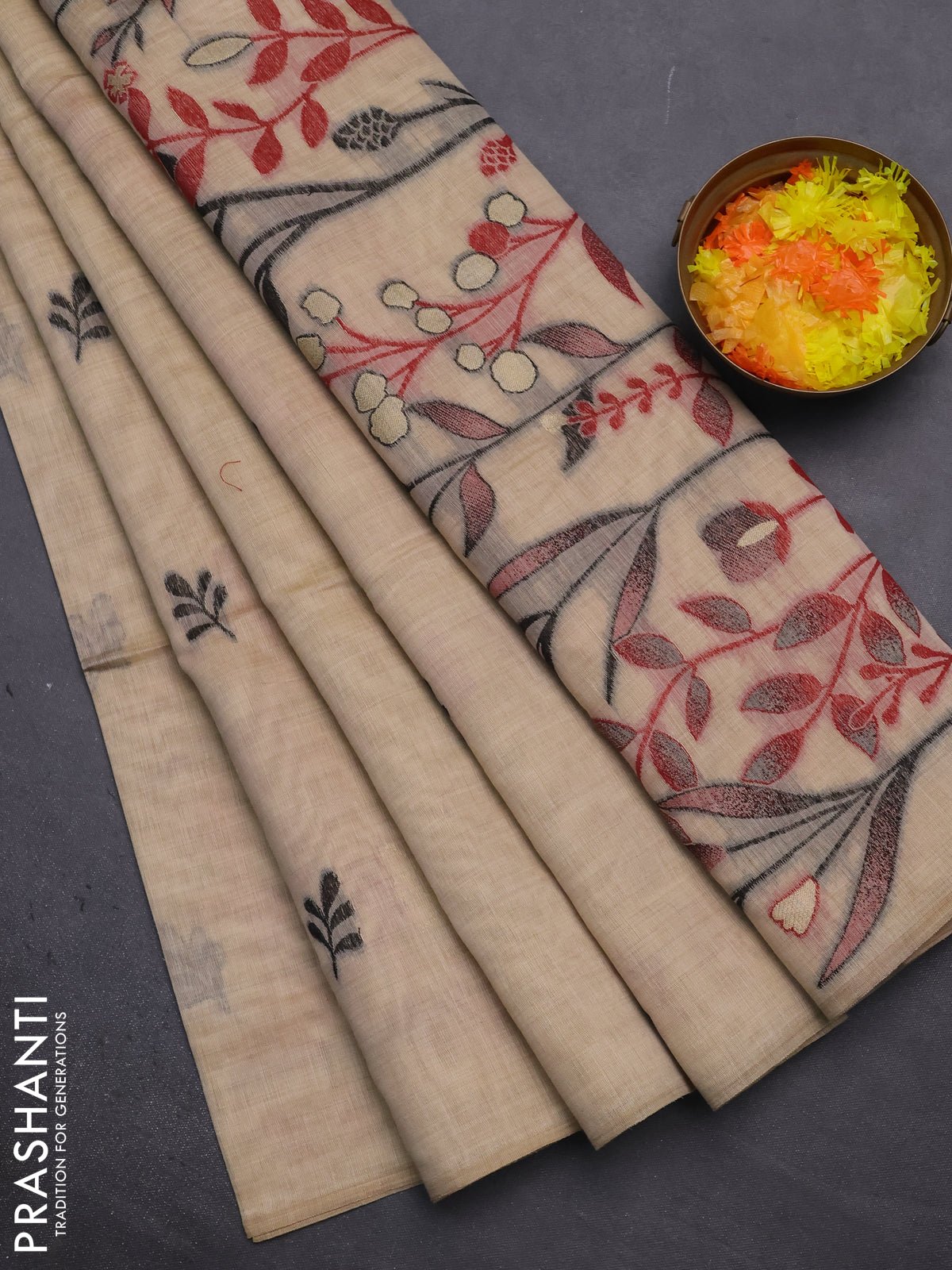 Munga cotton saree sandal with thread woven floral buttas in borderless style