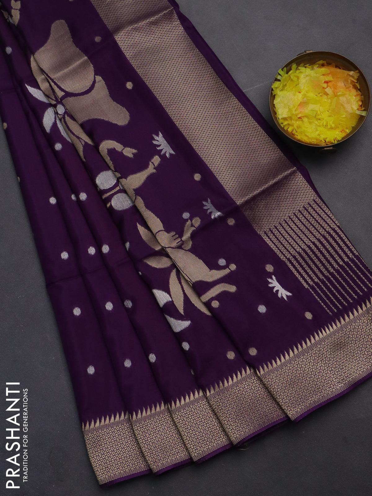 Munga crepe silk saree violet and mustard yellow with zari woven buttas and rich zari woven pallu