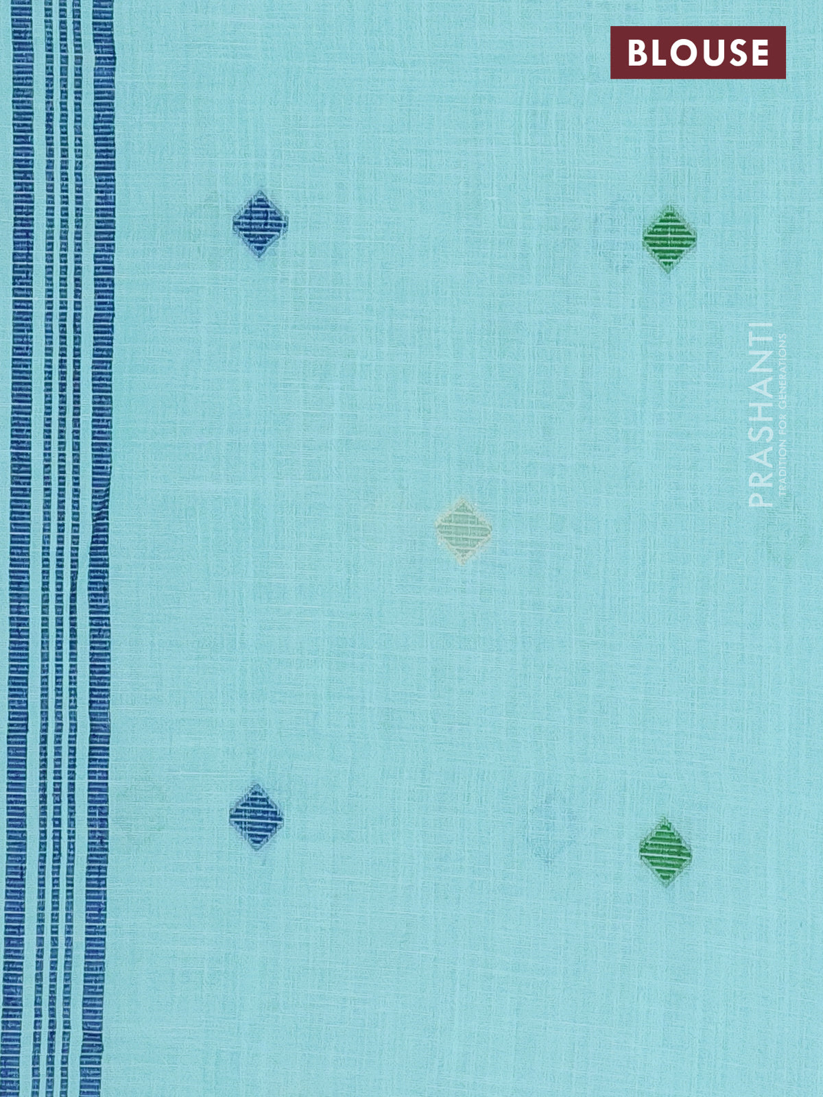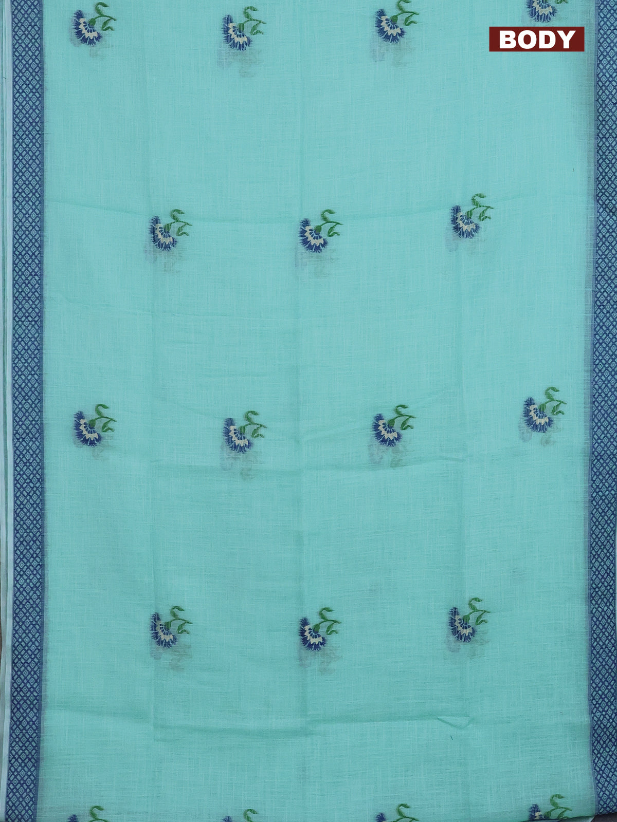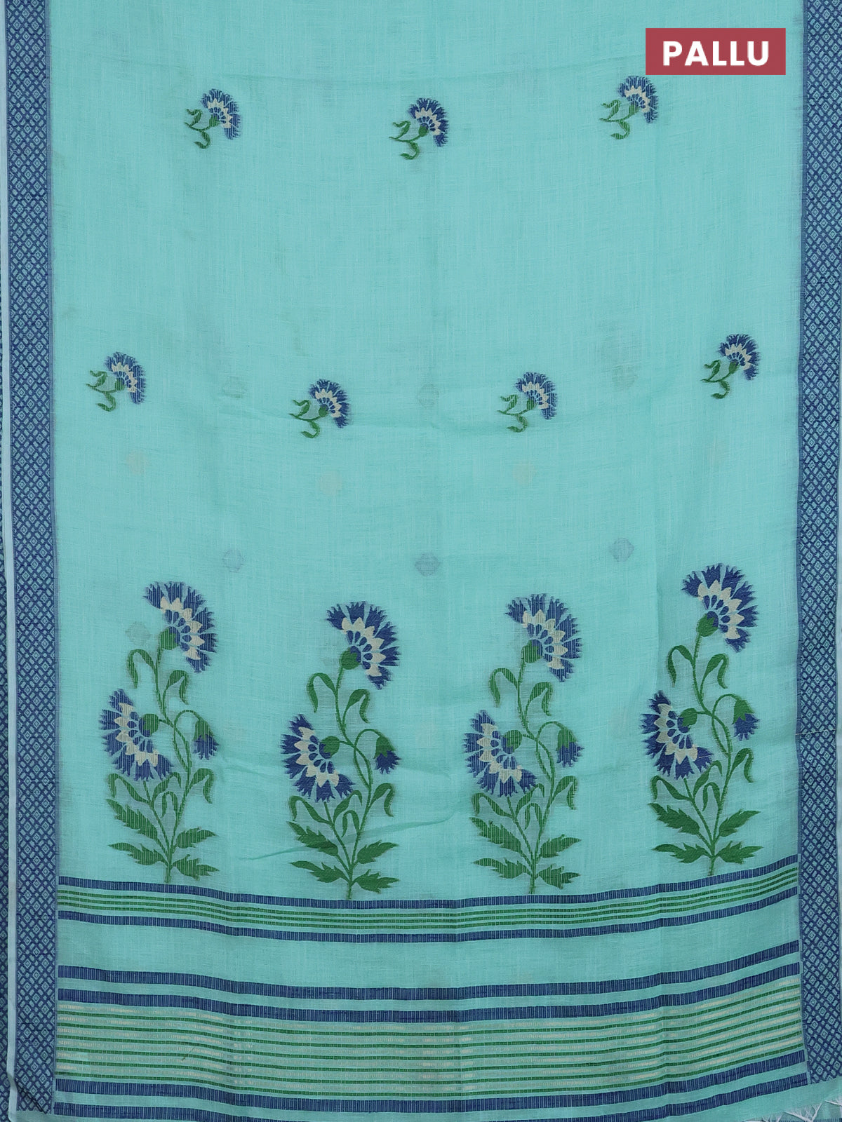 Munga linen saree teal green and blue with thread woven floral buttas and thread woven border