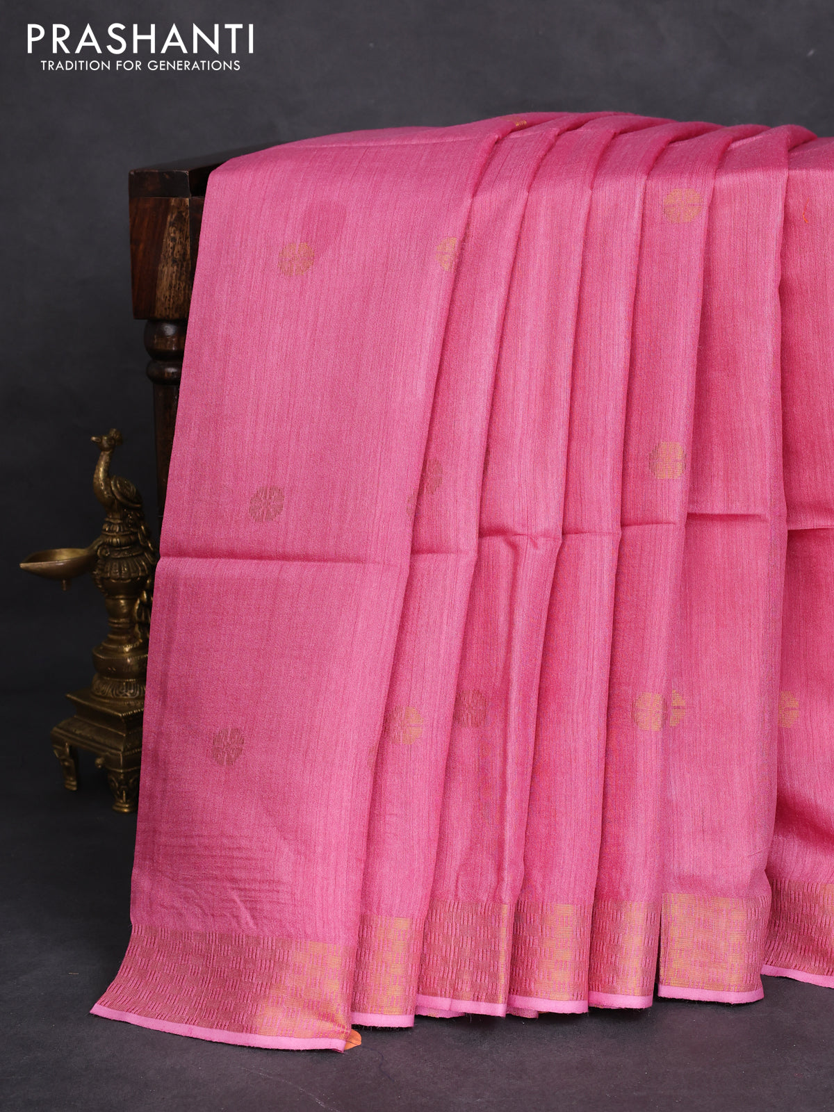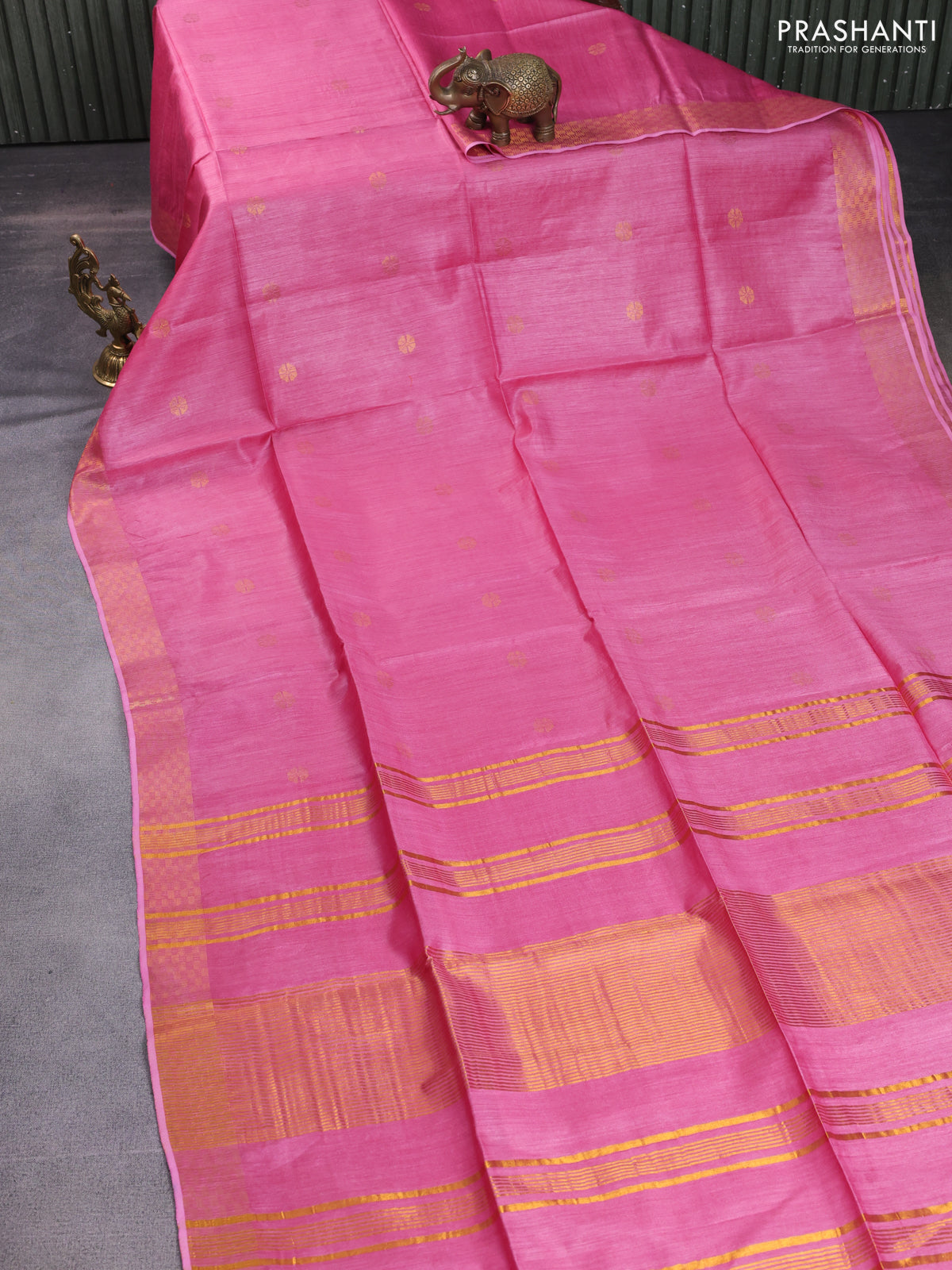 Munga tussar silk saree light pink with allover zari woven buttas and zari woven border