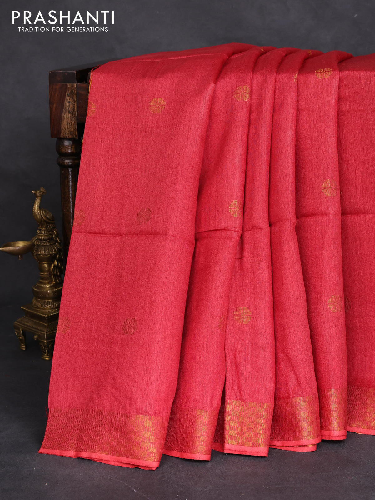 Munga tussar silk saree red with allover zari woven buttas and zari woven border