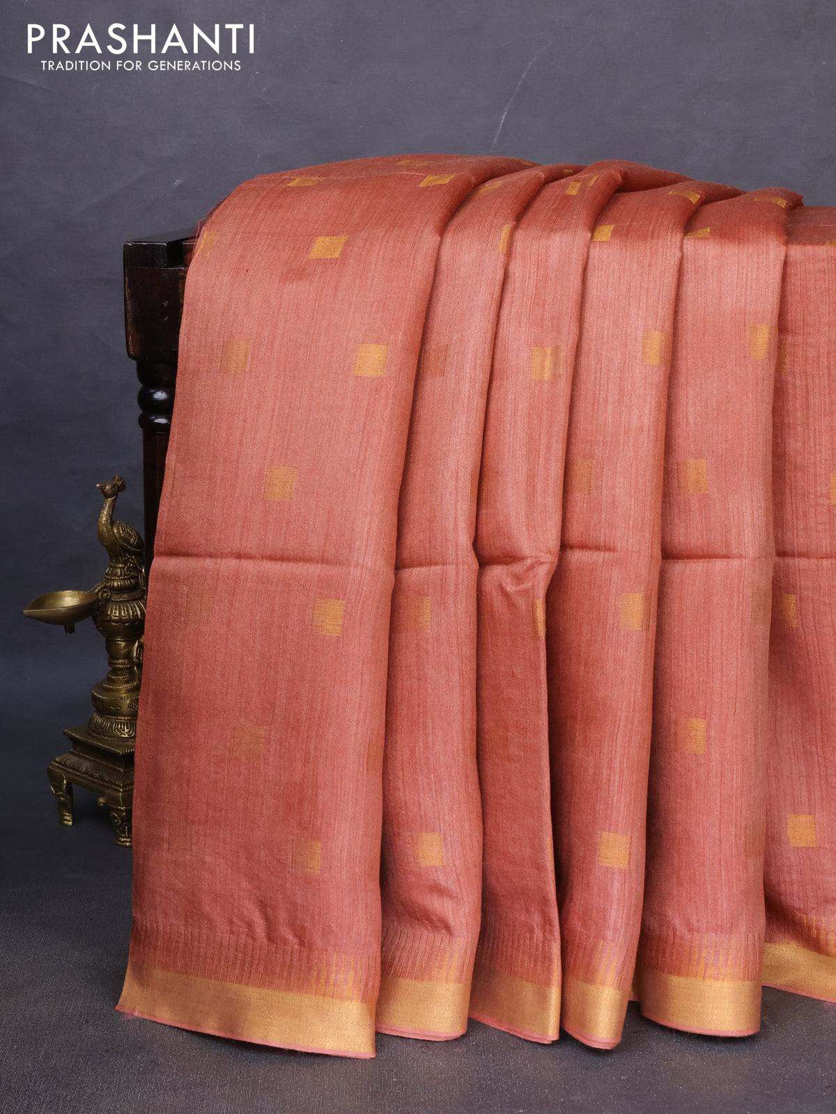 Munga tussar silk saree rust shade with allover zari woven buttas and zari woven border