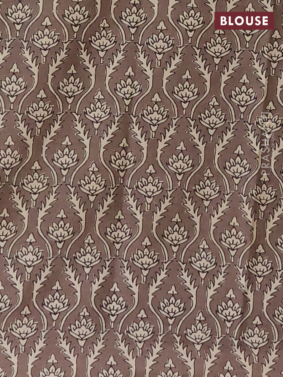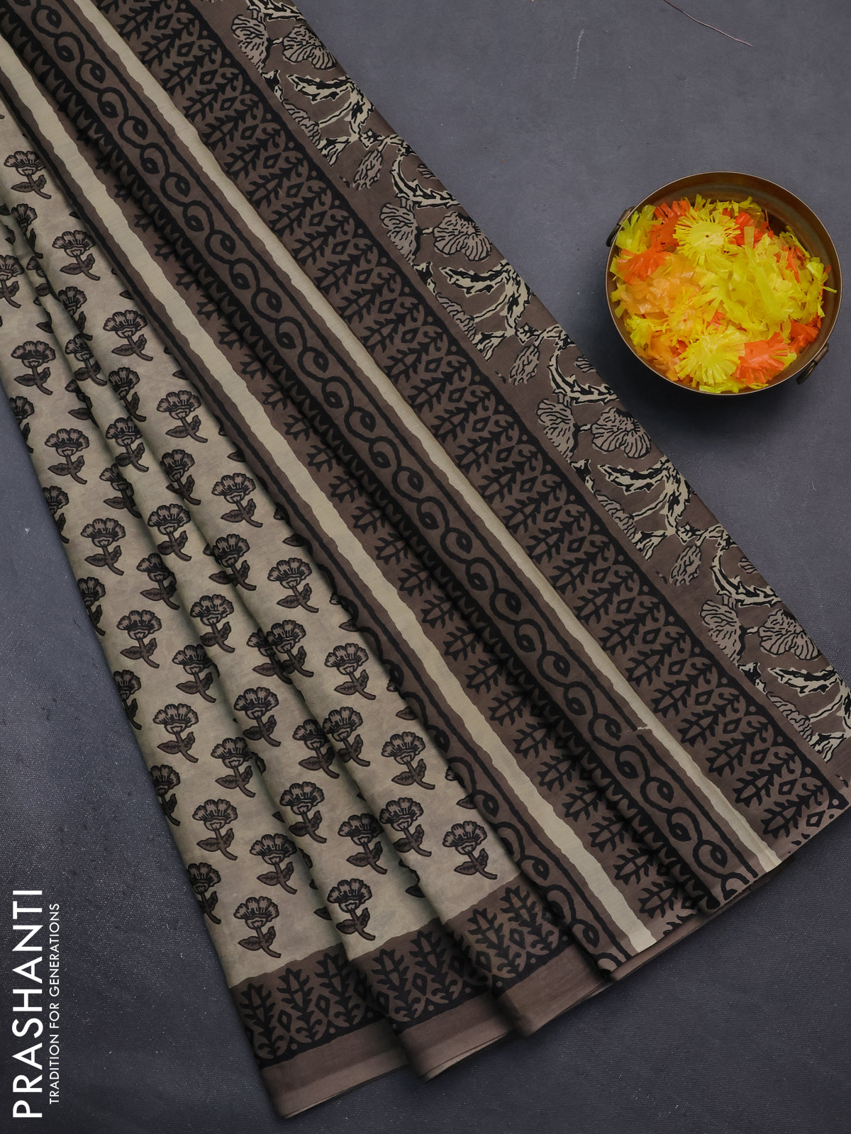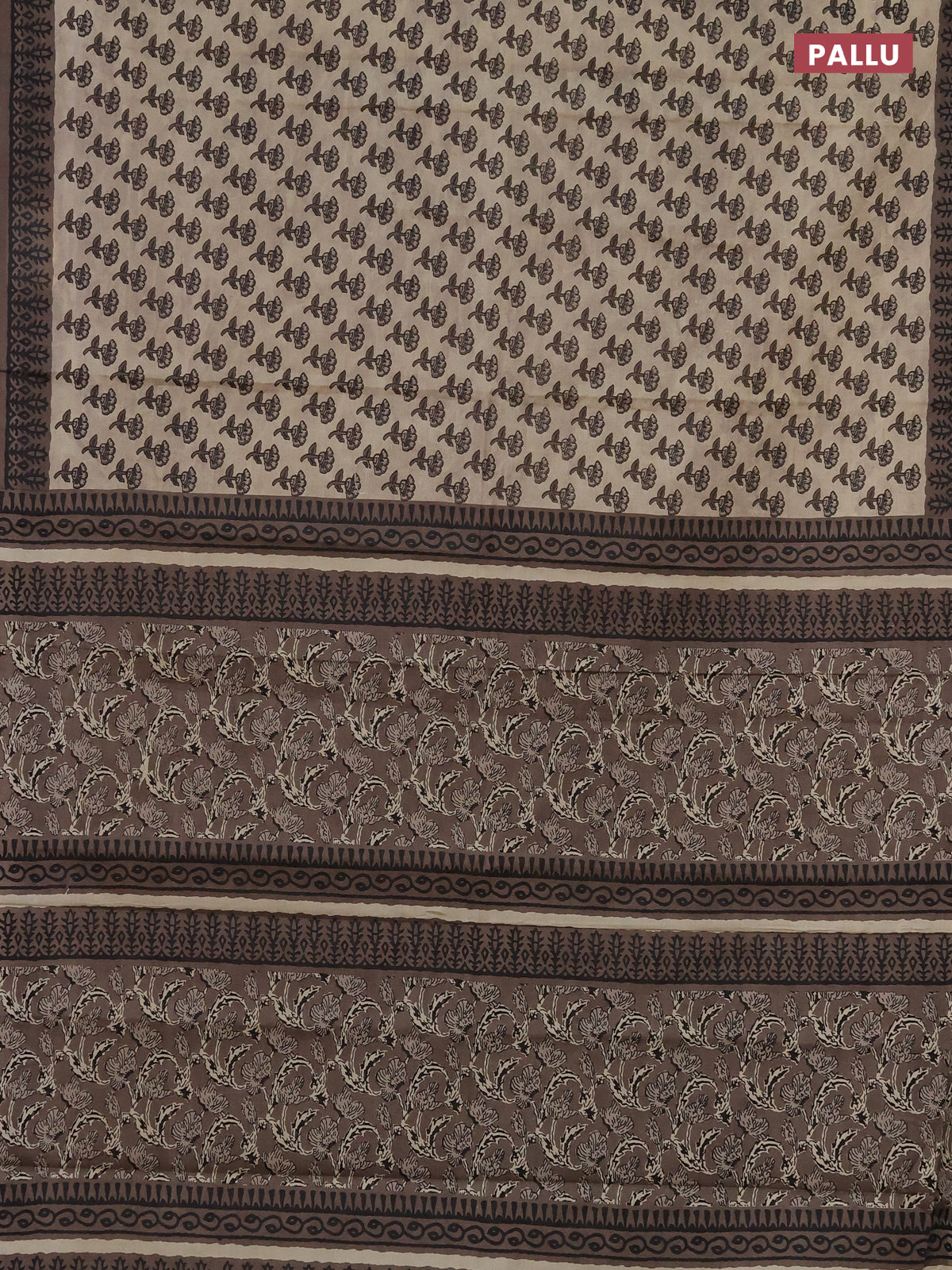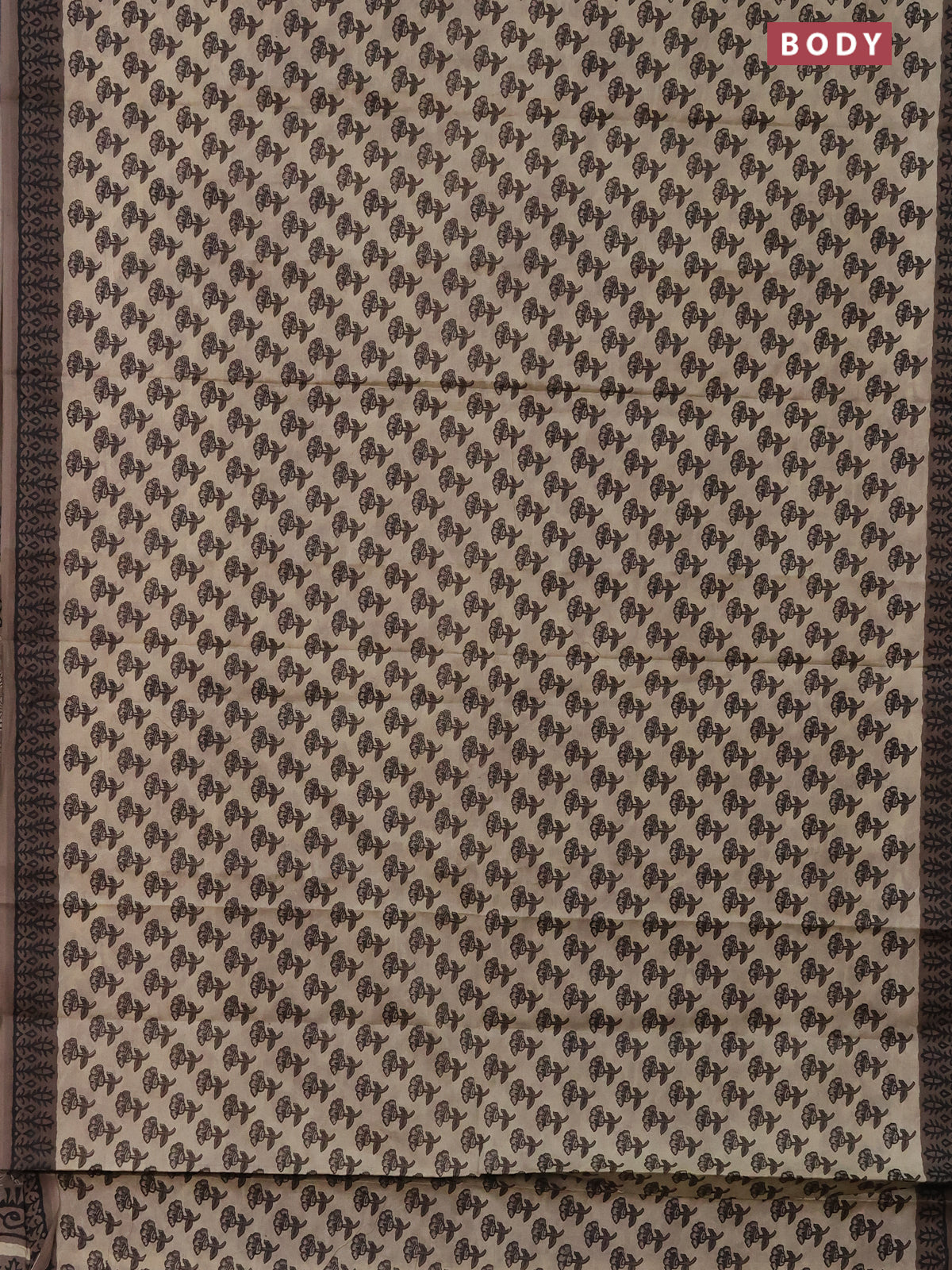 Muslin cotton saree beige and brown with floral butta prints and printed border