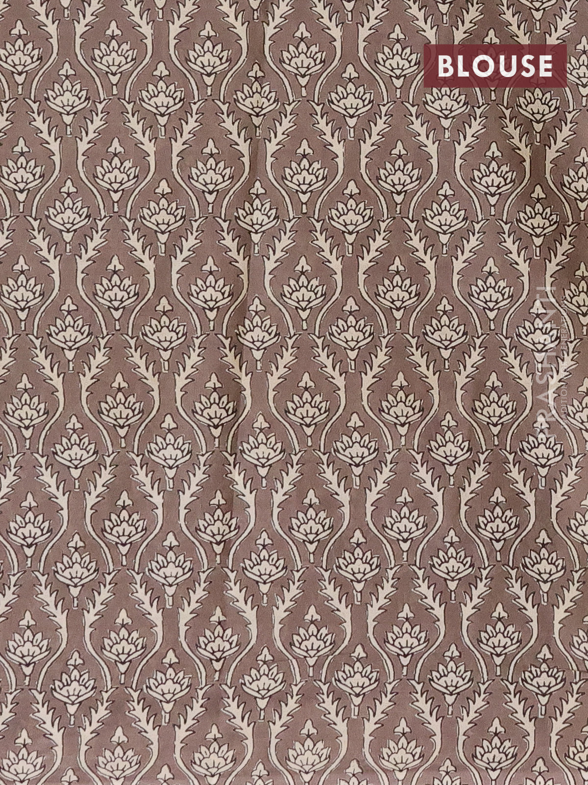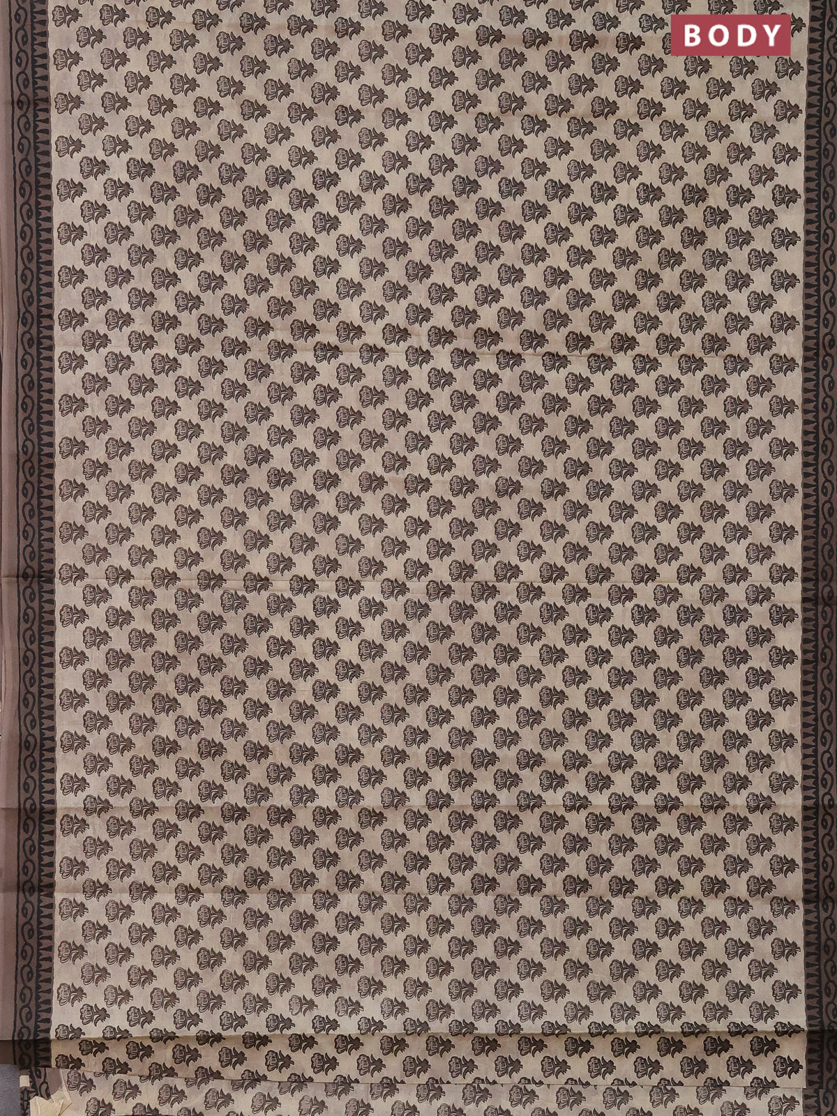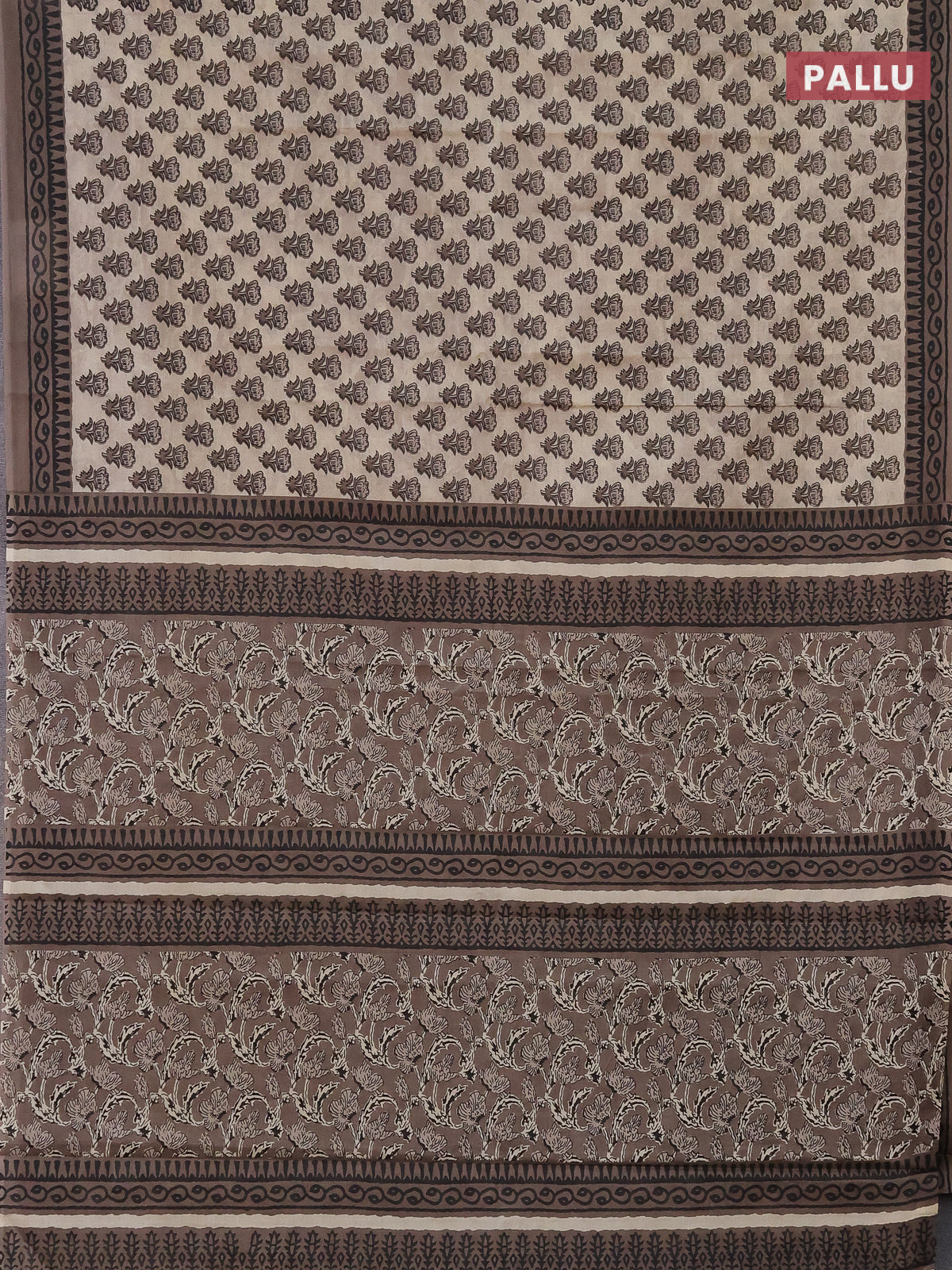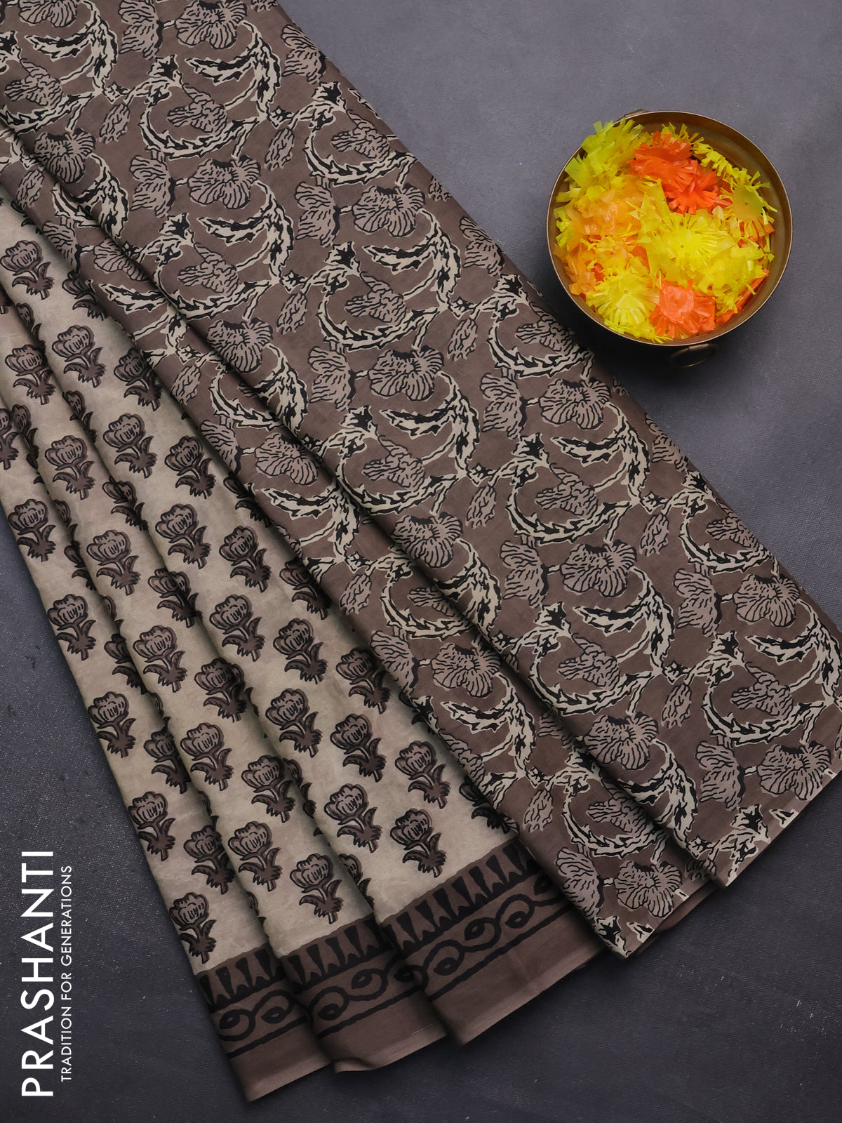 Muslin cotton saree beige and grey with floral butta prints and printed border