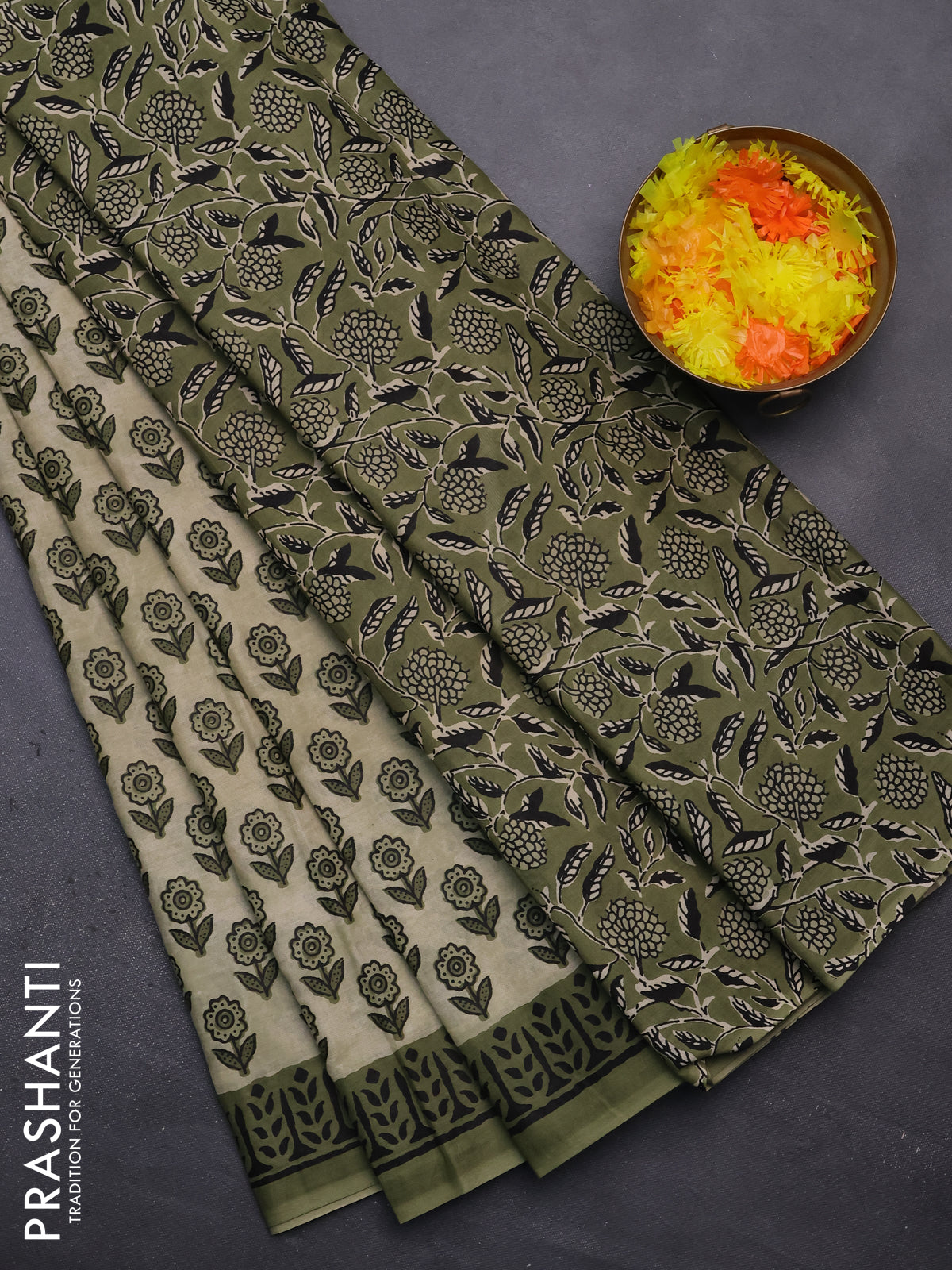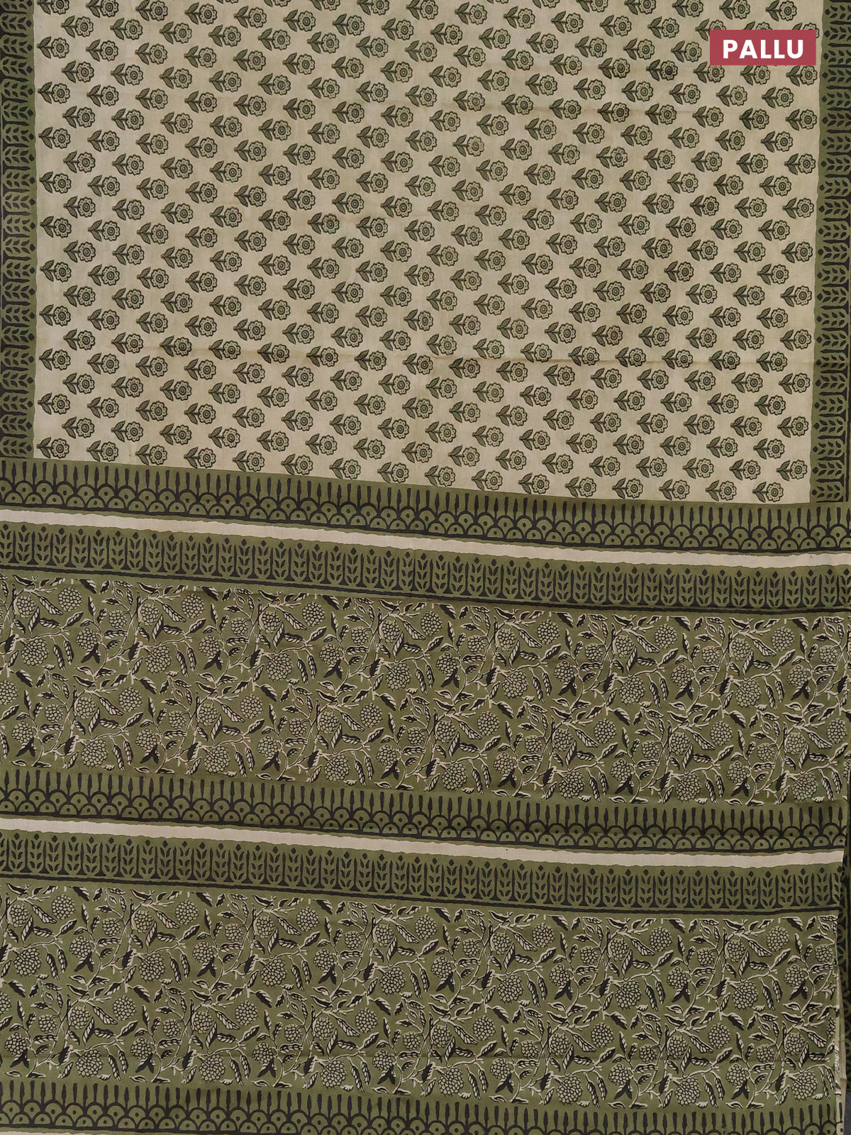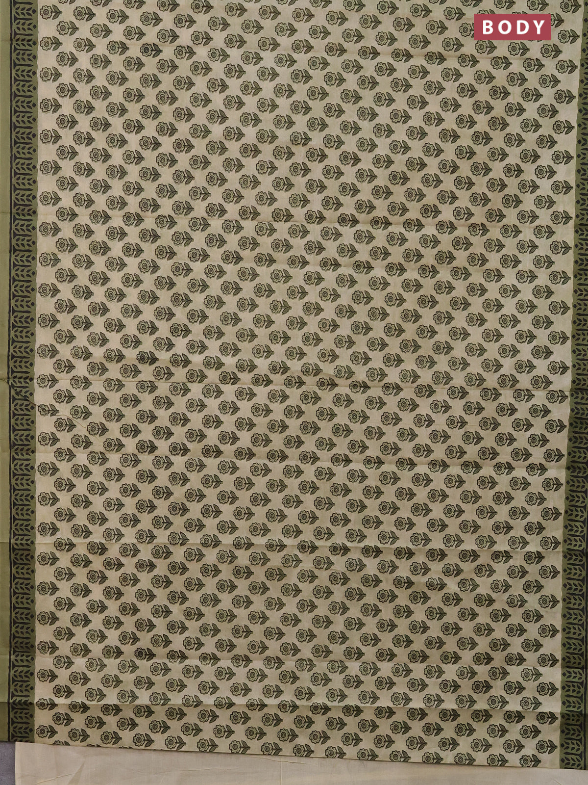 Muslin cotton saree beige and pastel green with floral butta prints and printed border