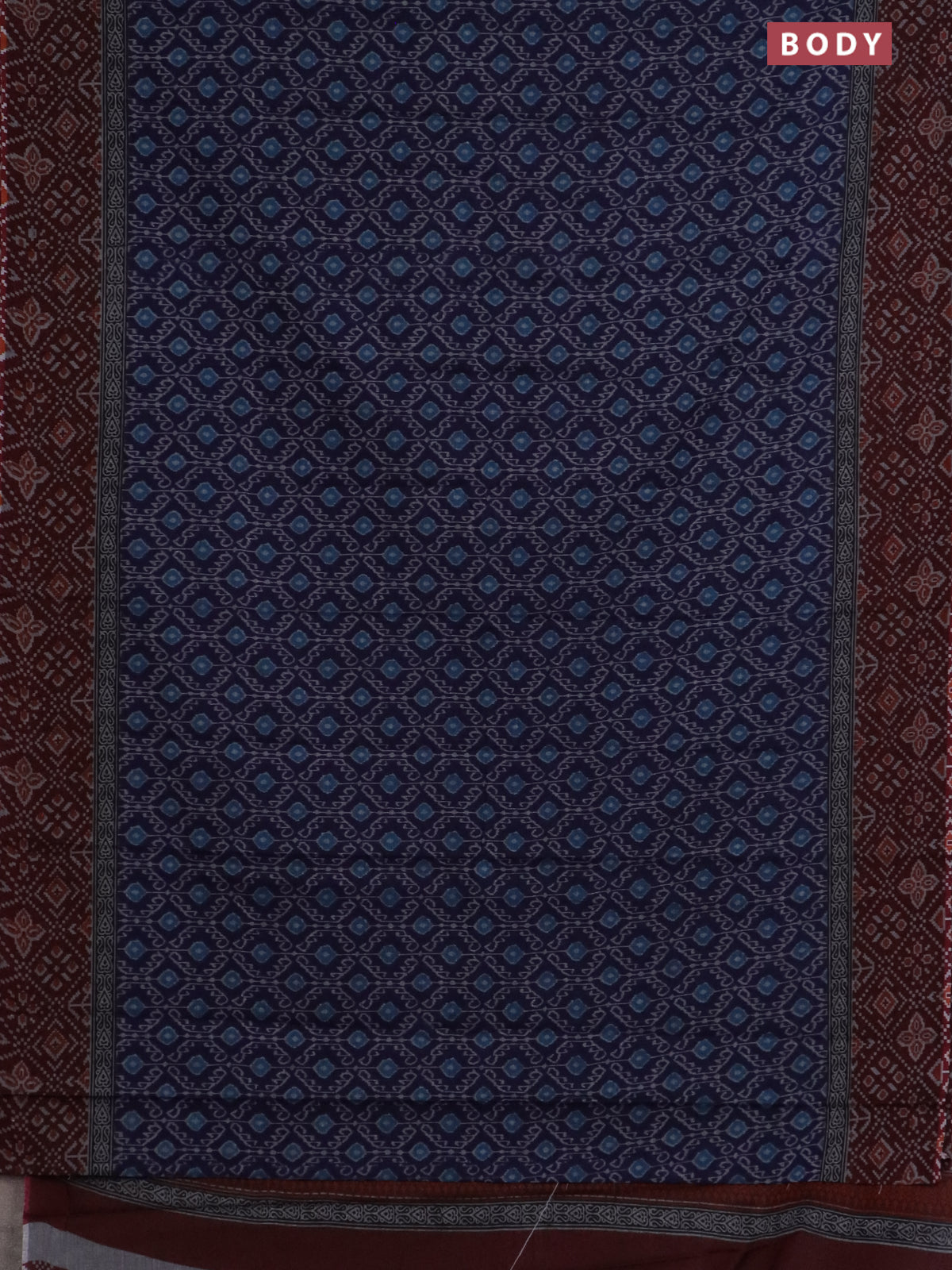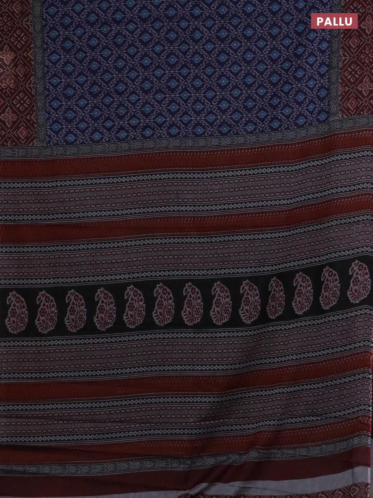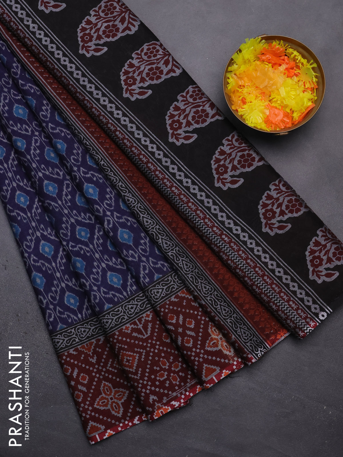 Muslin cotton saree blue and maroon with allover prints and printed border