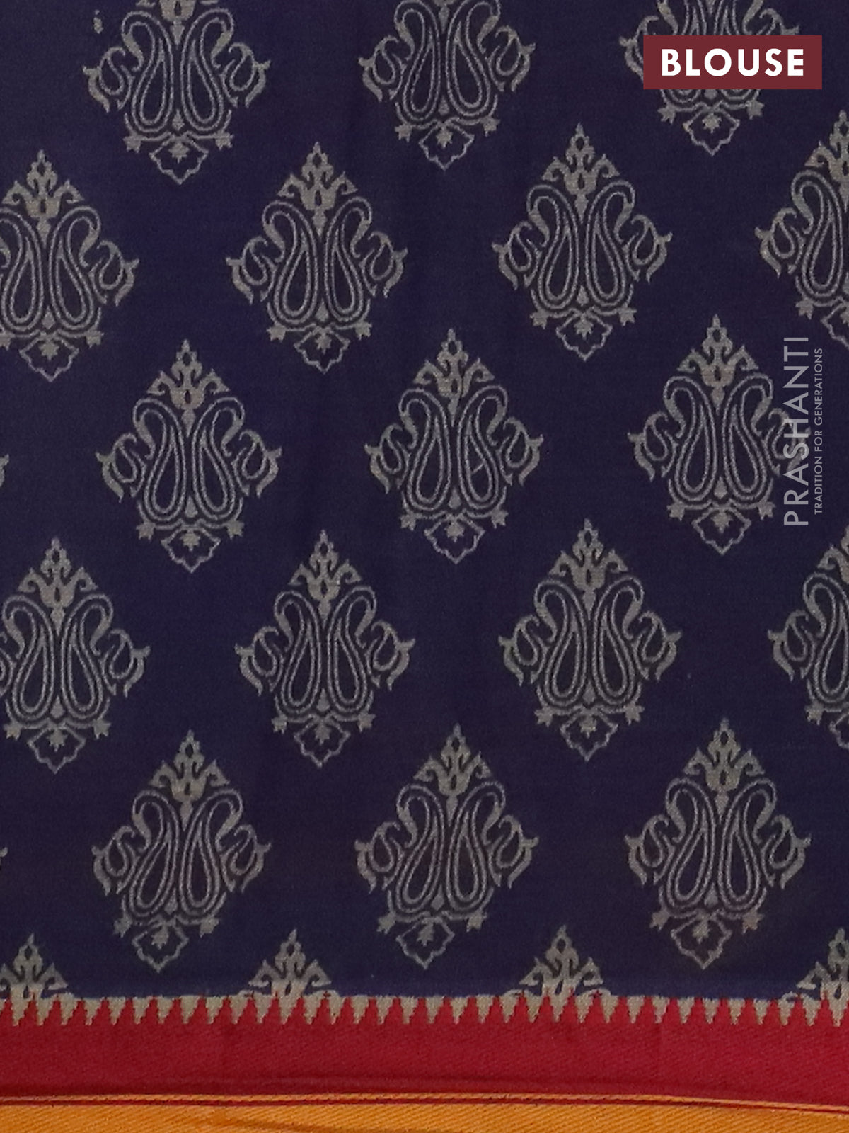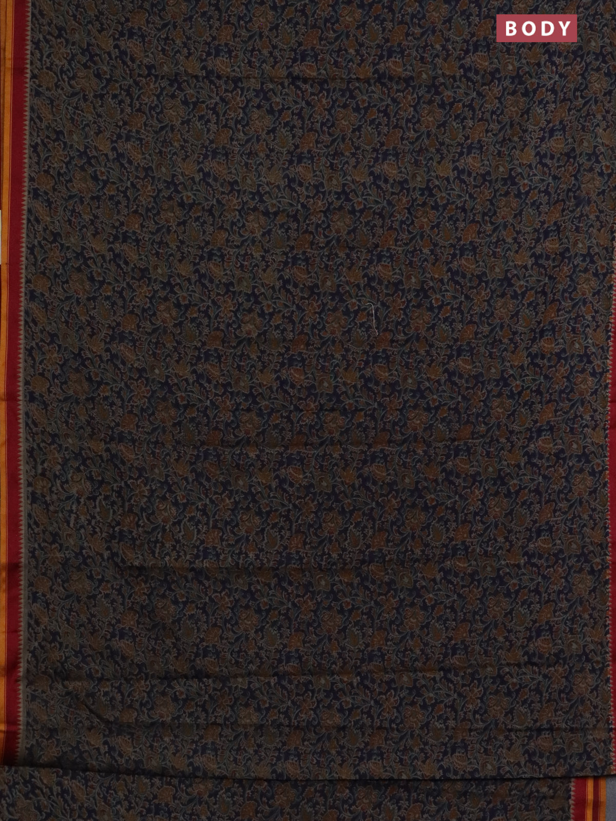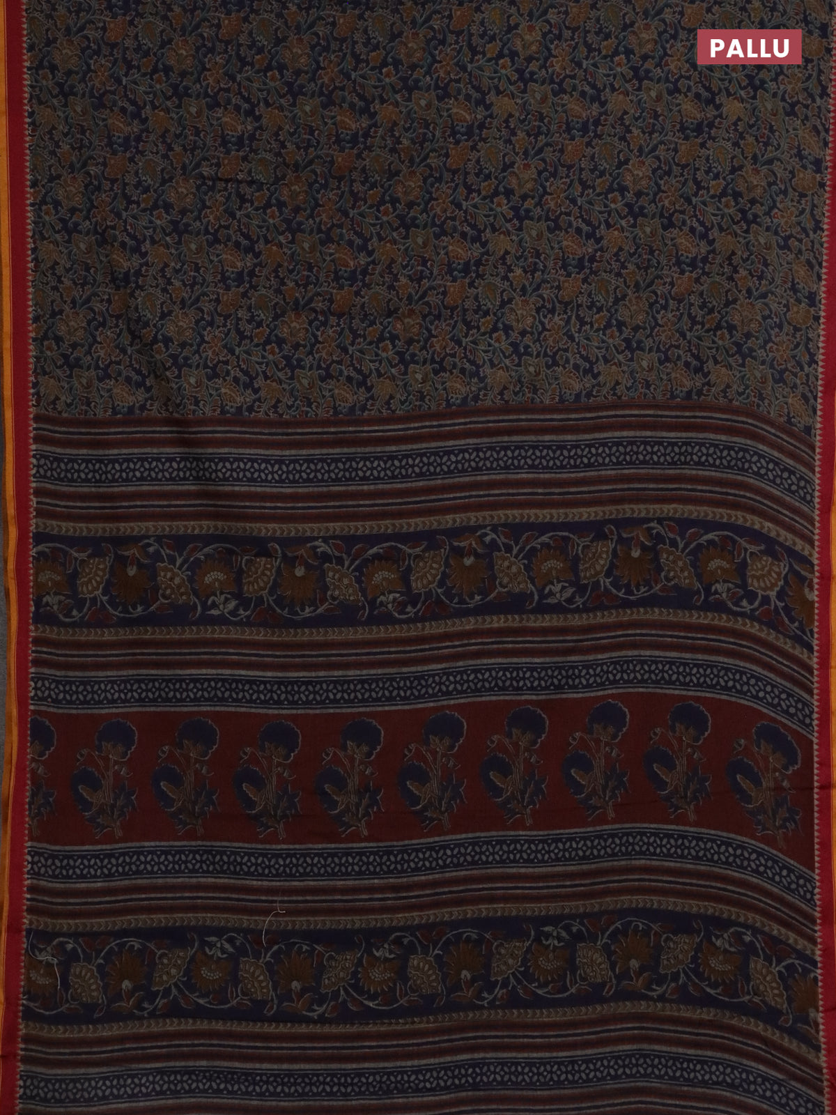 Muslin cotton saree blue and maroon with allover prints and woven border