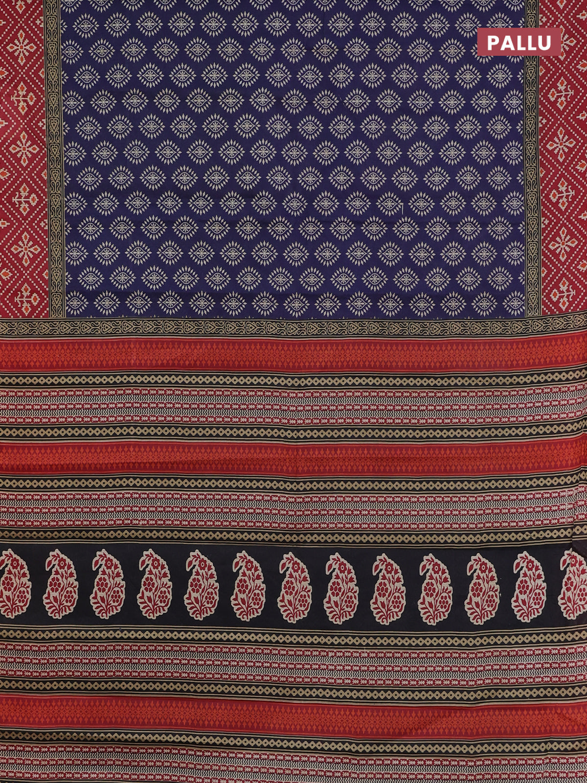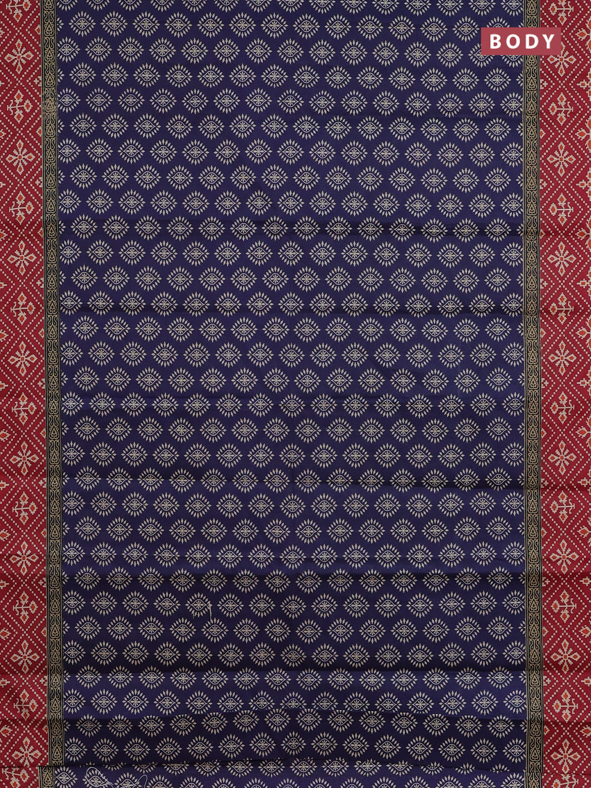 Muslin cotton saree blue and maroon with butta prints and printed border