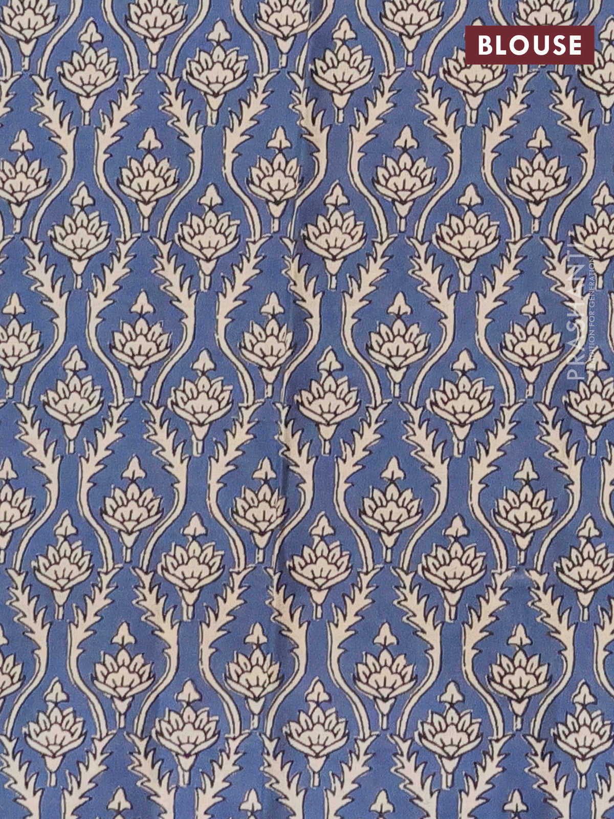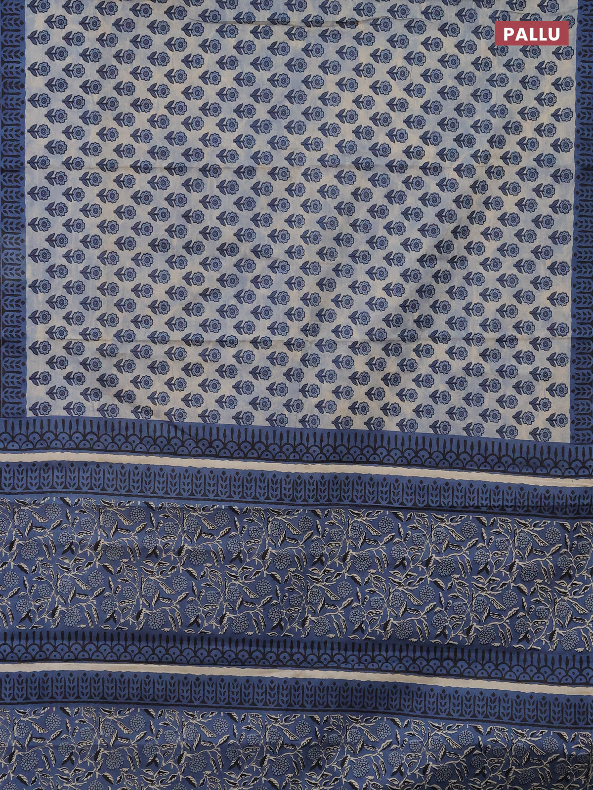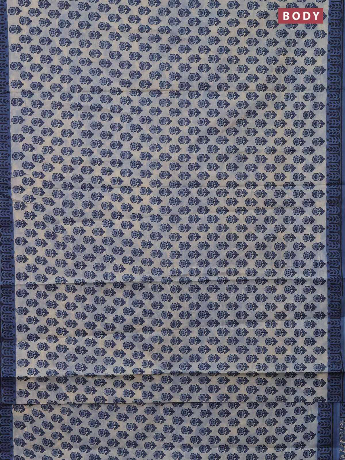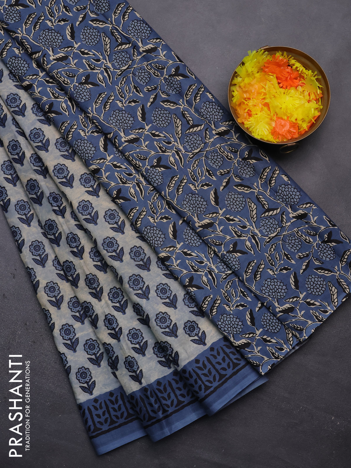 Muslin cotton saree bluish grey and blue with floral butta prints and printed border