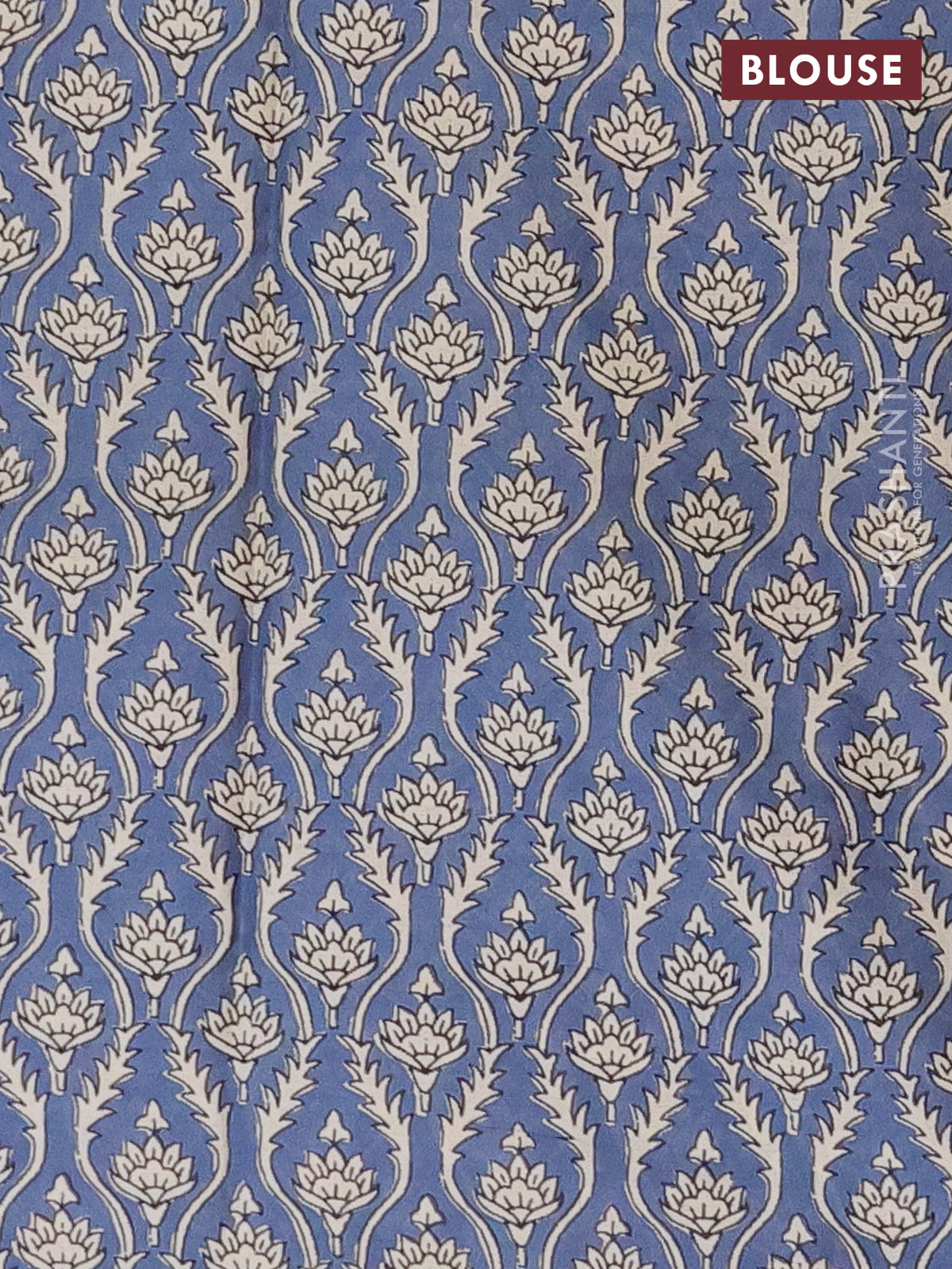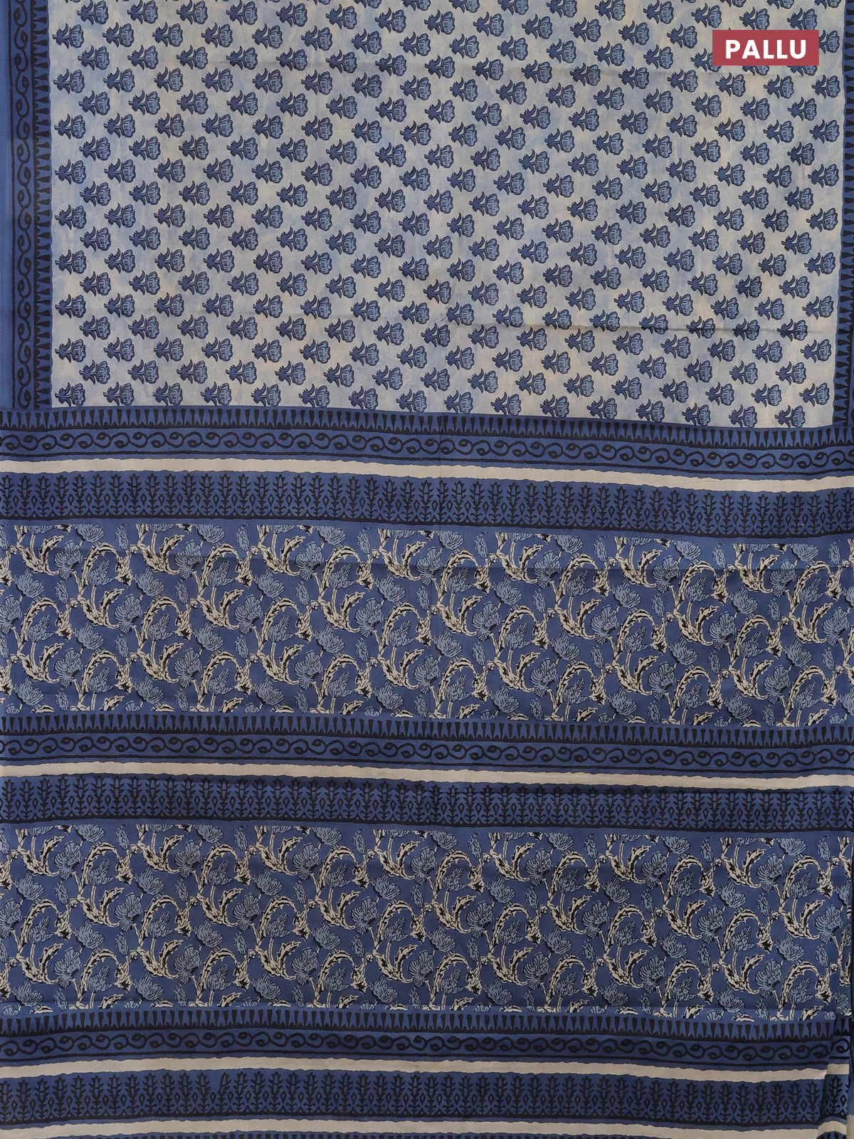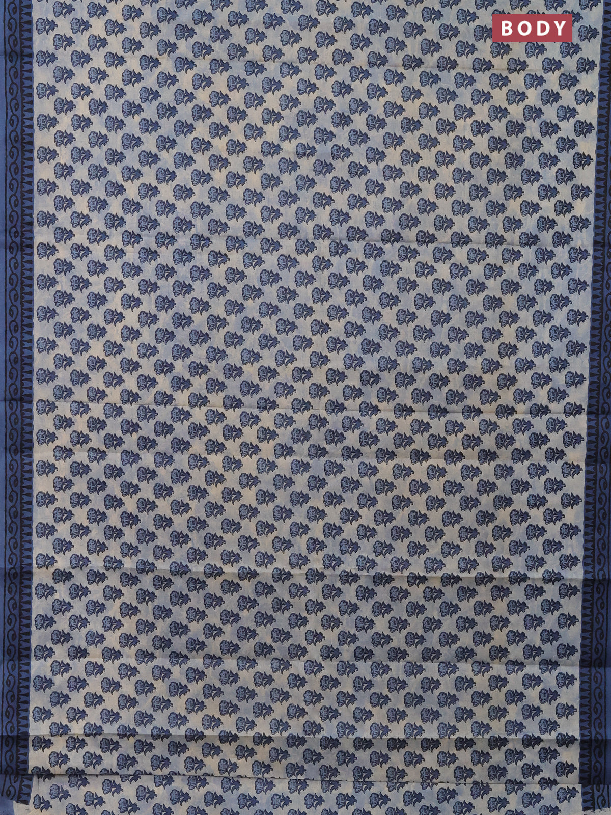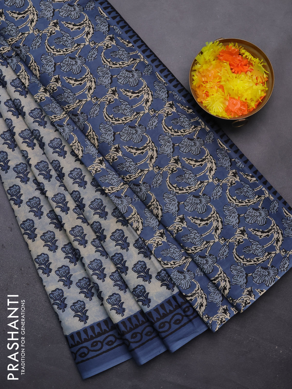 Muslin cotton saree bluish grey and blue with floral butta prints and printed border