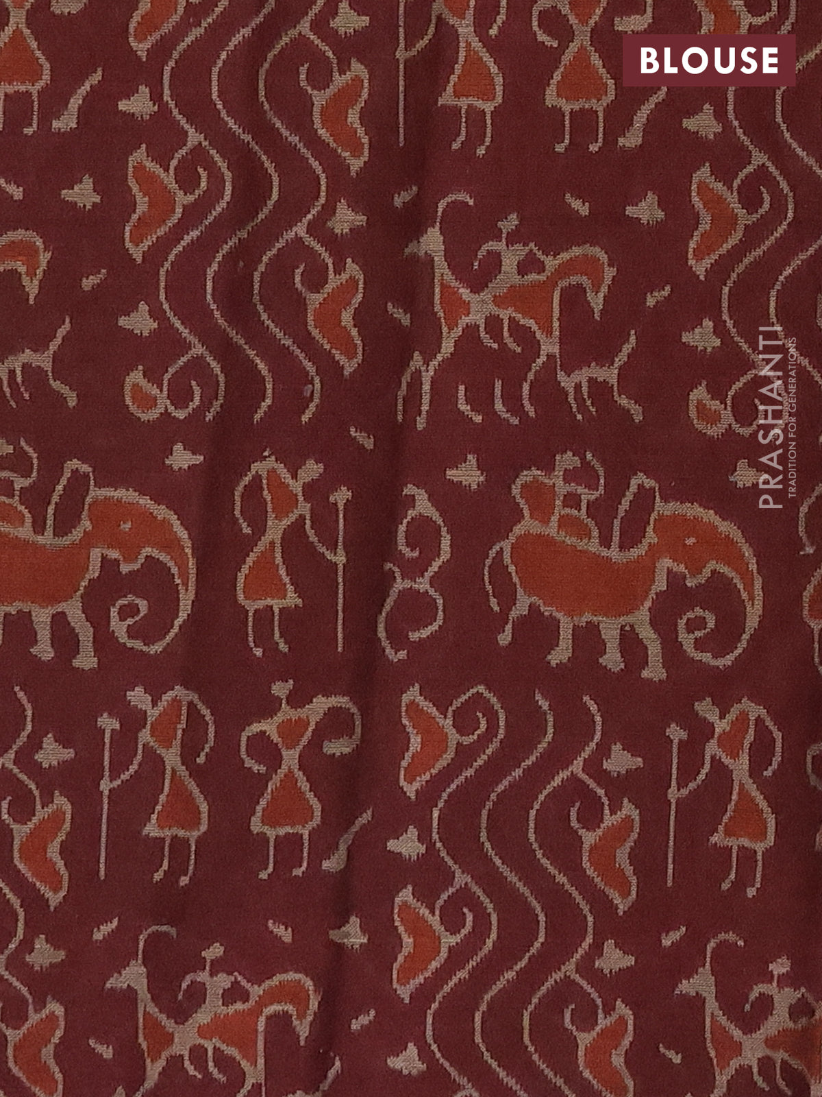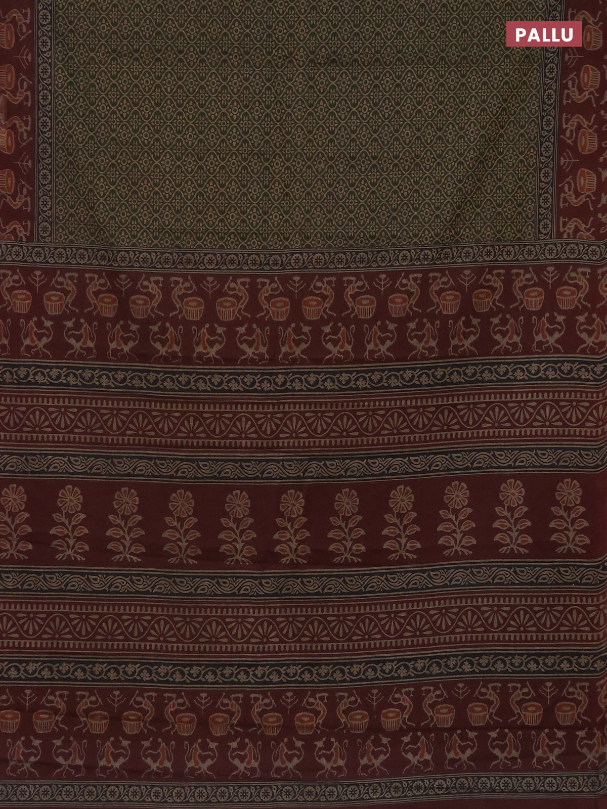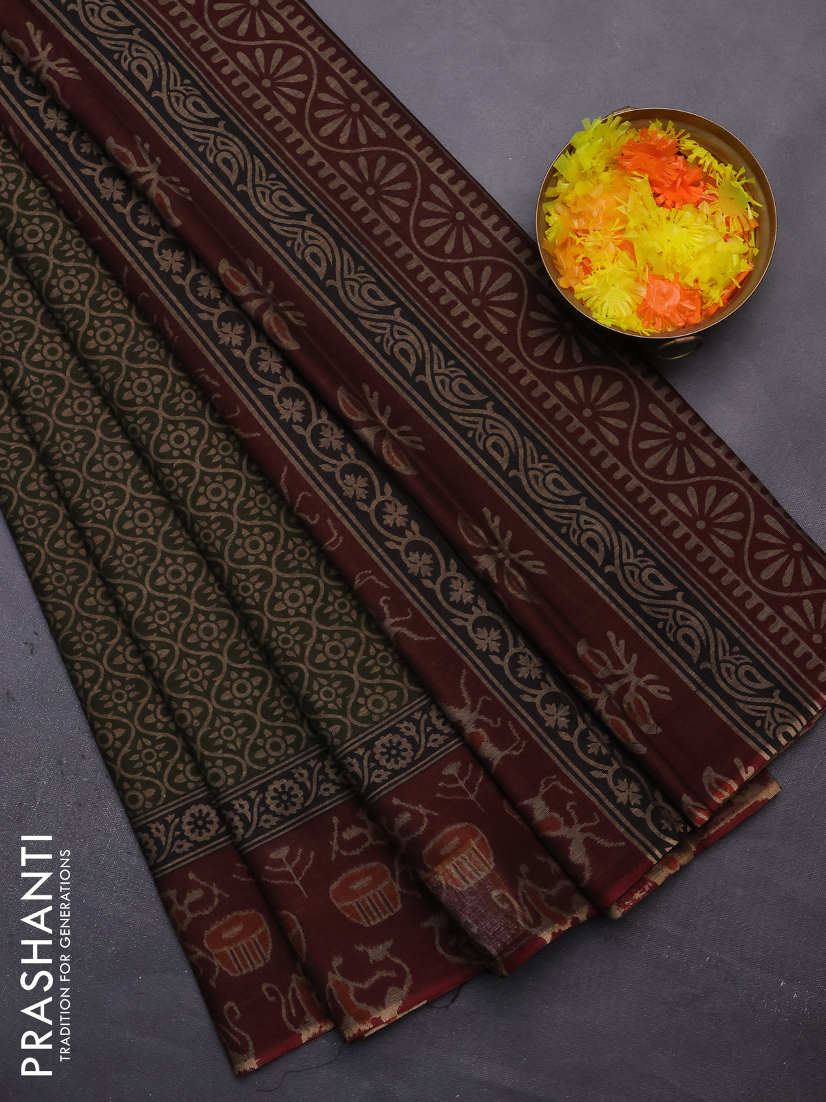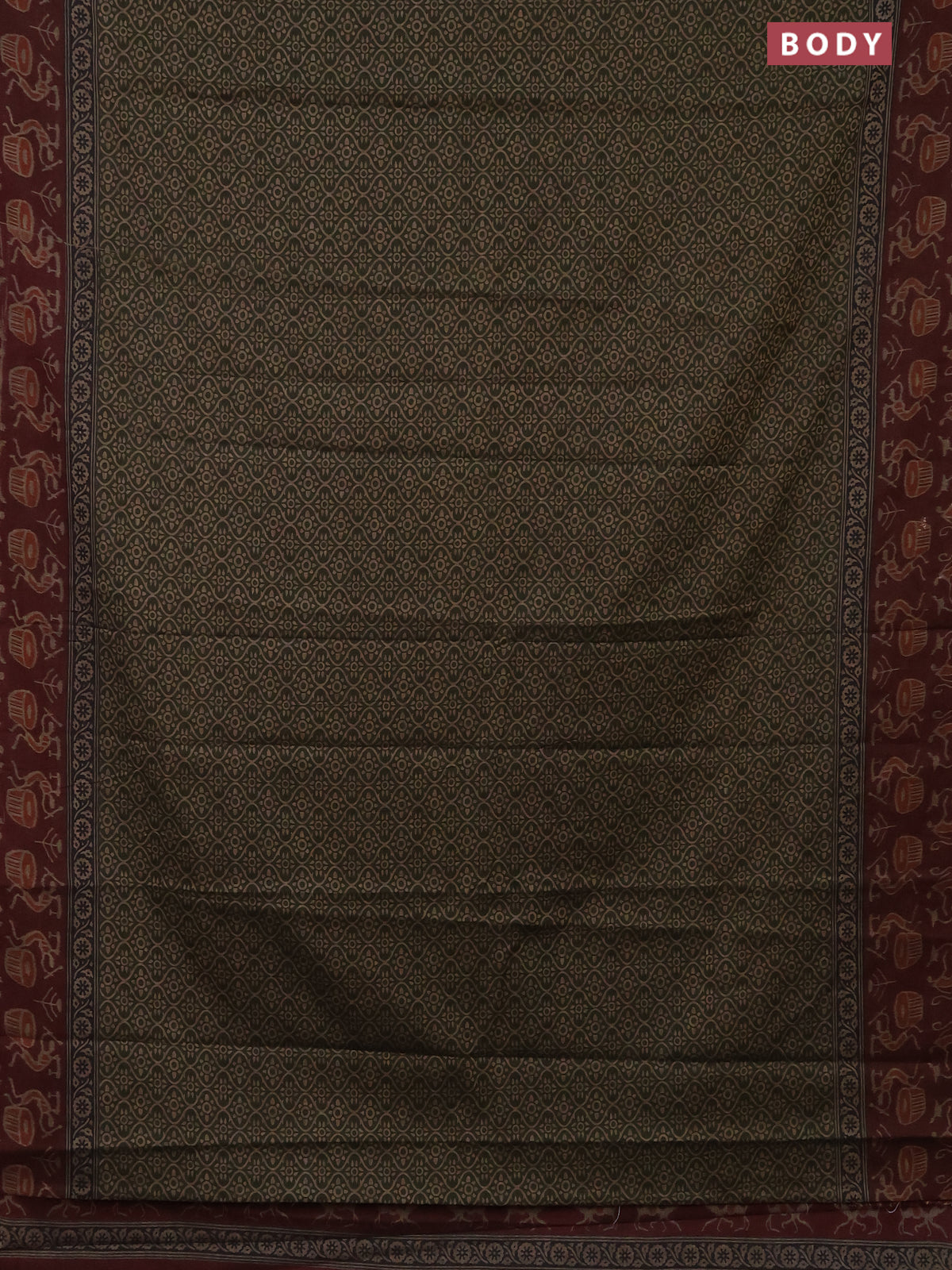Muslin cotton saree dark sap green and deep maroon with allover prints and printed border