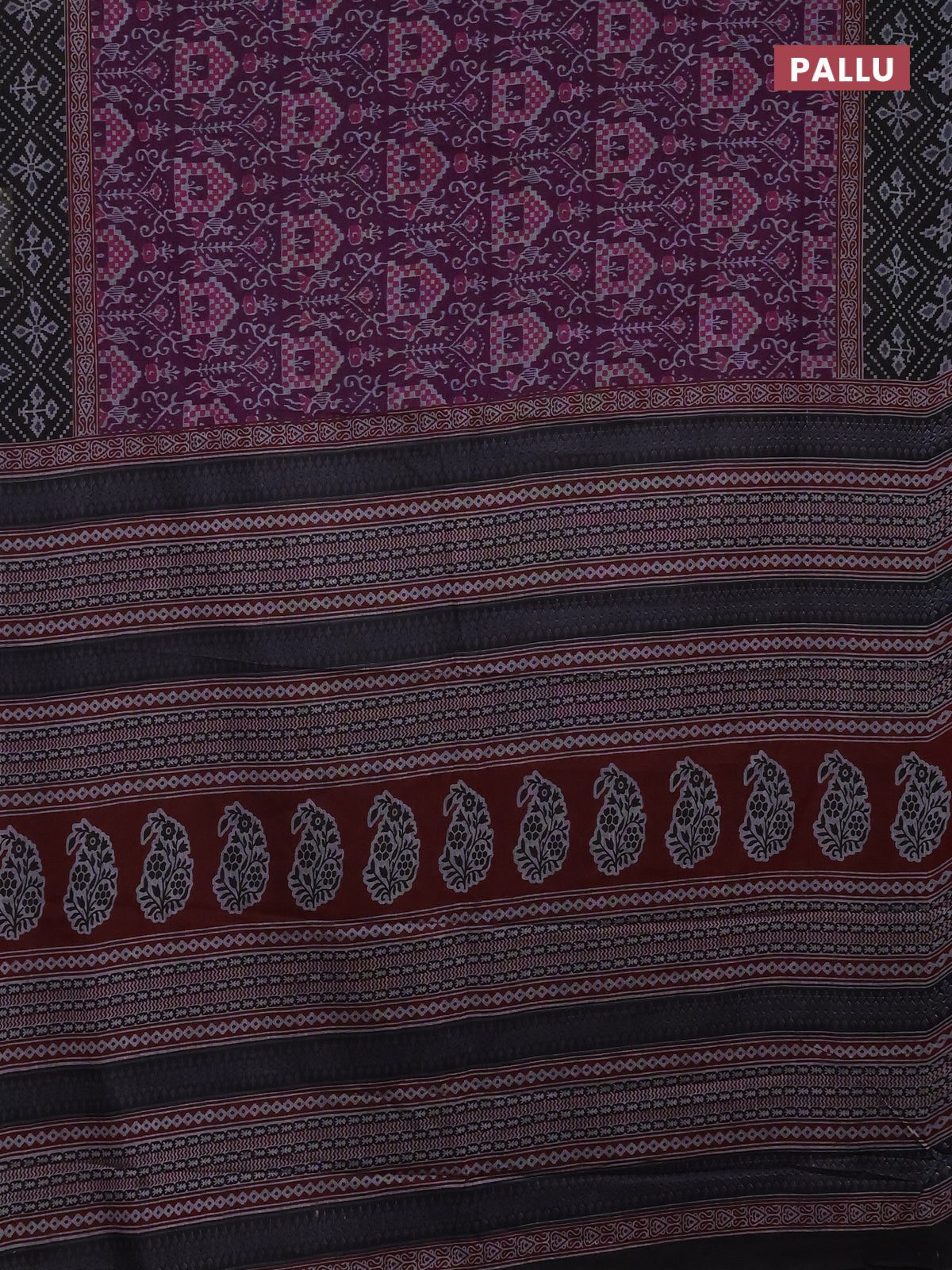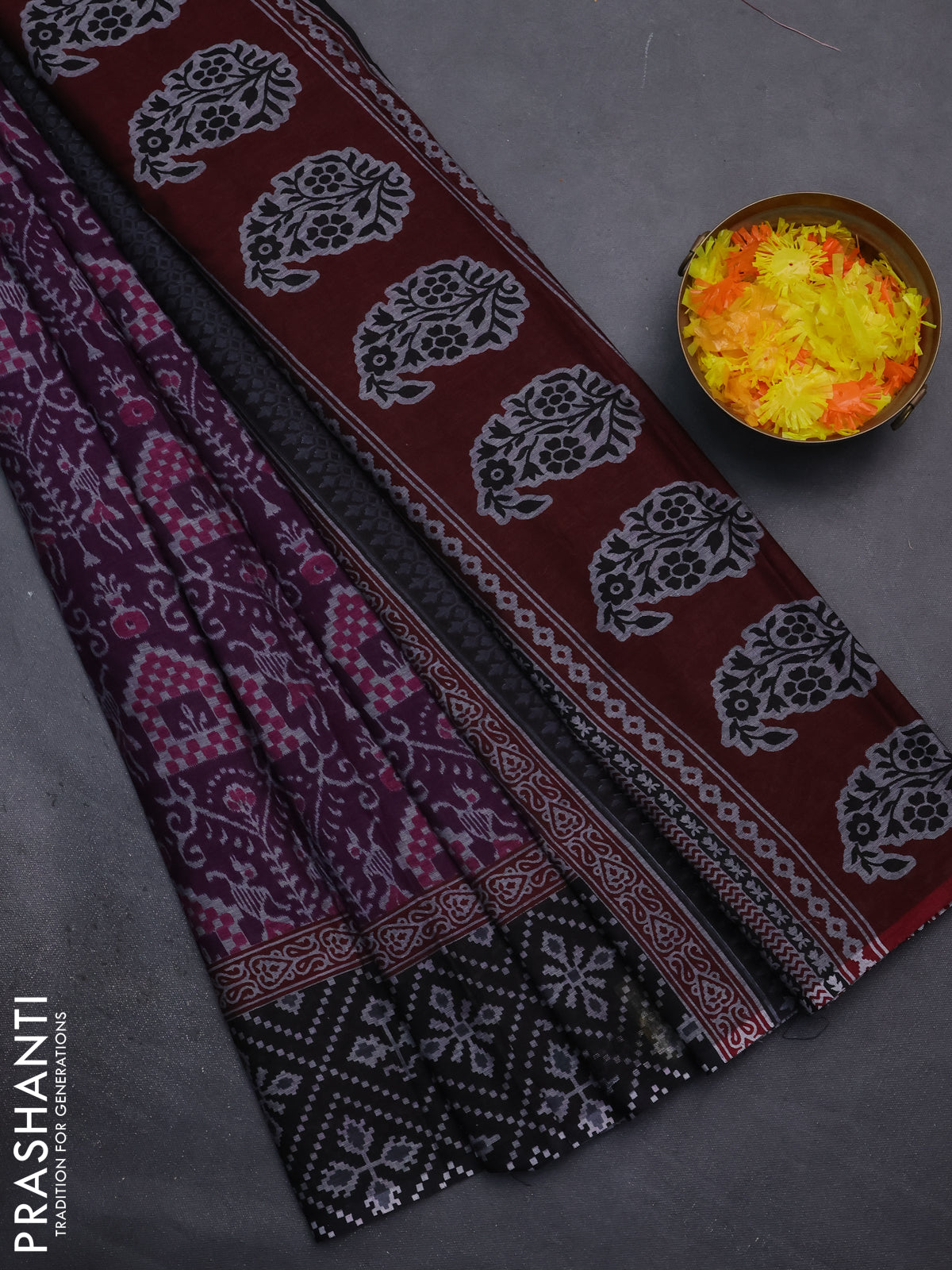 Muslin cotton saree deep purple and black with allover prints and printed border