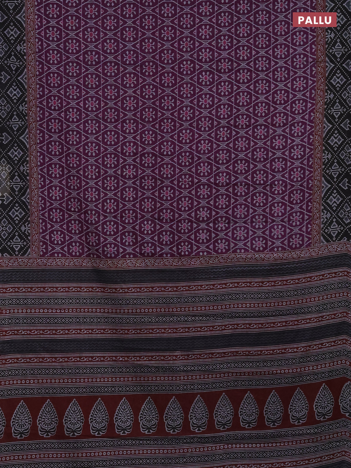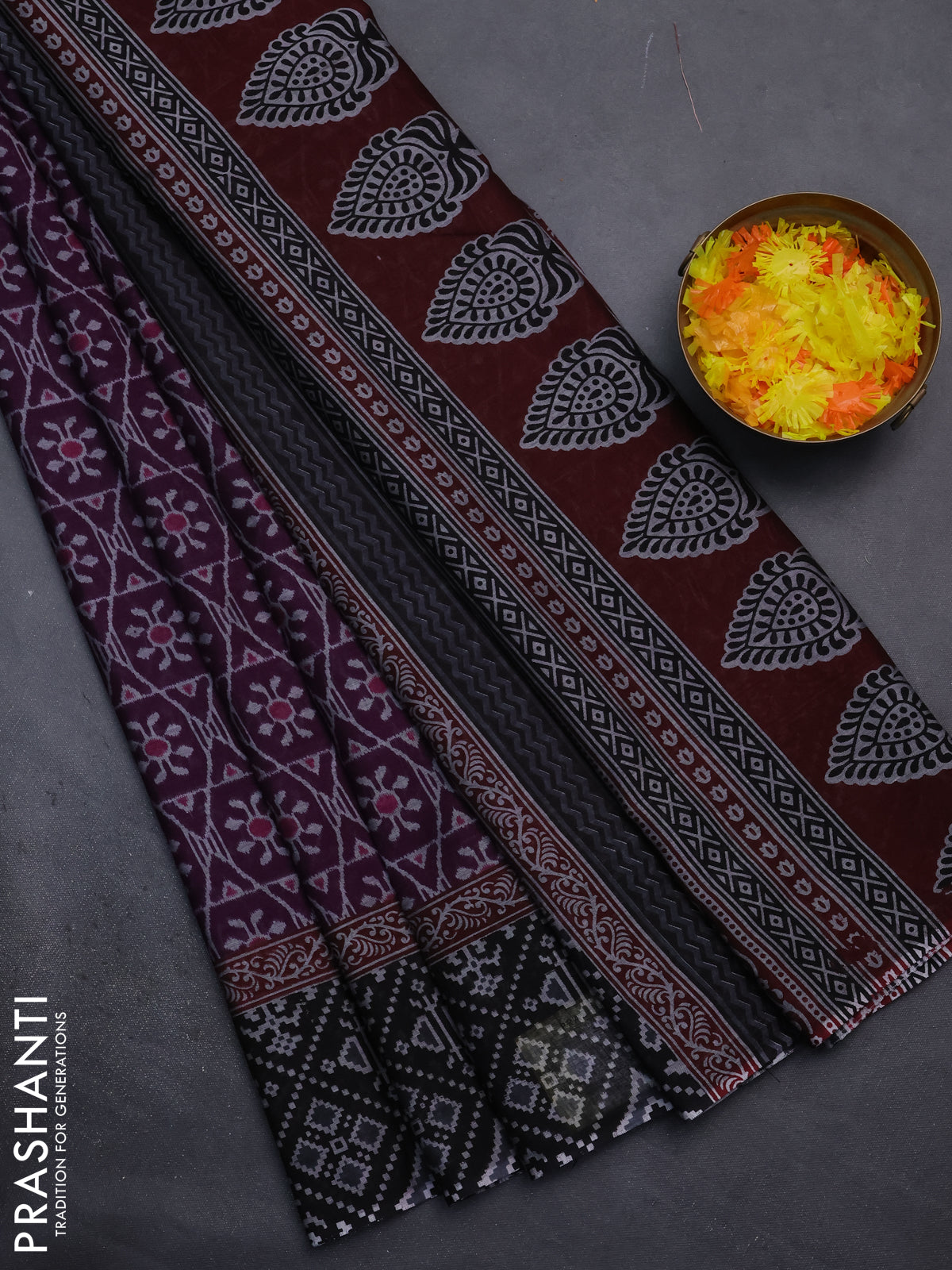 Muslin cotton saree deep purple and black with allover prints and printed border