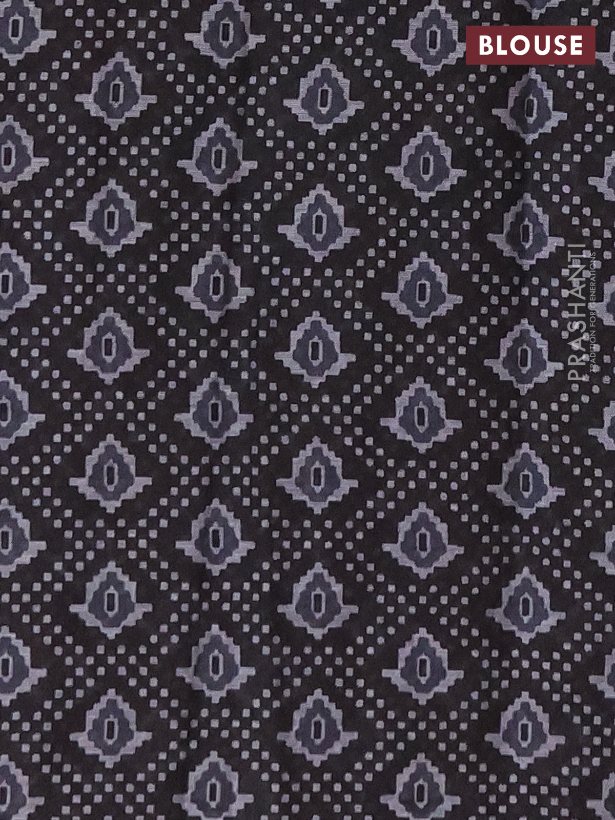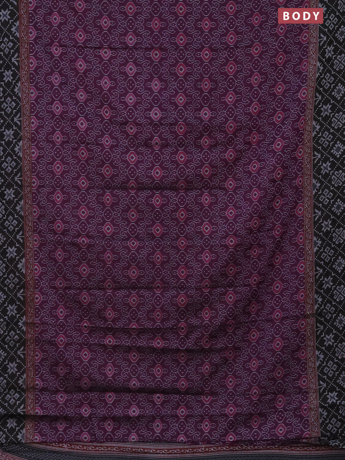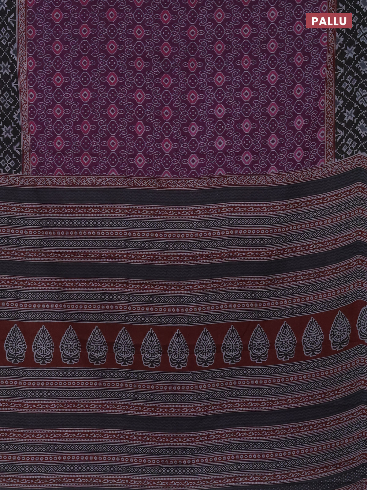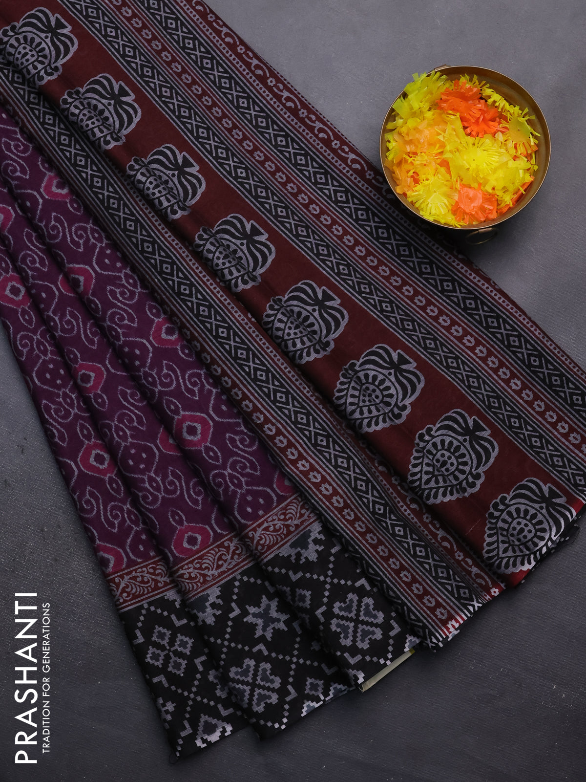 Muslin cotton saree deep purple and black with allover prints and woven border