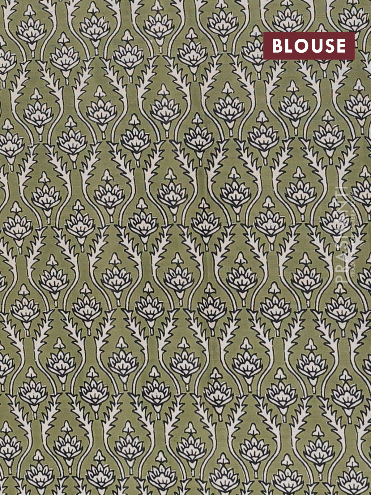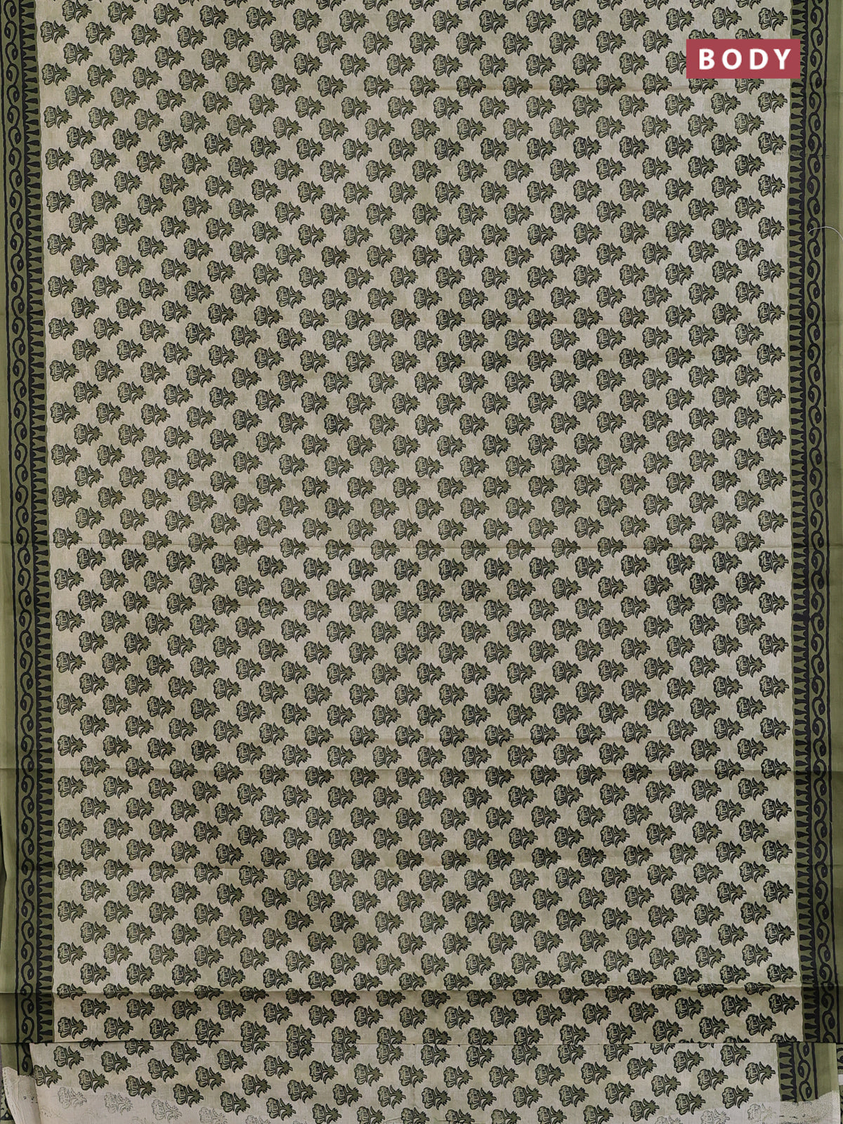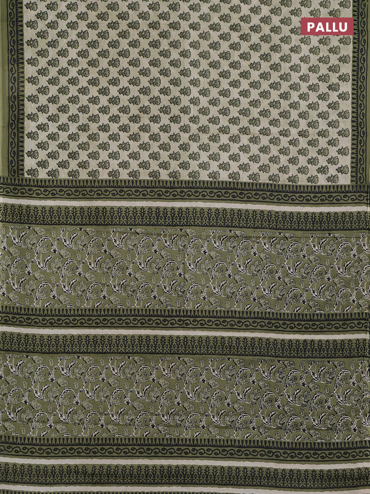 Muslin cotton saree elaichi green and pastel green with floral butta prints and printed border