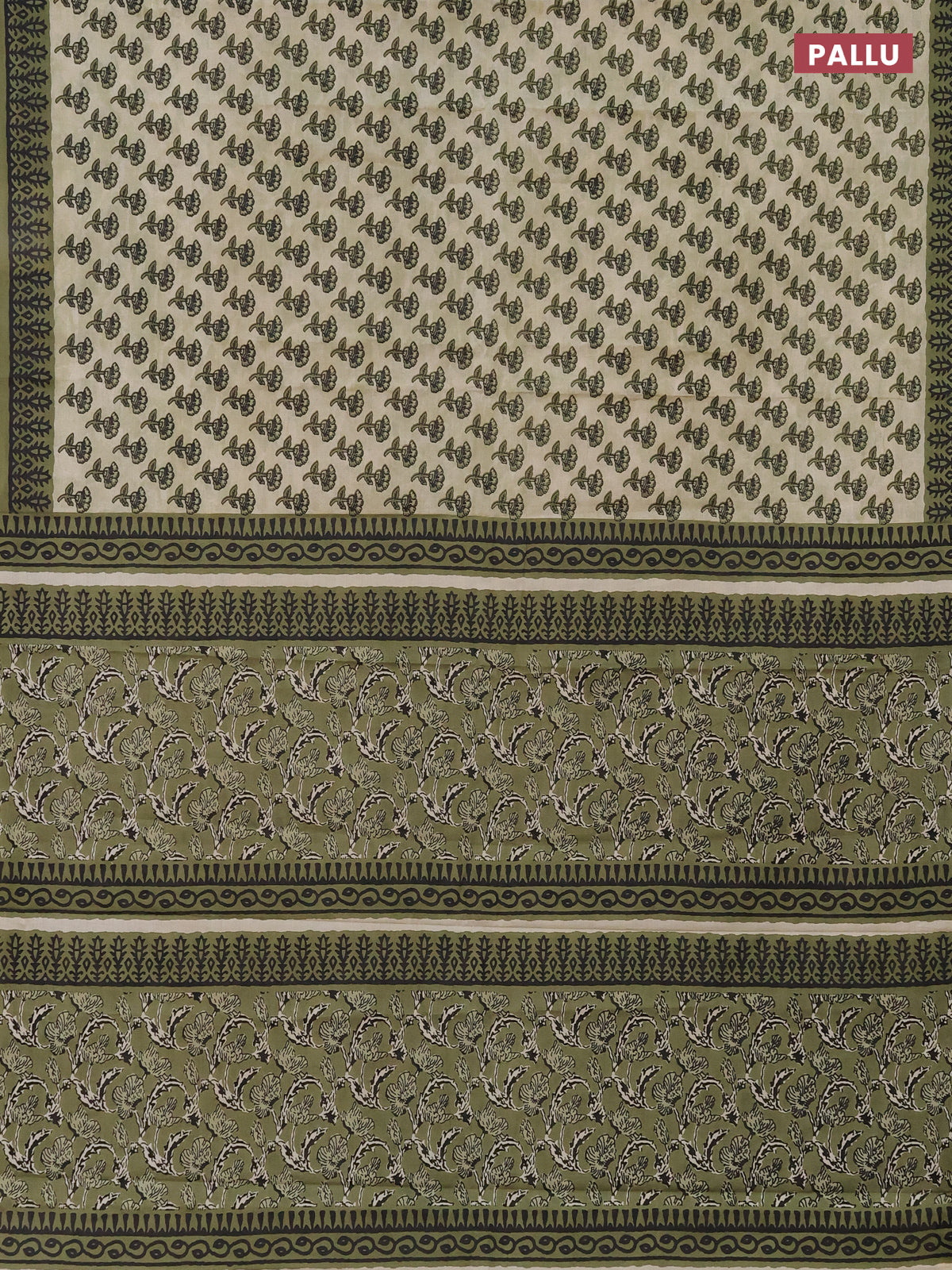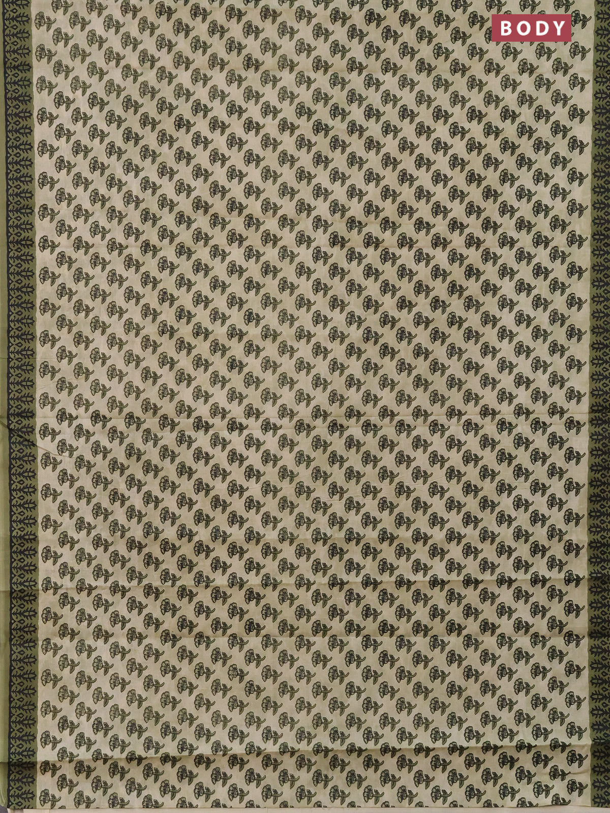 Muslin cotton saree elaichi green and sap green with floral butta prints and printed border