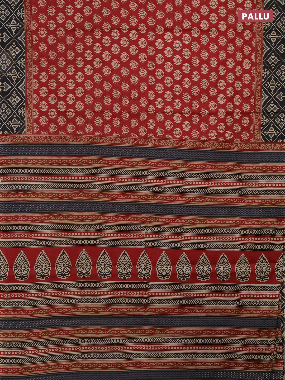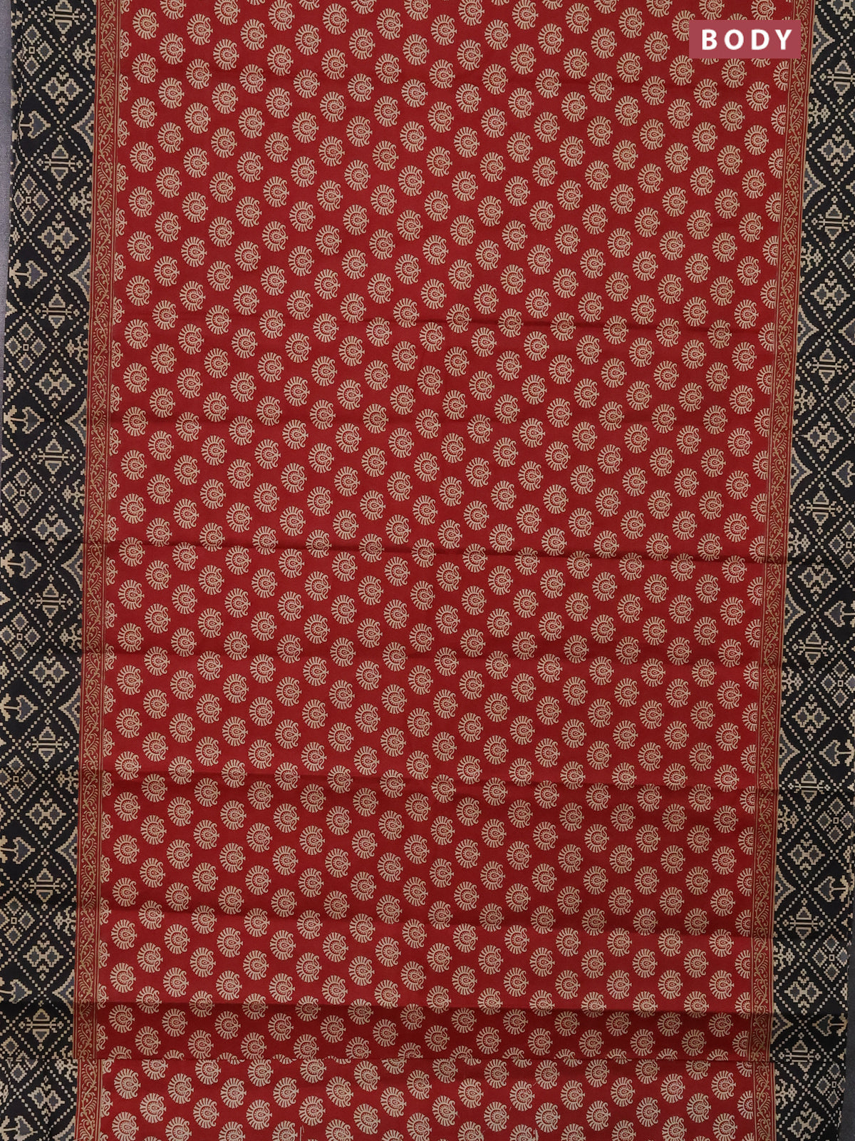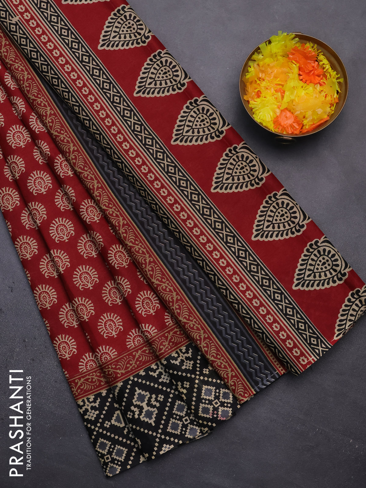 Muslin cotton saree maroon and black with allover butta prints and printed border