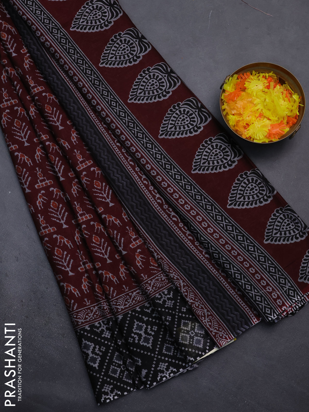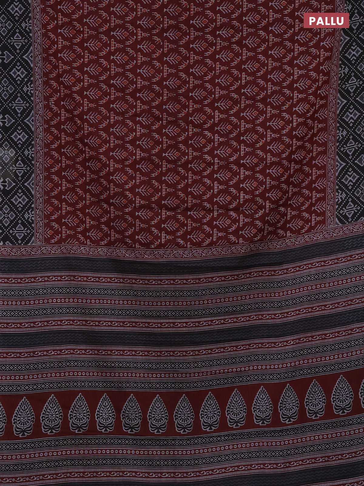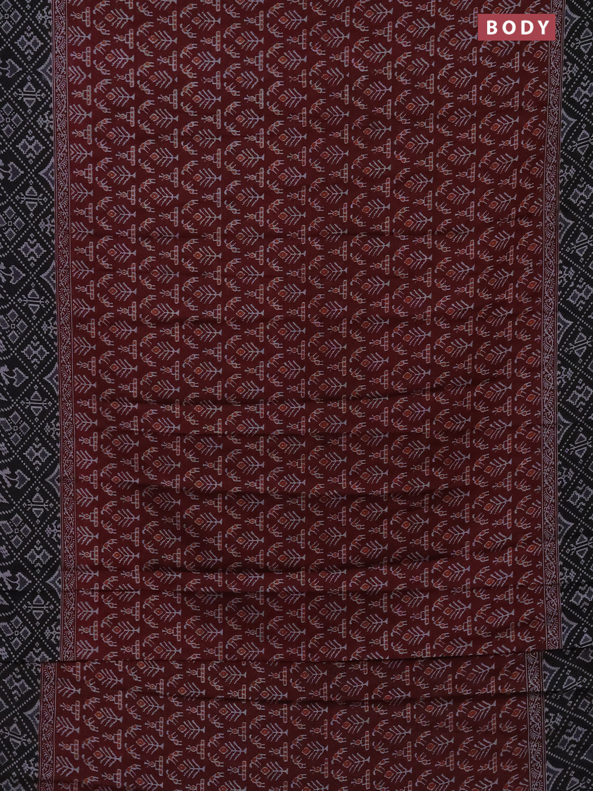 Muslin cotton saree maroon and black with allover prints and printed border
