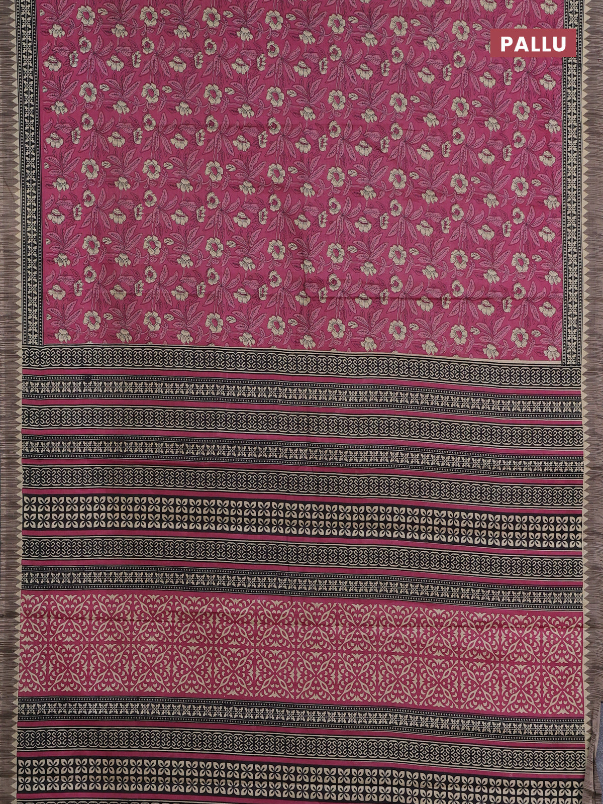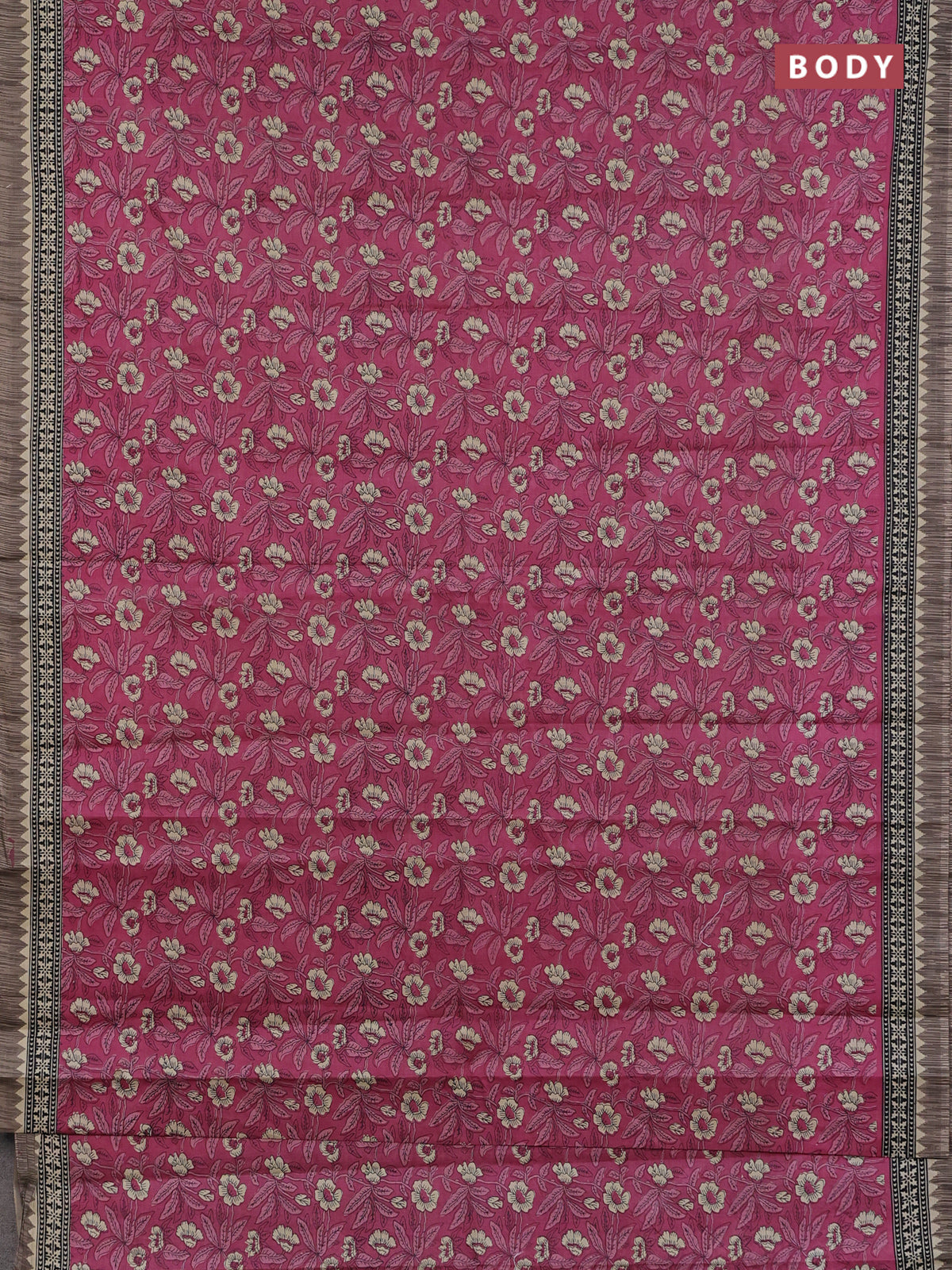 Muslin cotton saree maroon and grey with allover kalamkari prints and printed border