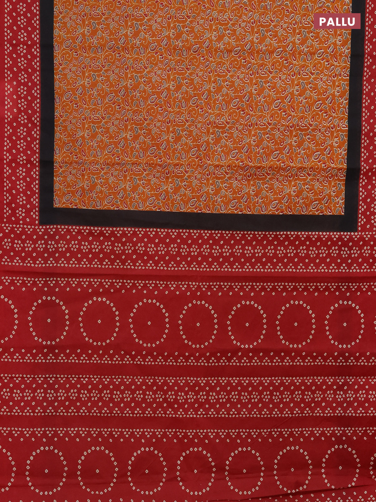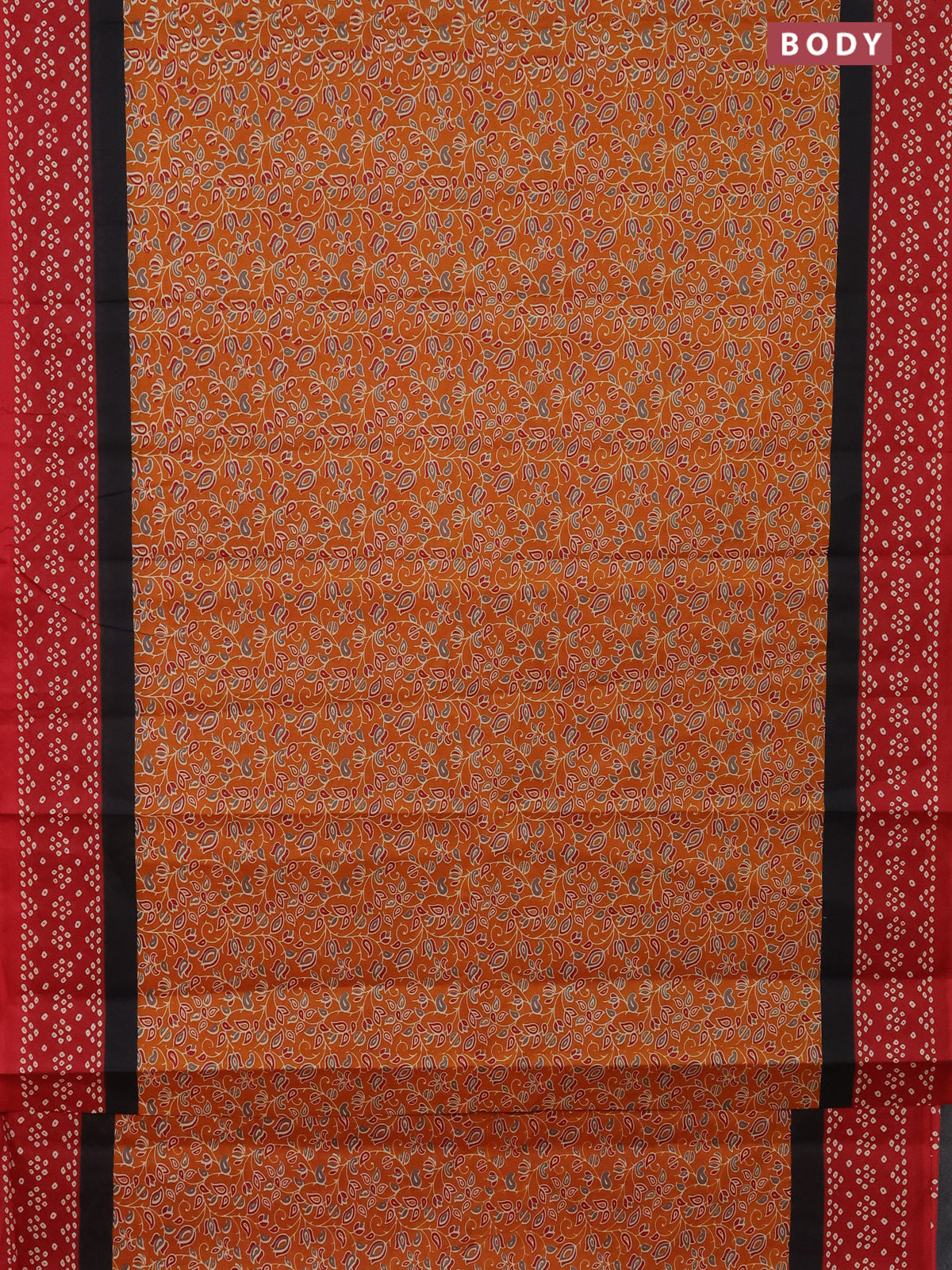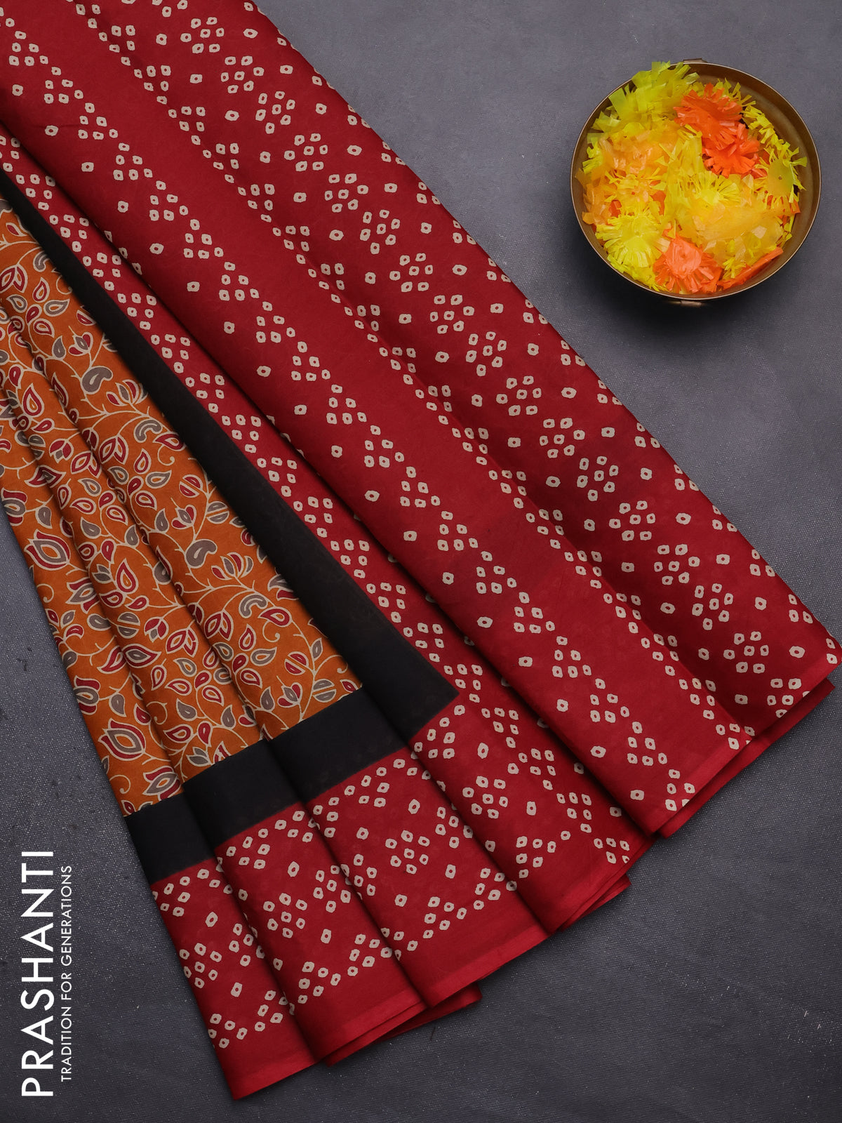 Muslin cotton saree mustard yellow and maroon with kalamkari prints and printed border