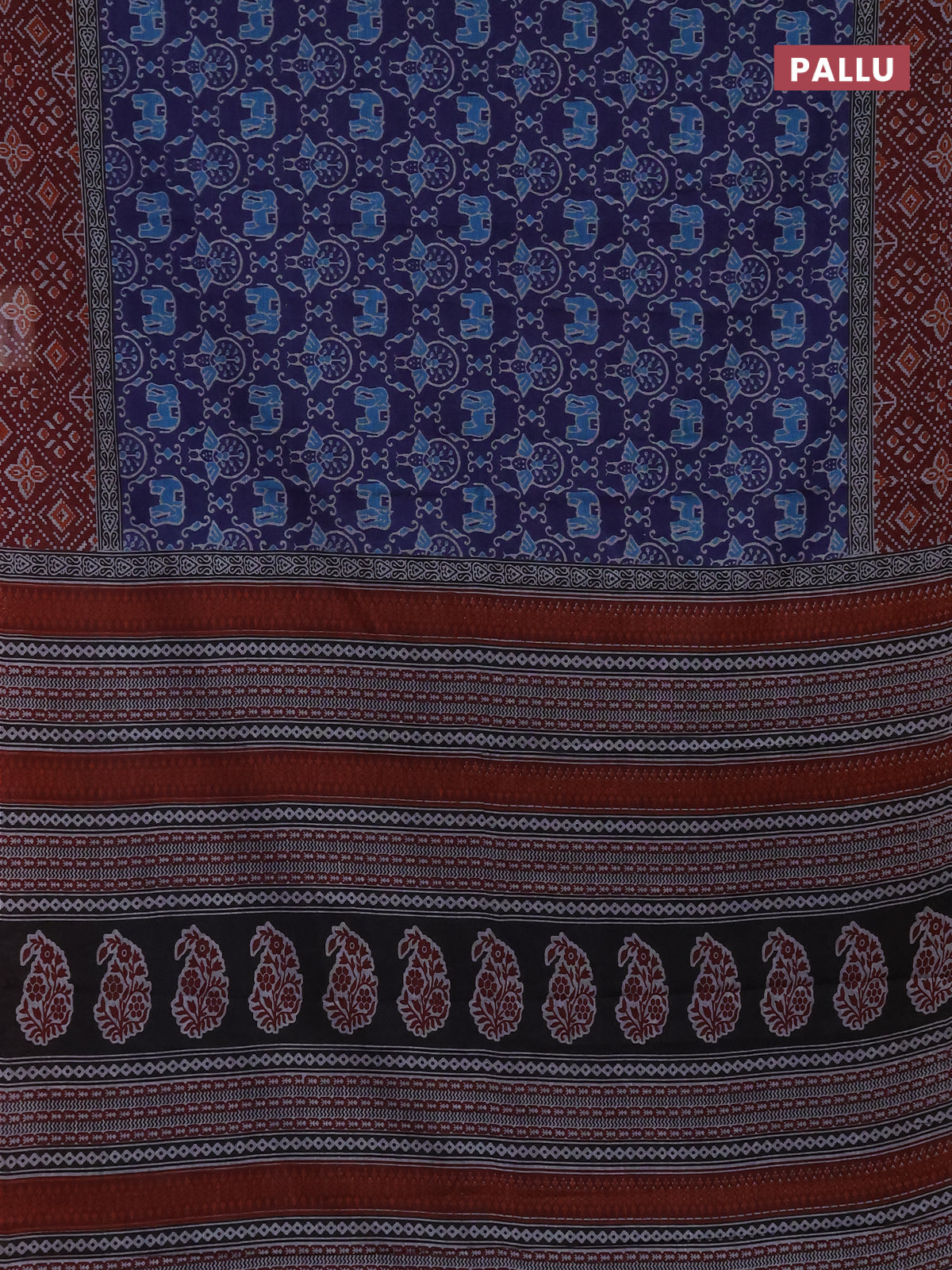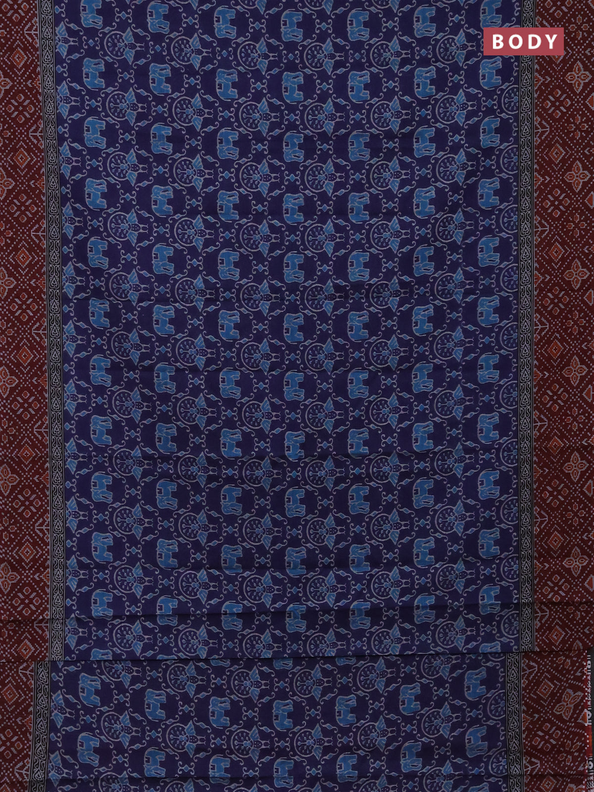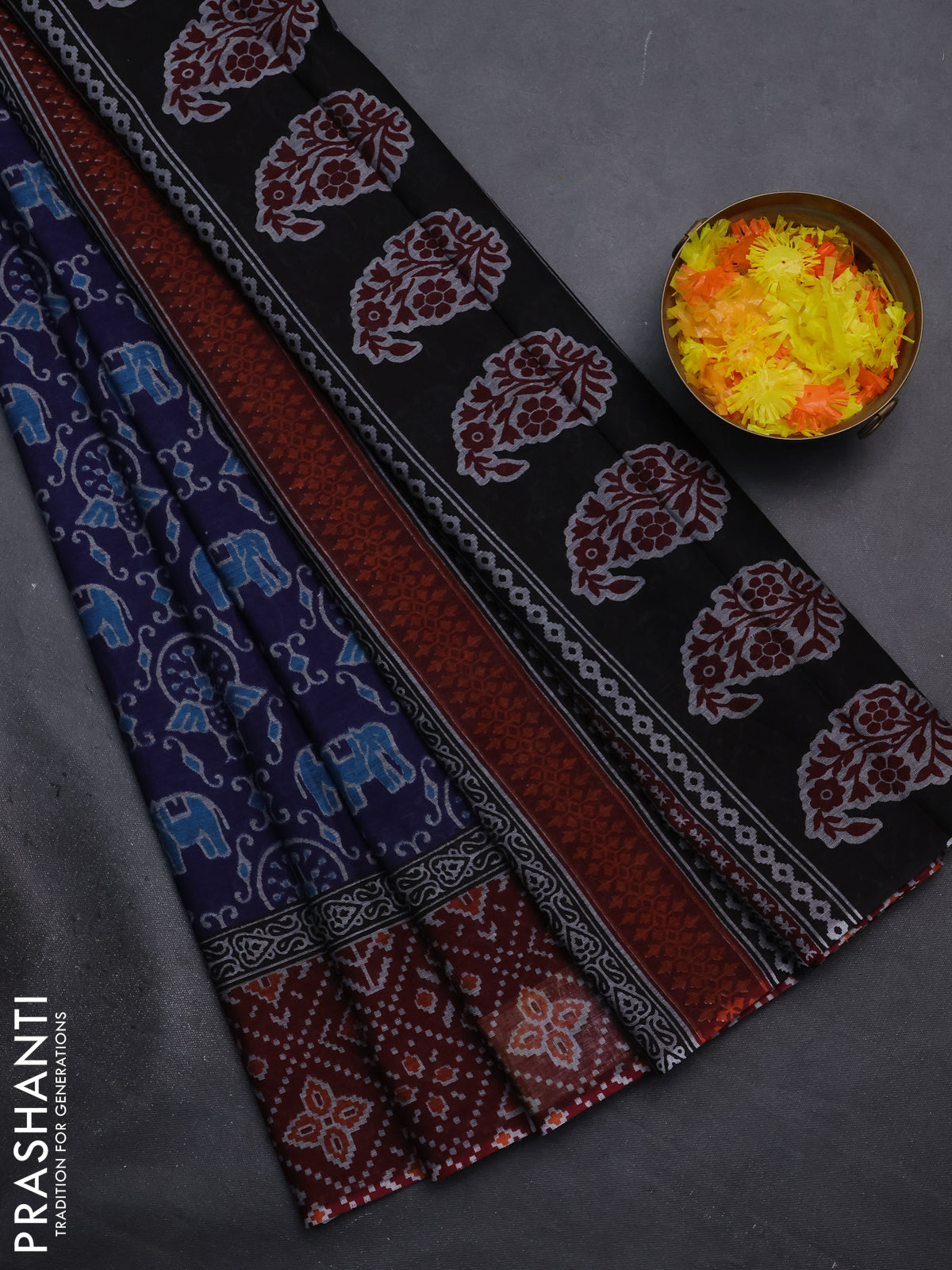 Muslin cotton saree navy blue and maroon with allover prints and printed border