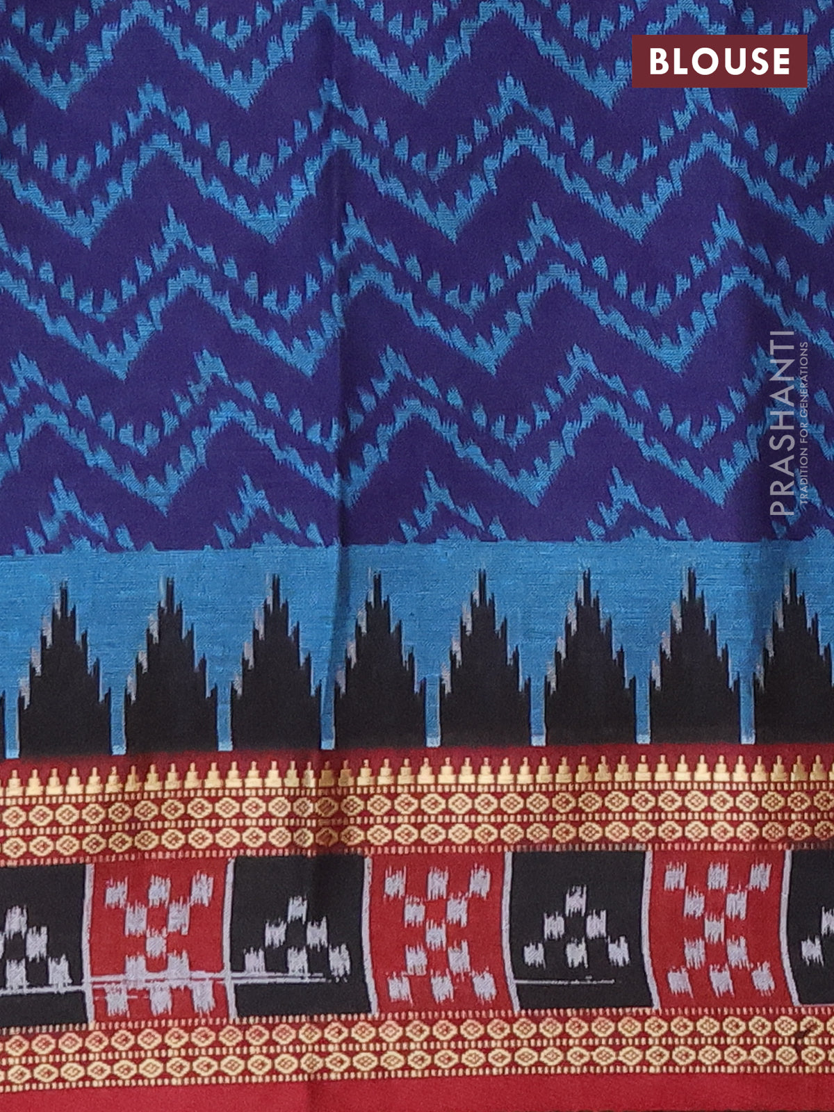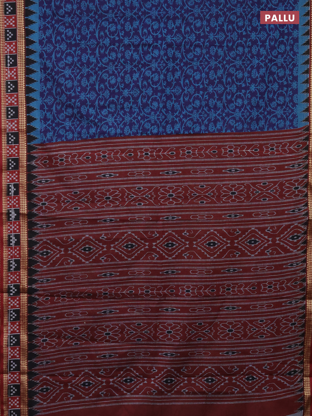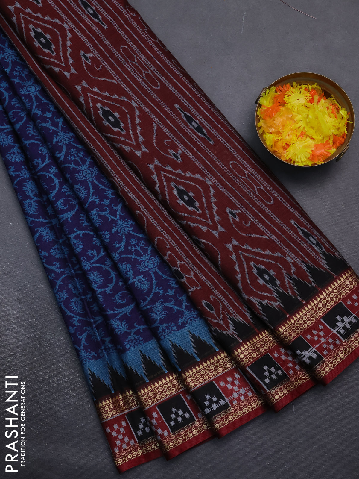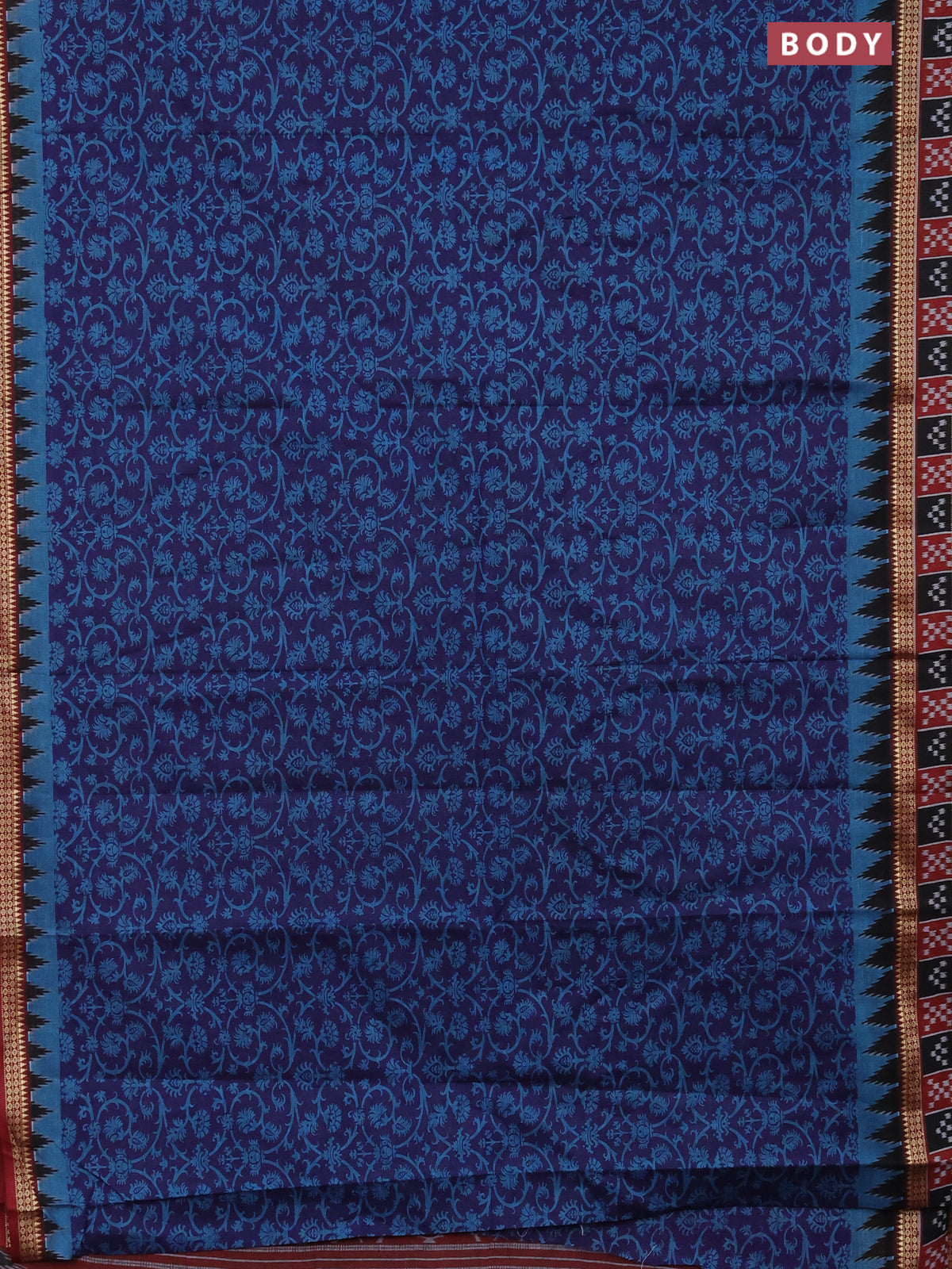 Muslin cotton saree navy blue and maroon with allover prints and woven border