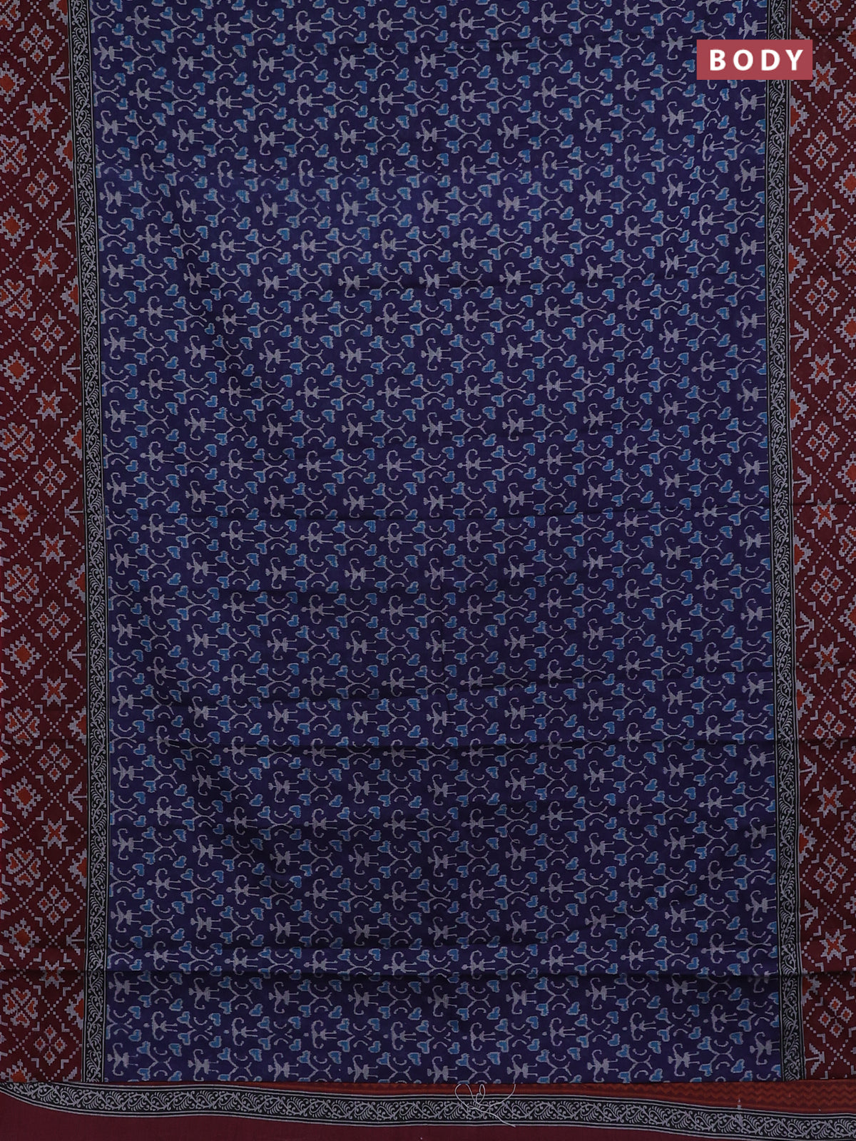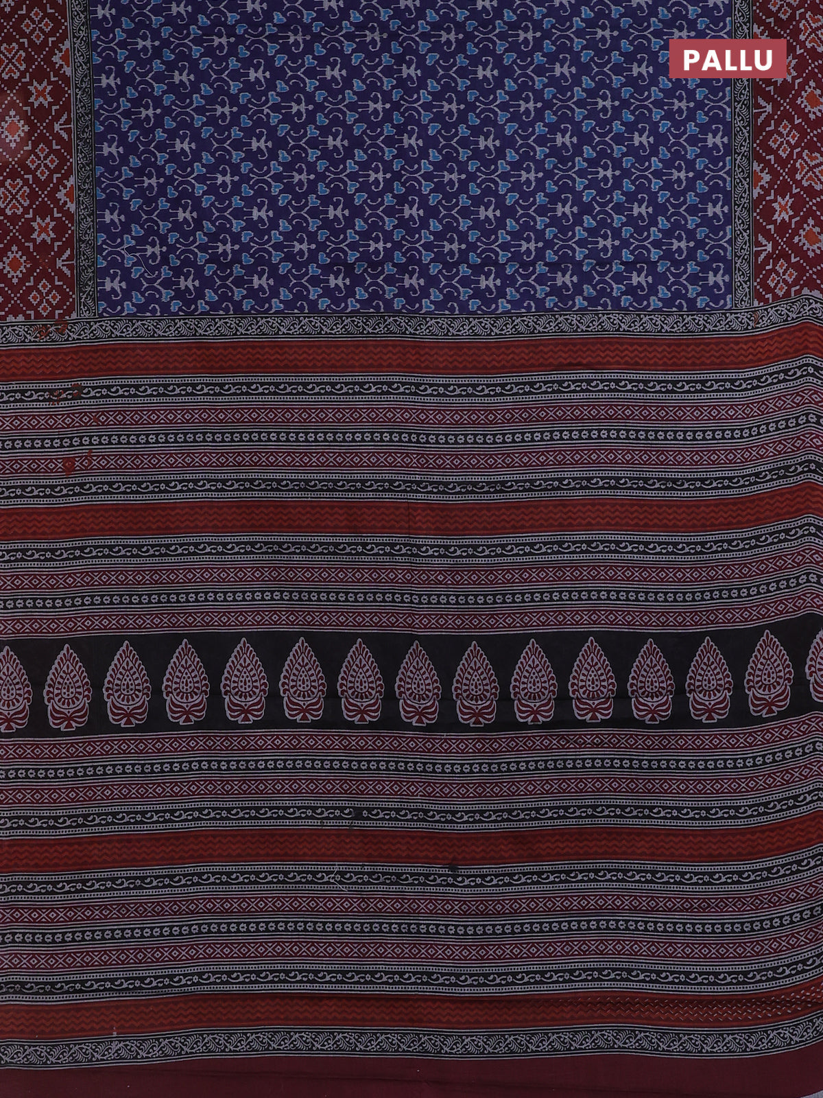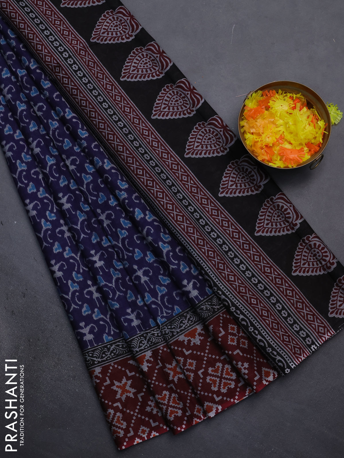 Muslin cotton saree navy blue and maroon with warli prints and printed border