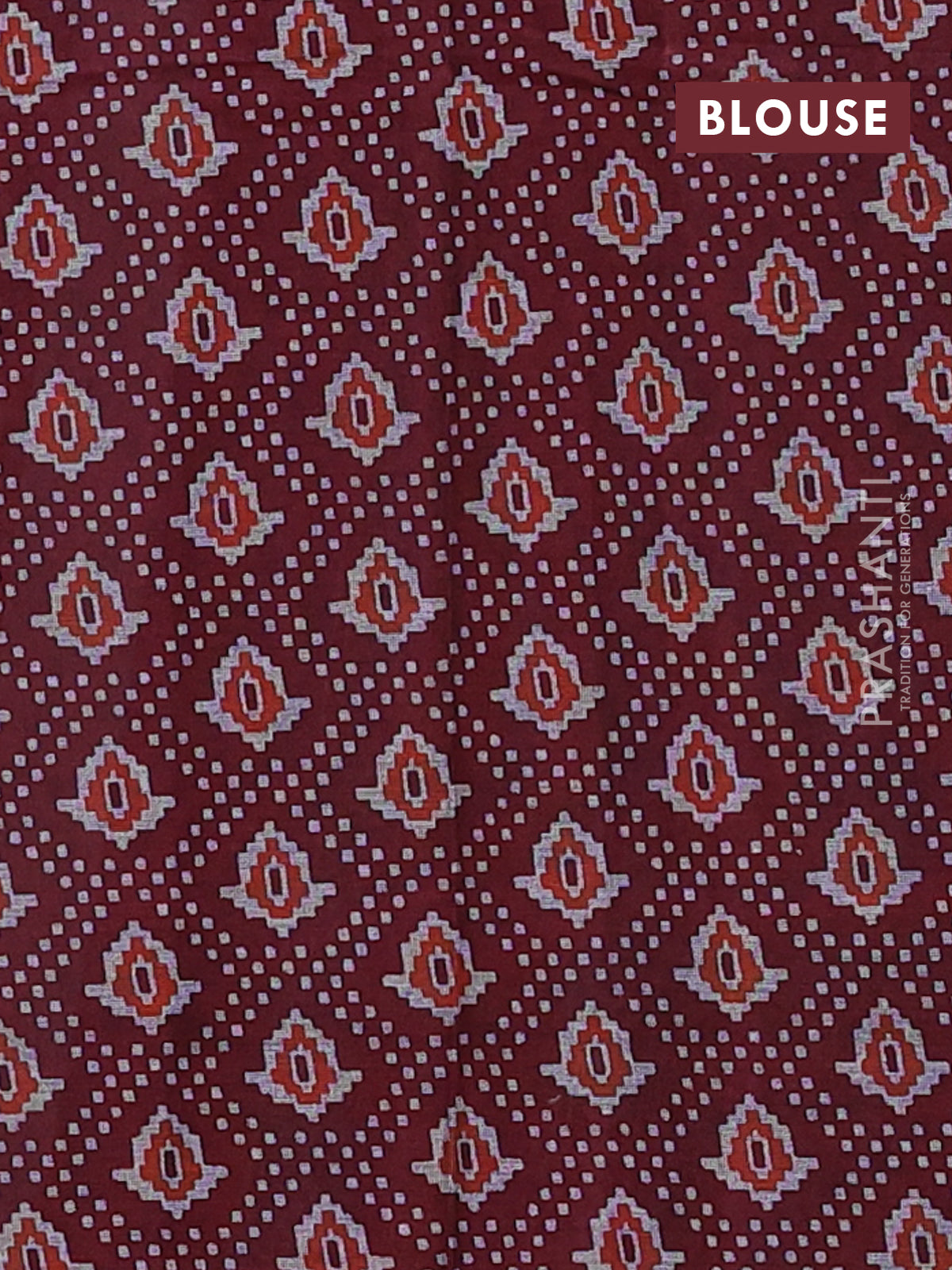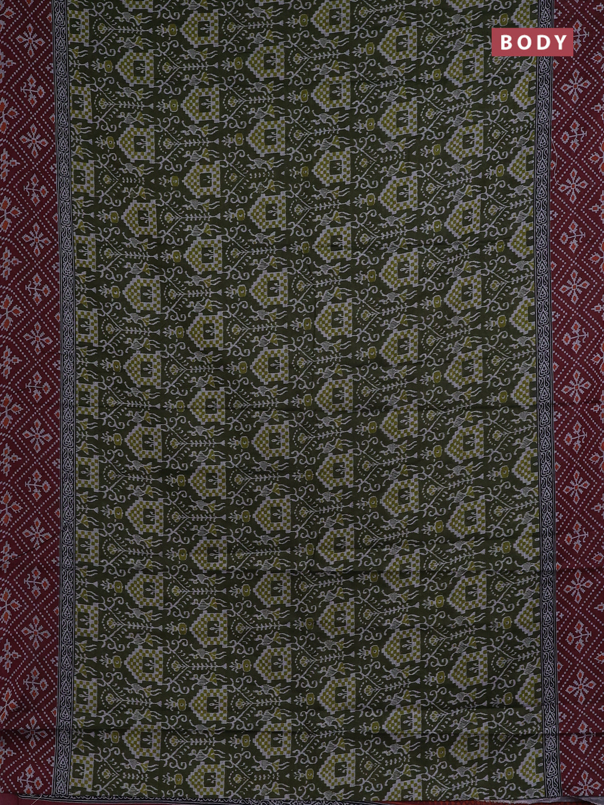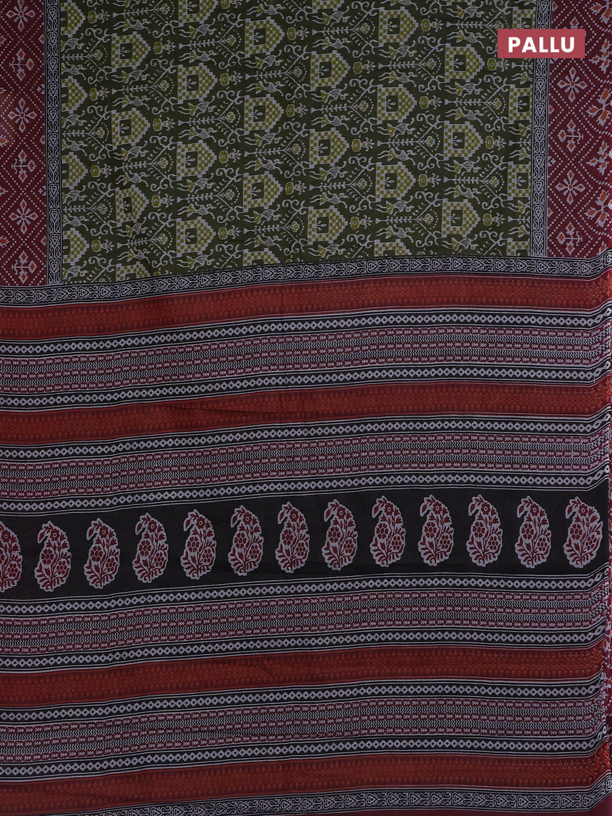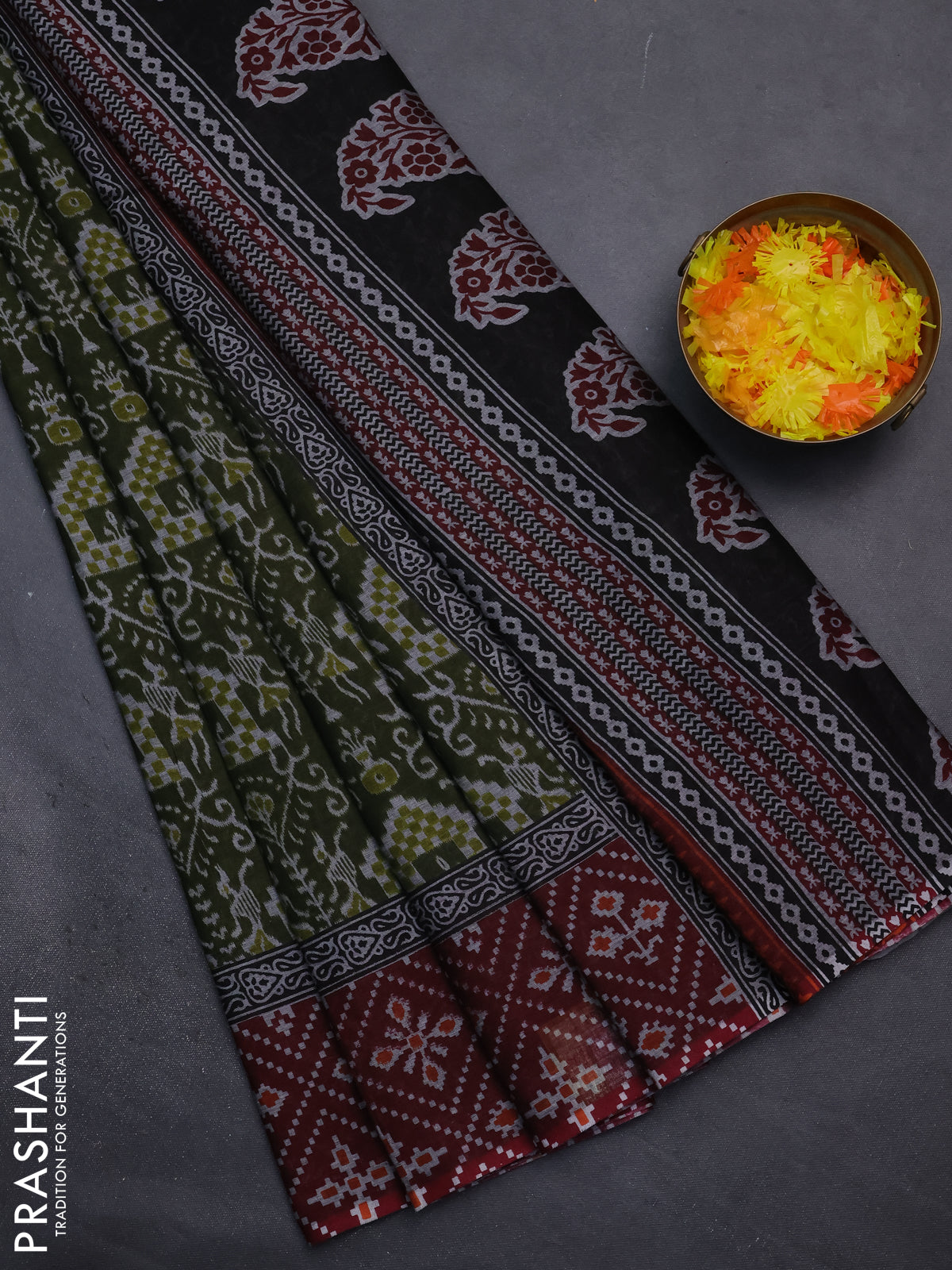 Muslin cotton saree sap green and maroon with allover prints and printed border