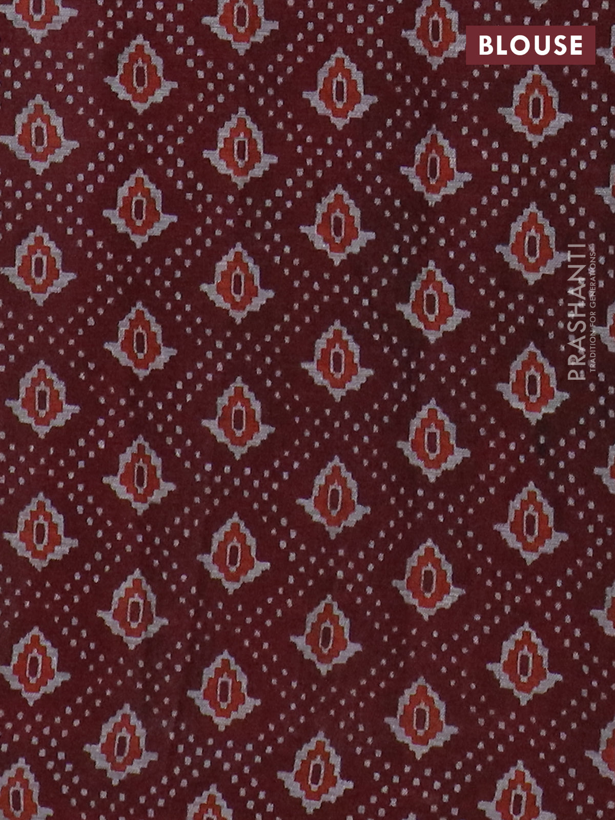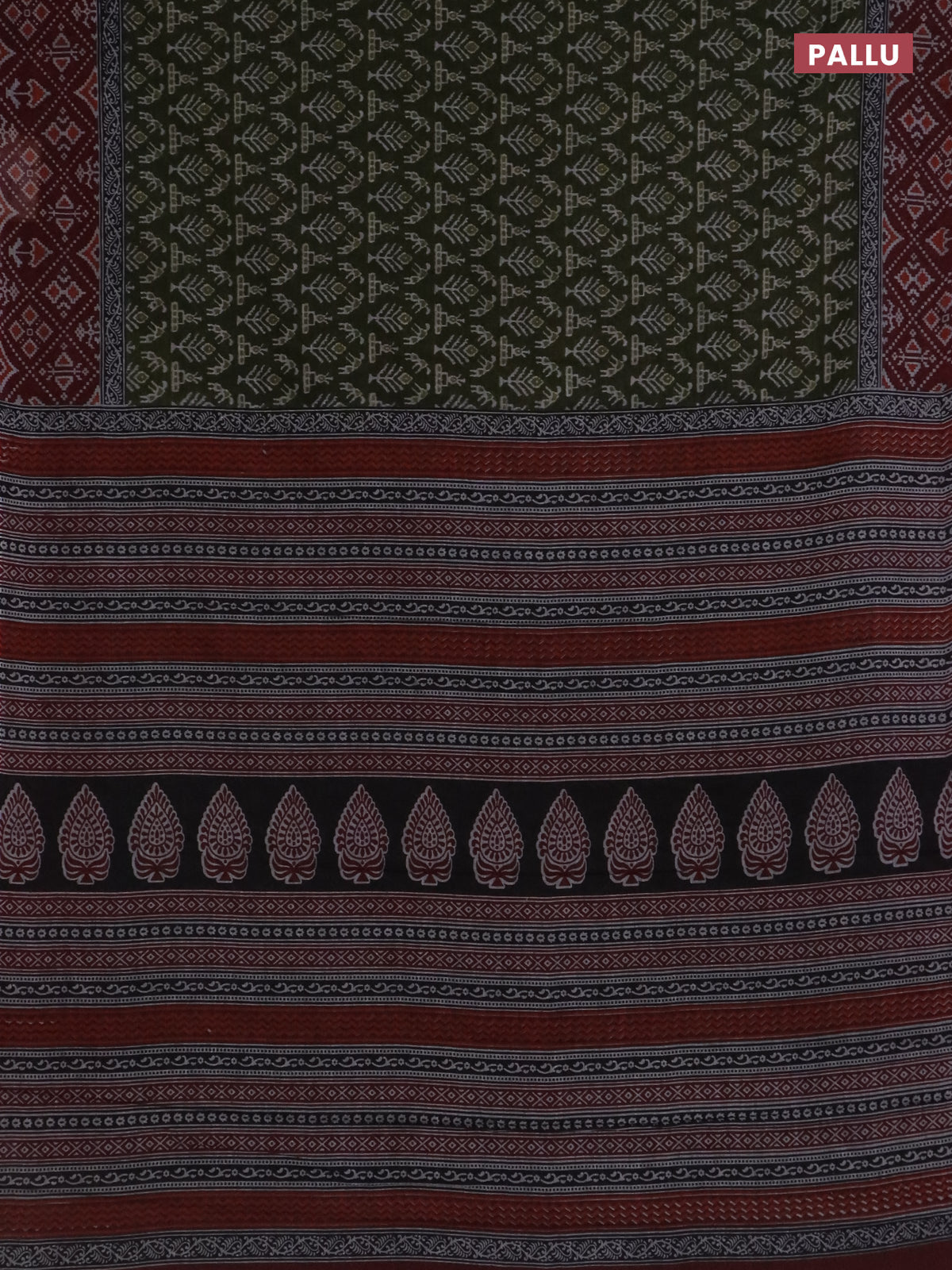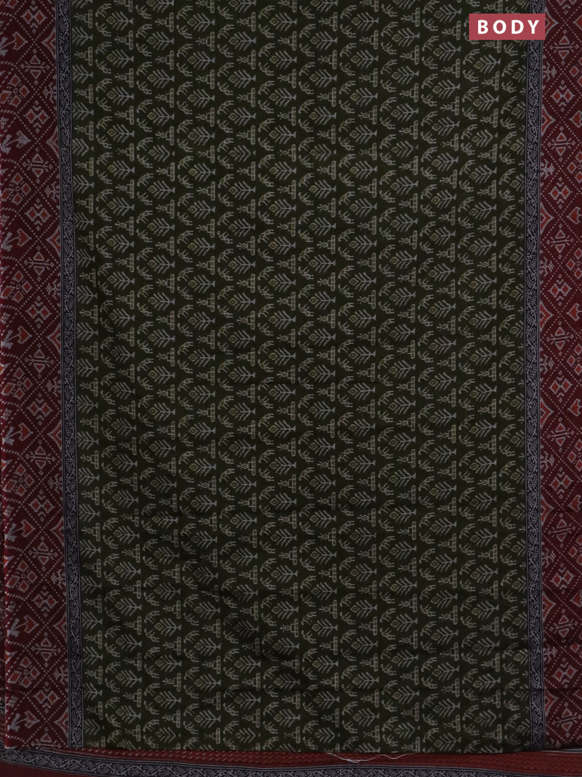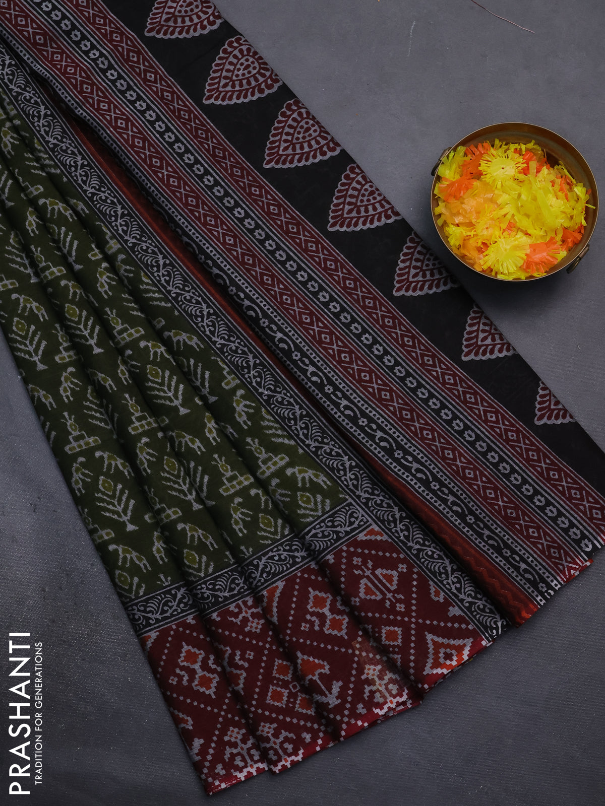 Muslin cotton saree sap green and maroon with allover prints and printed border