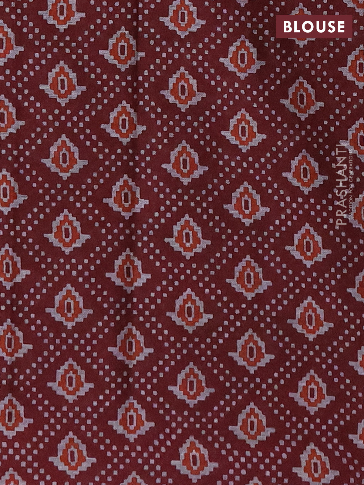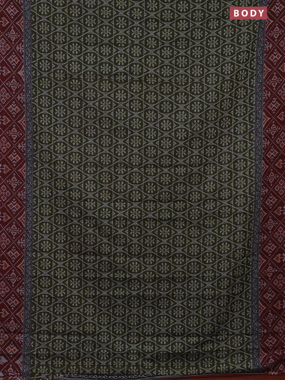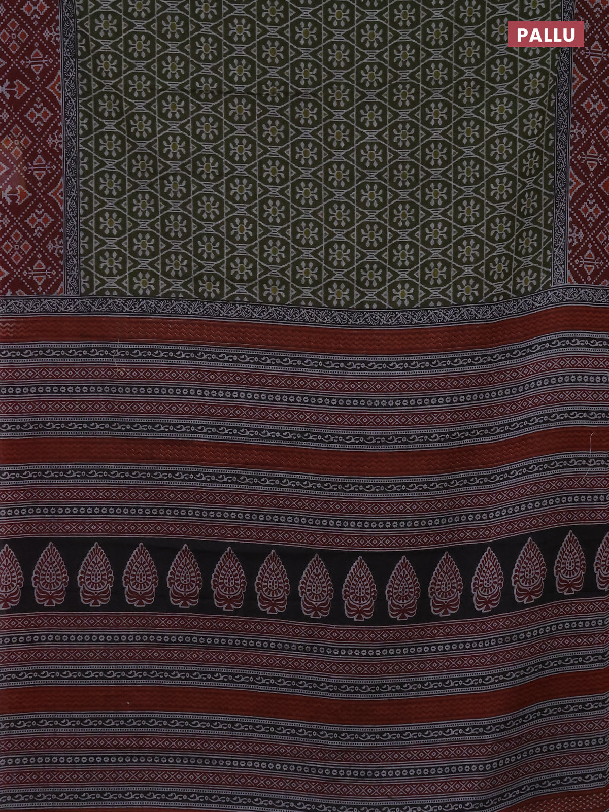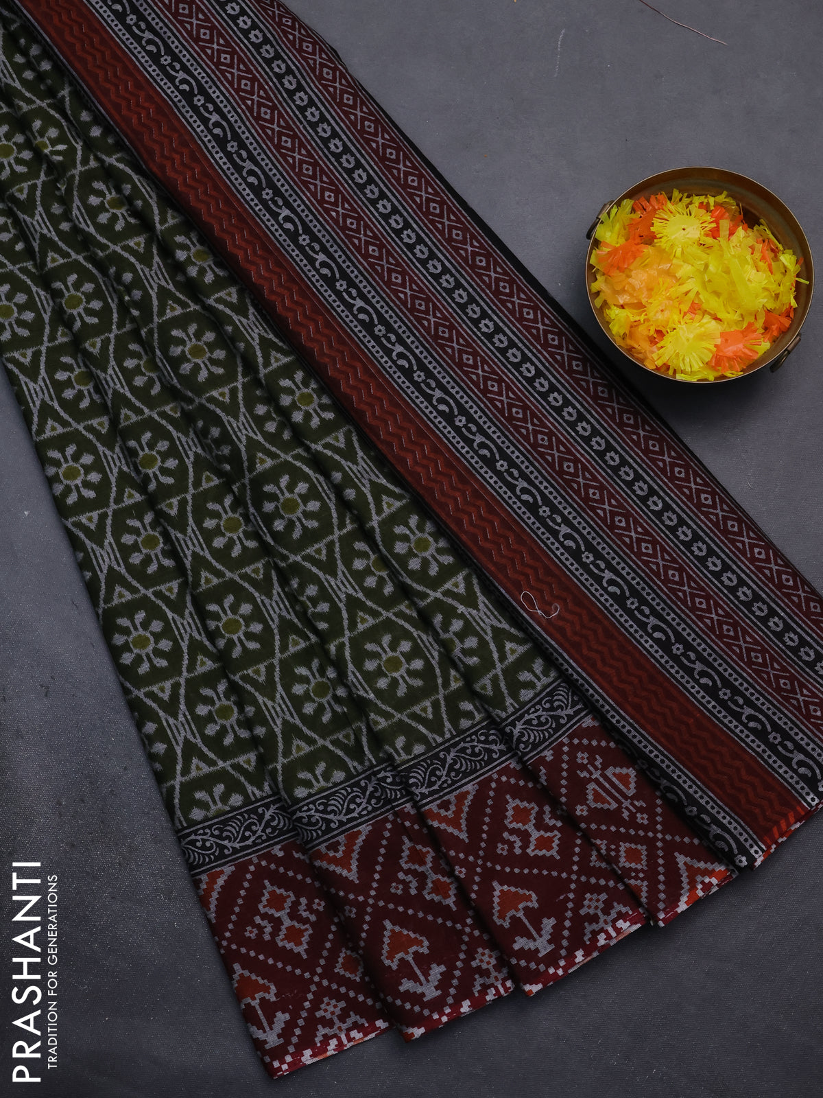 Muslin cotton saree sap green and maroon with allover prints and printed border