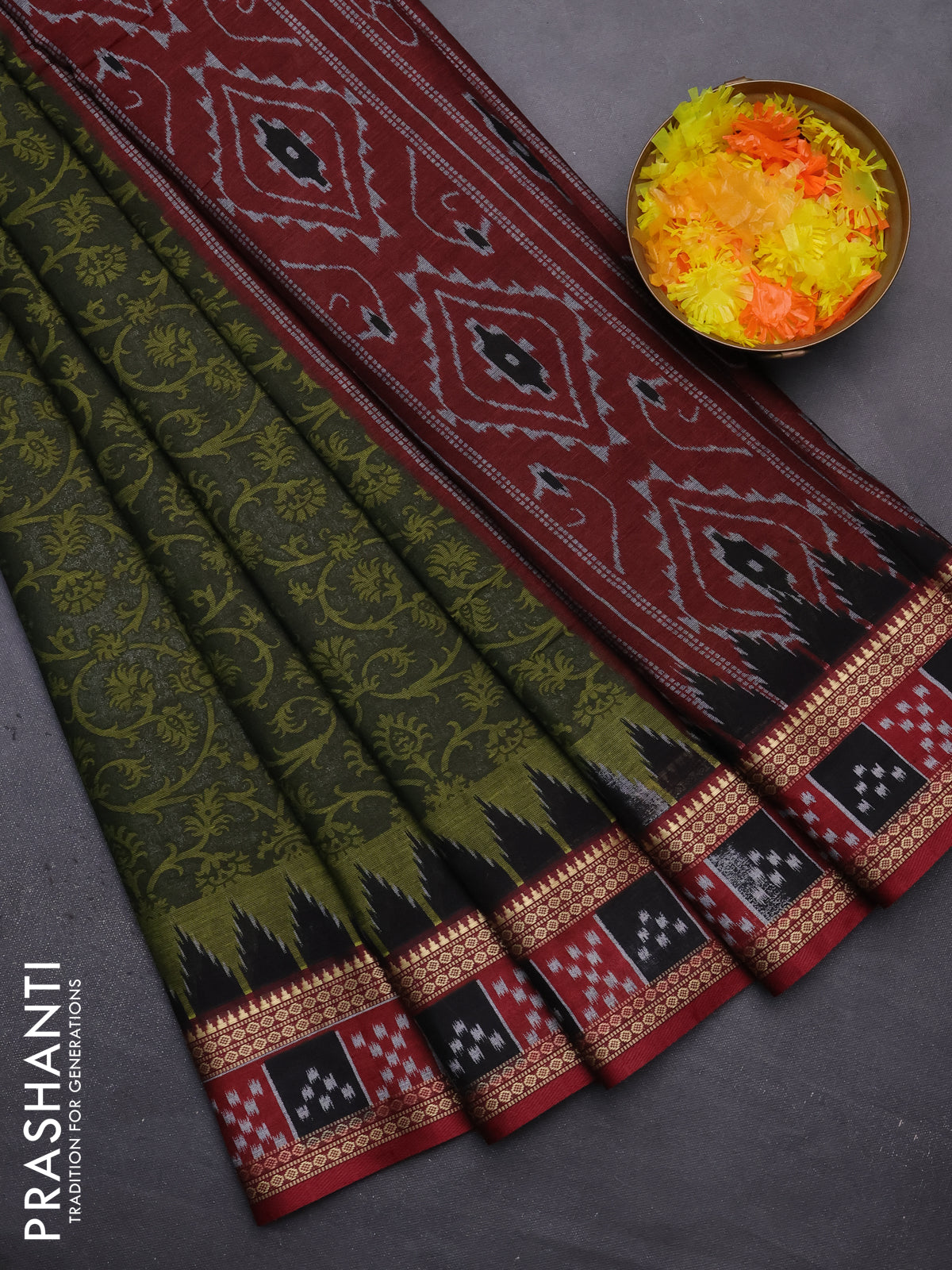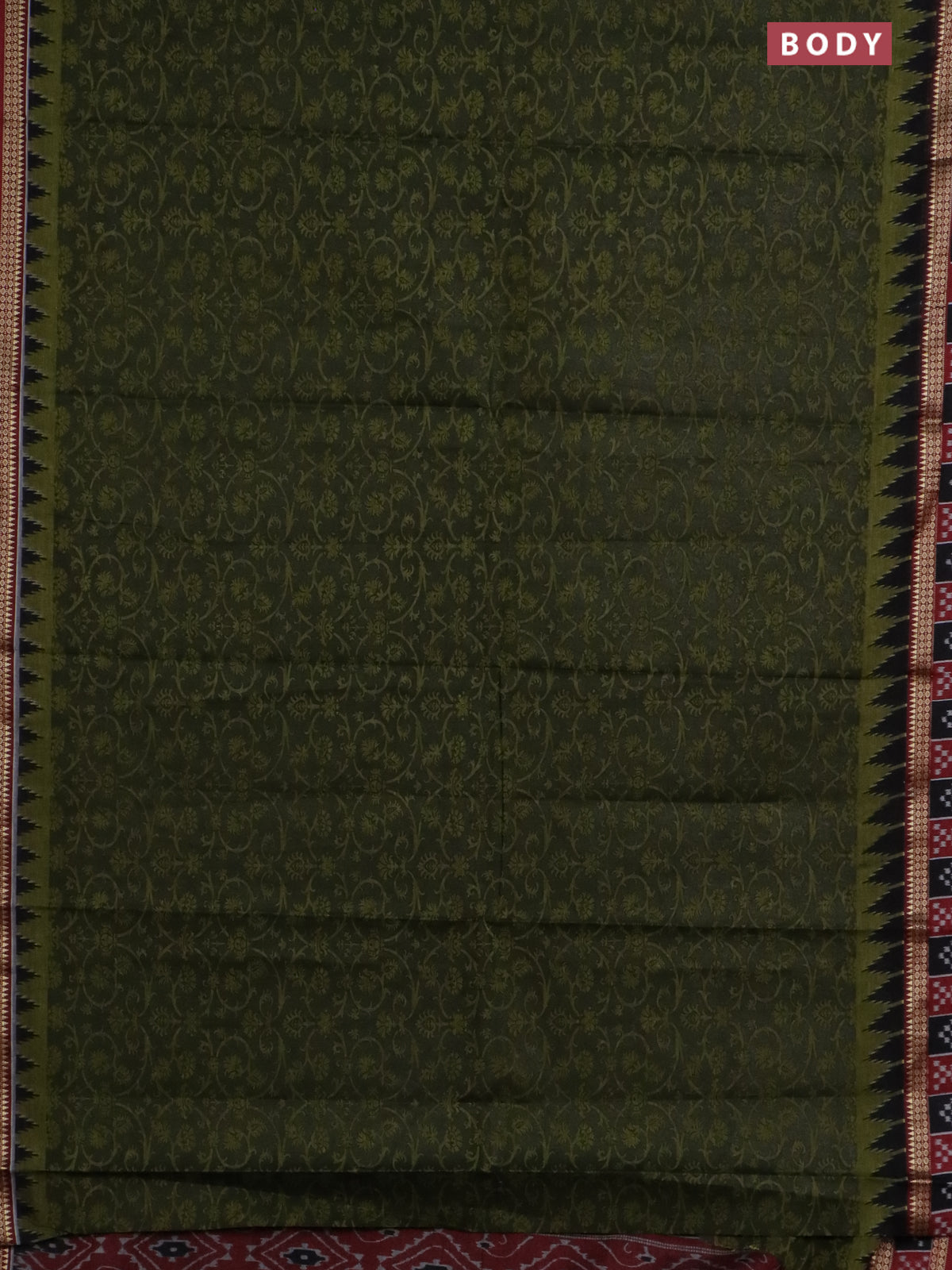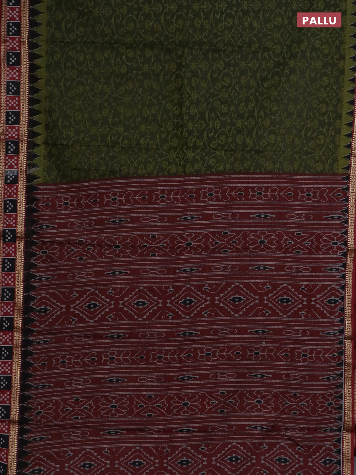 Muslin cotton saree sap green and maroon with allover prints and woven border