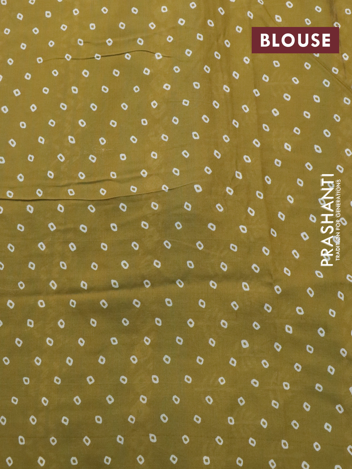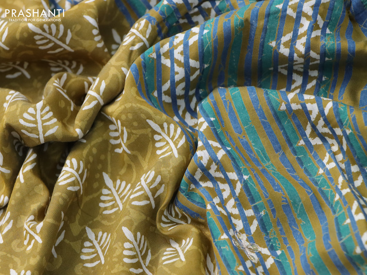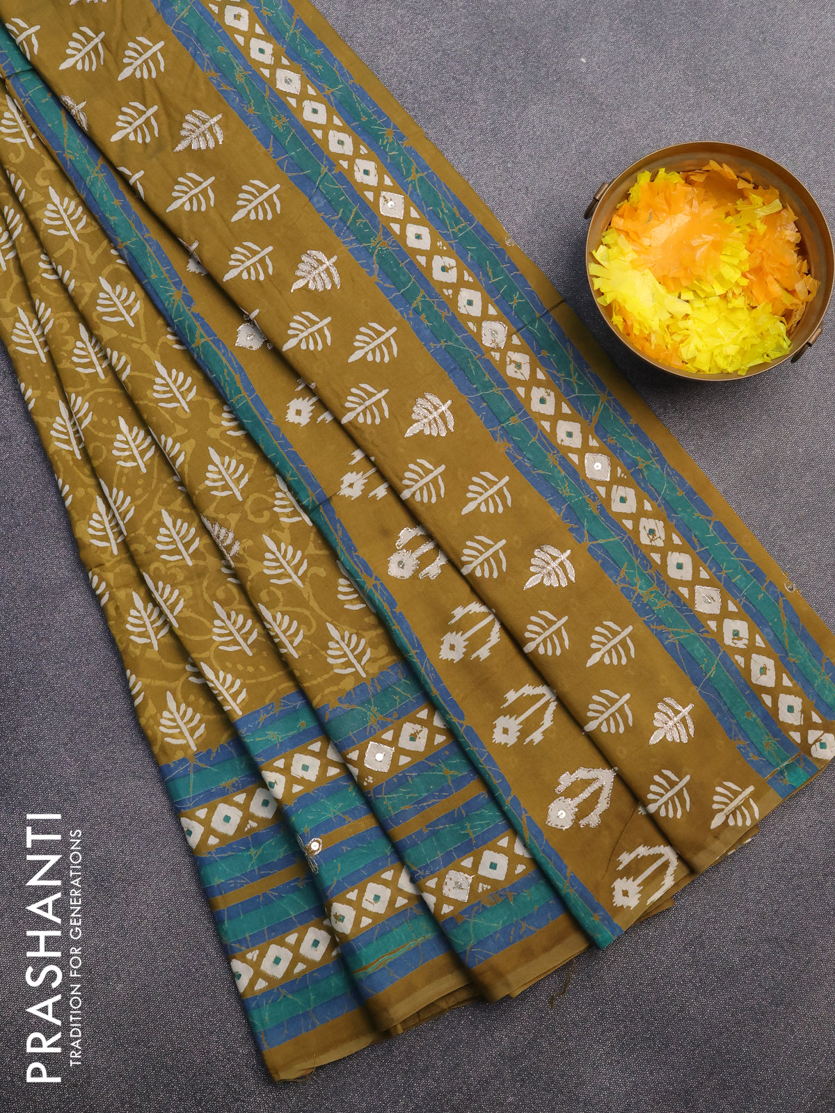 Muslin silk saree mehendi green and green with allover butta prints & pita work and batik printed border
