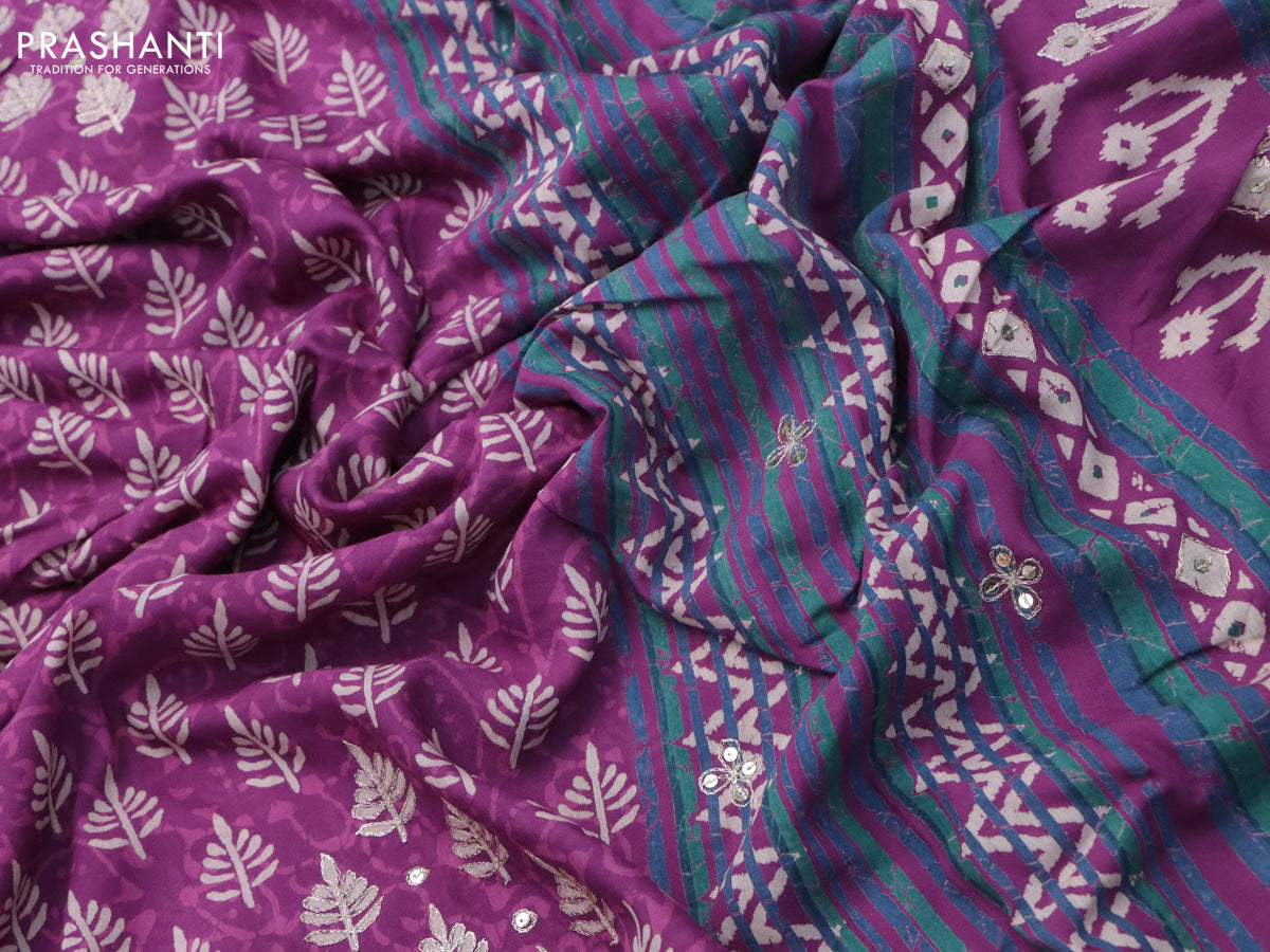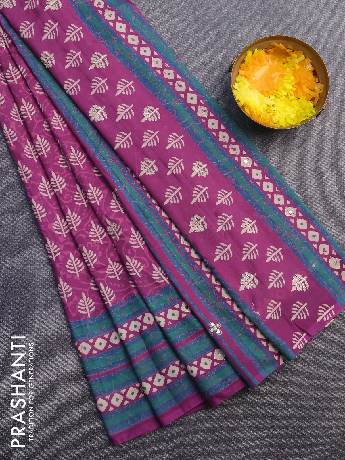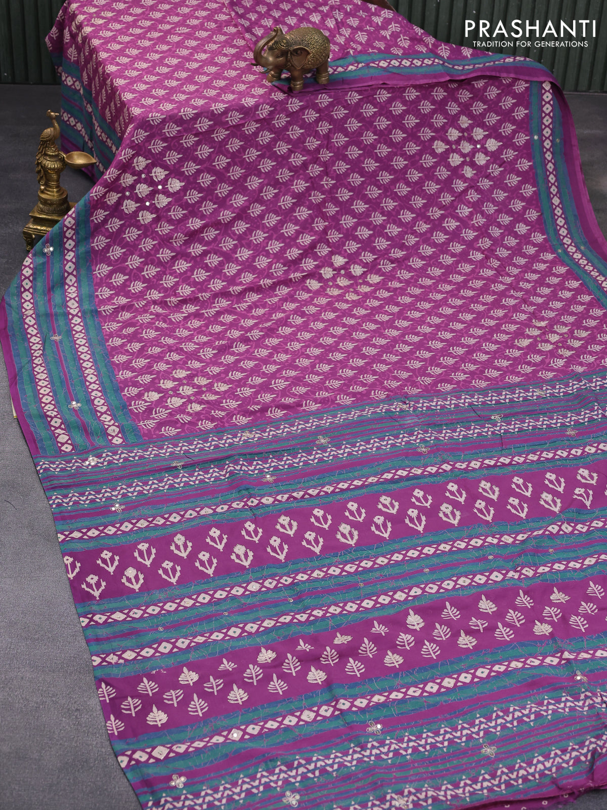 Muslin silk saree purple with allover butta prints & pita work and batik printed border