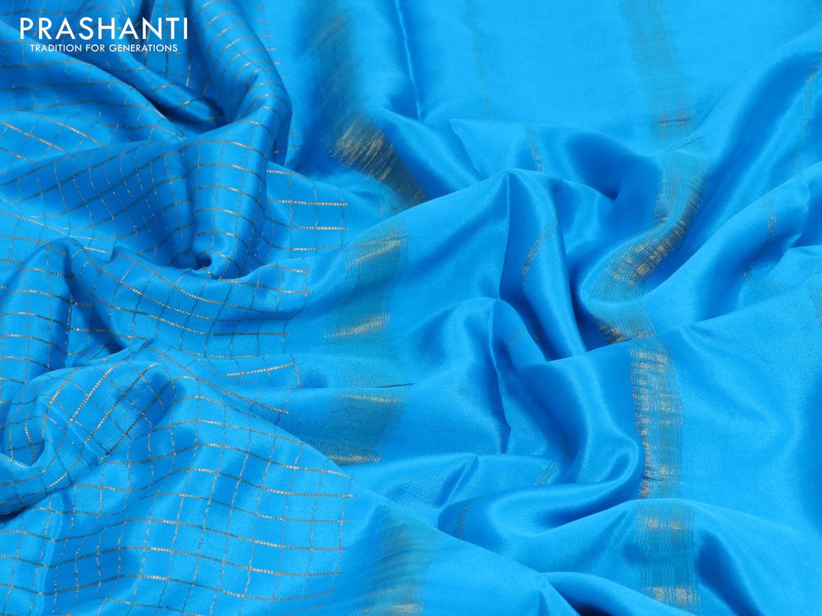 Mysore silk saree light blue with allover zari checked pattern and zari woven border