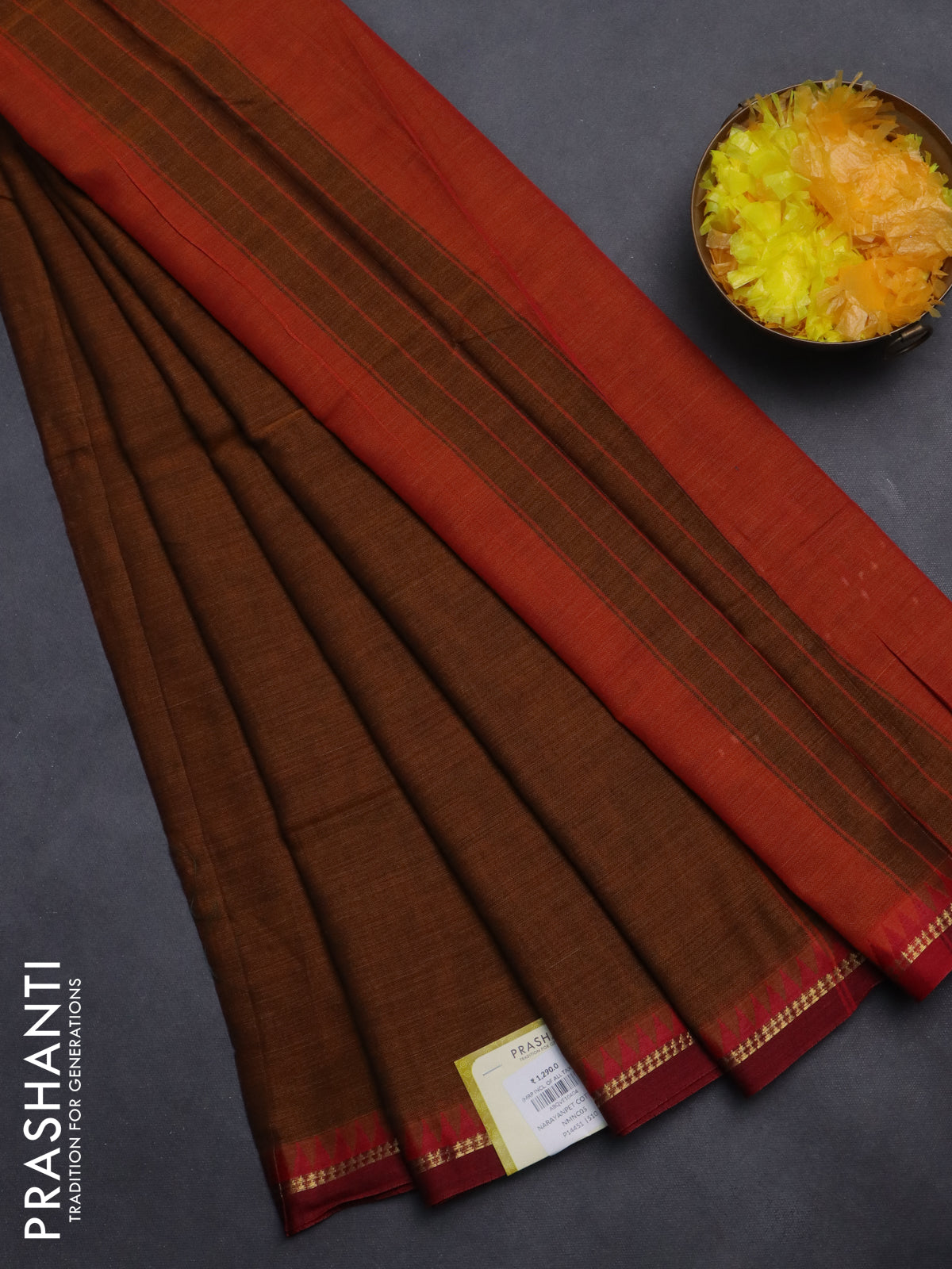 Narayanpet cotton saree dark mustard and maroon with plain body and simple border