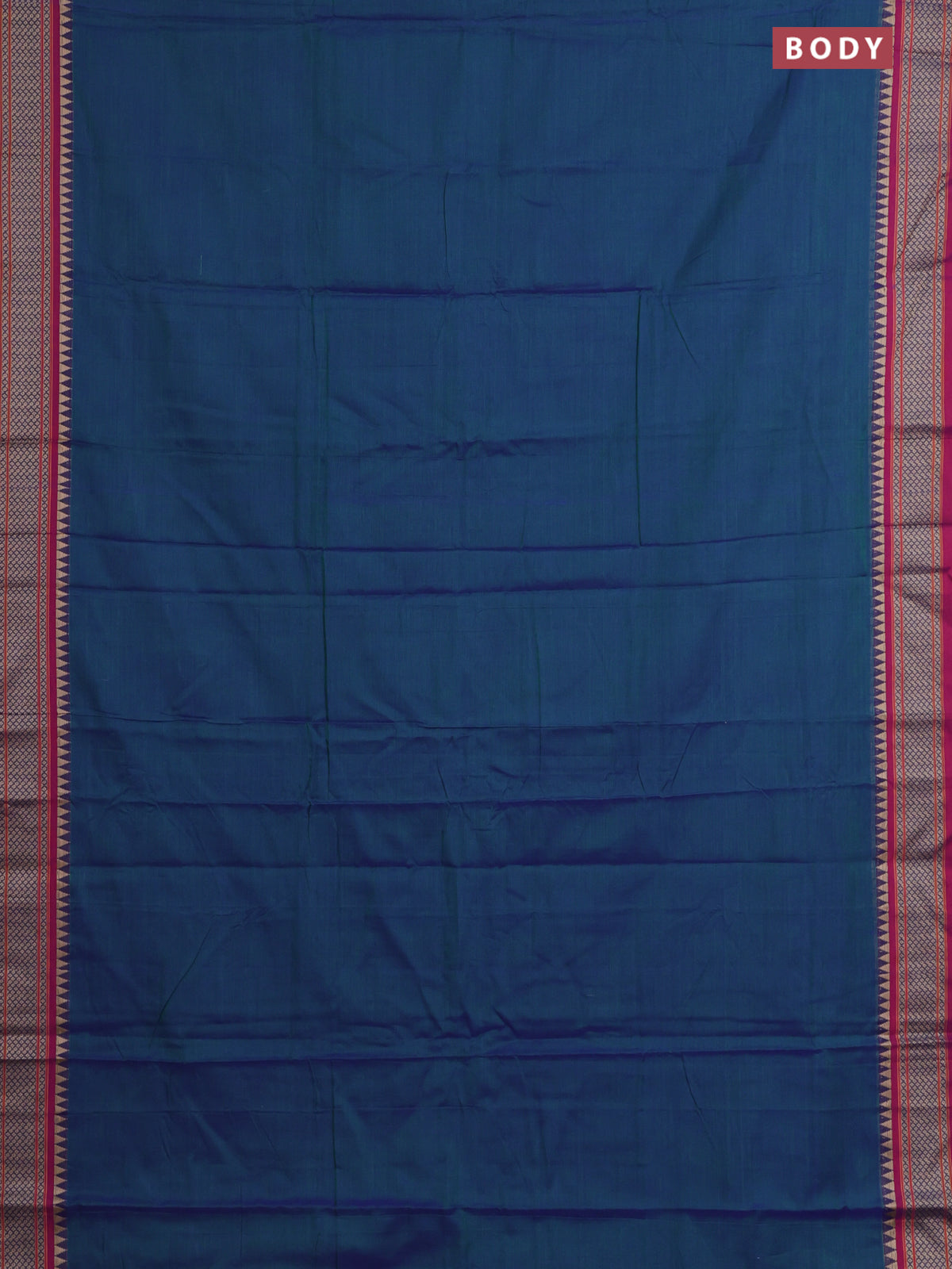 Narayanpet cotton saree dual shade of bluish green and pink with plain body and thread woven border