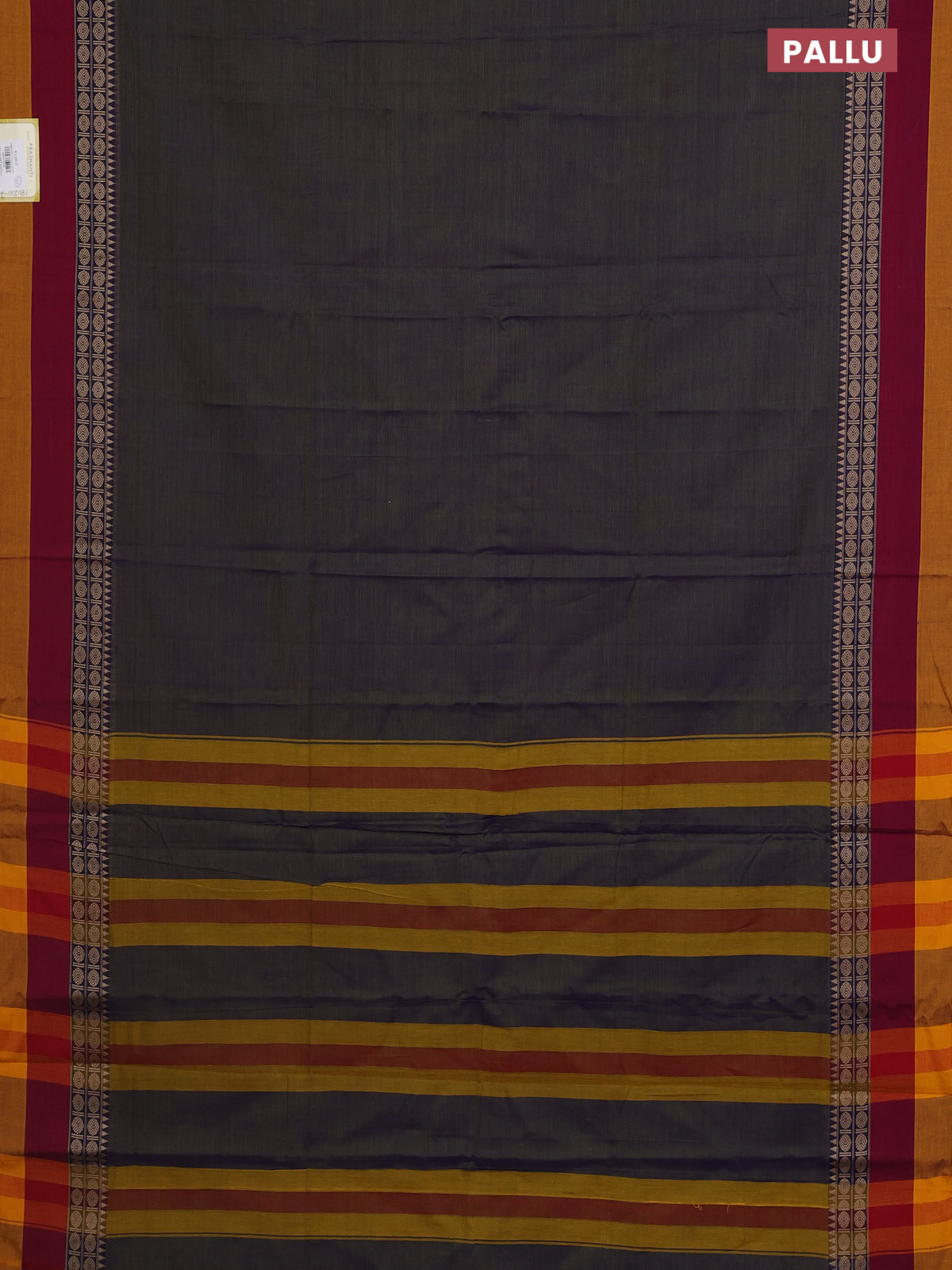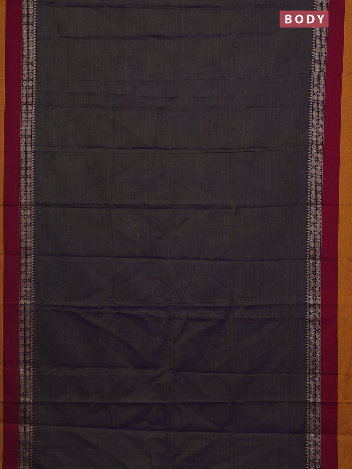 Narayanpet cotton saree dual shade of violetish green and maroon yellow with plain body and thread woven simple border