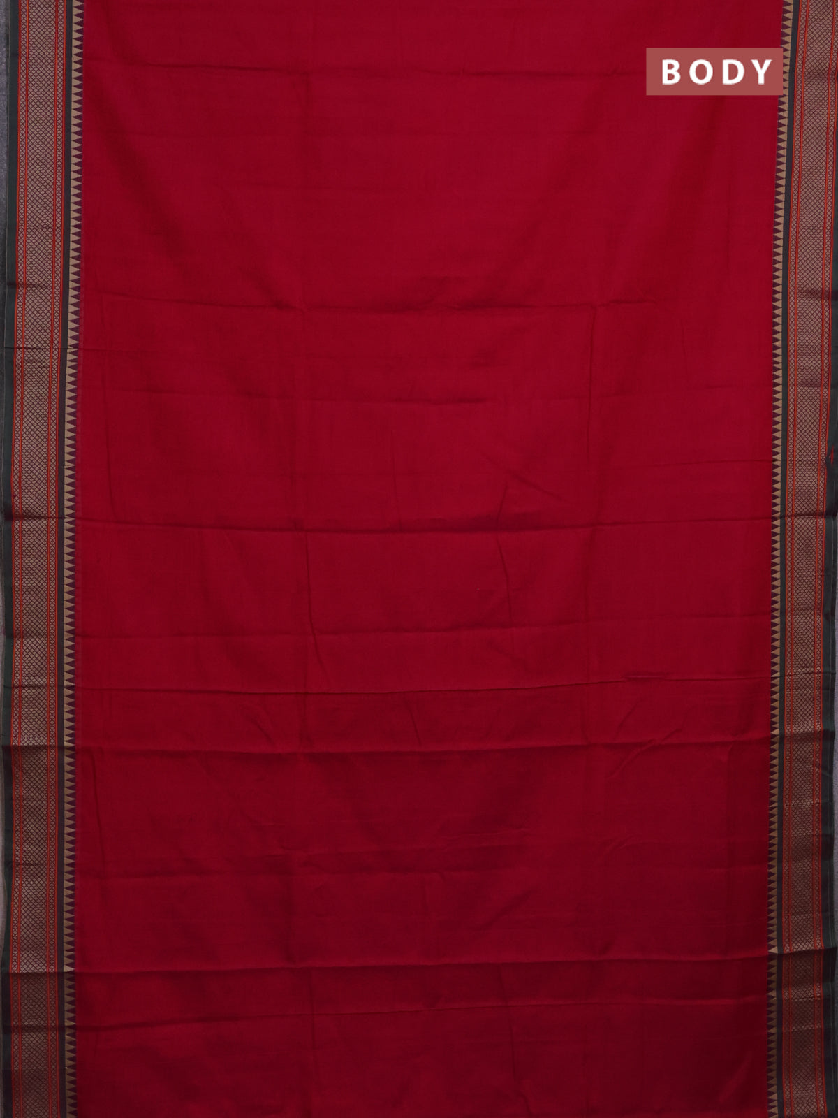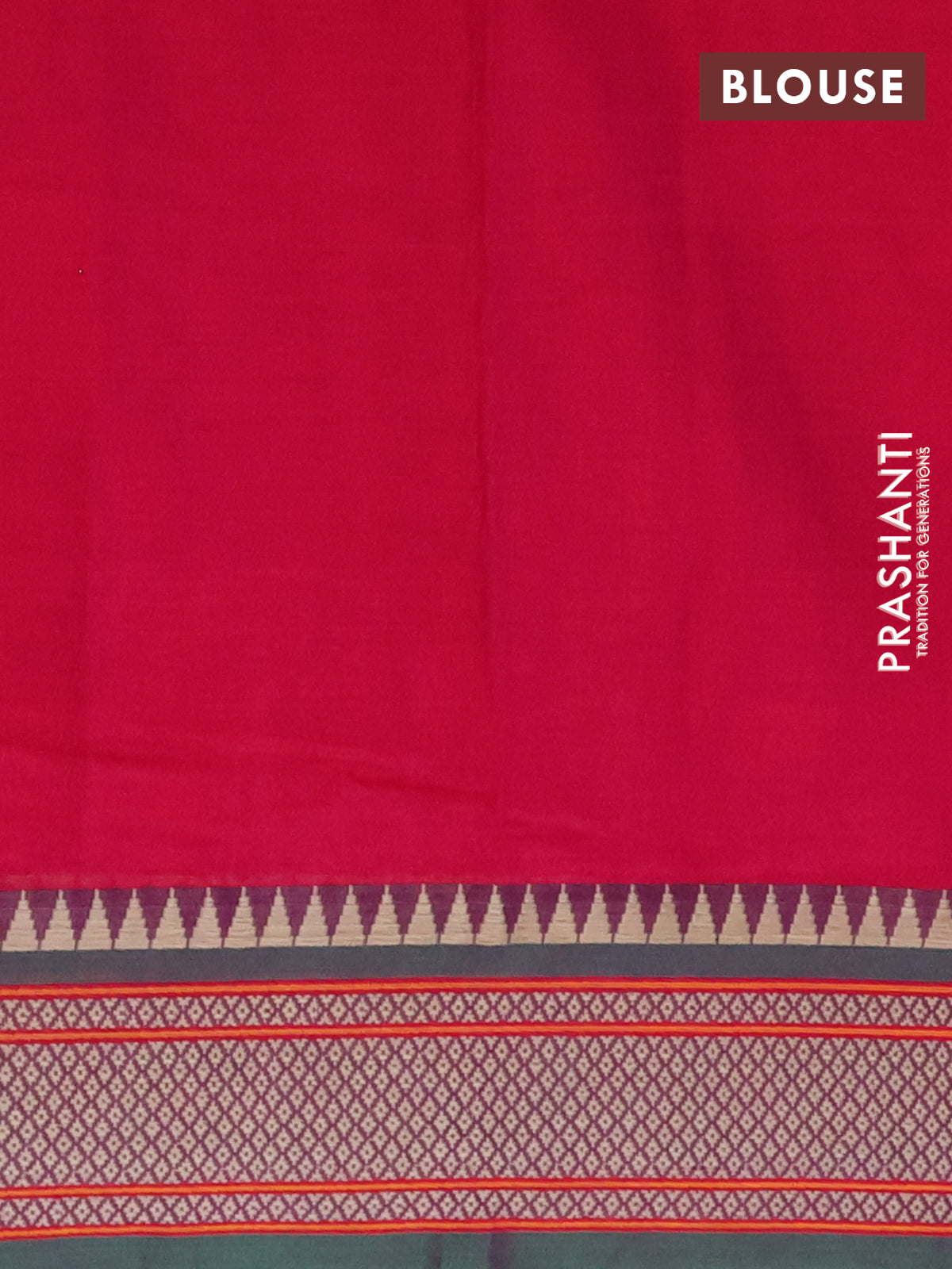Narayanpet cotton saree magenta pink and dual shade of green with plain body and thread woven border
