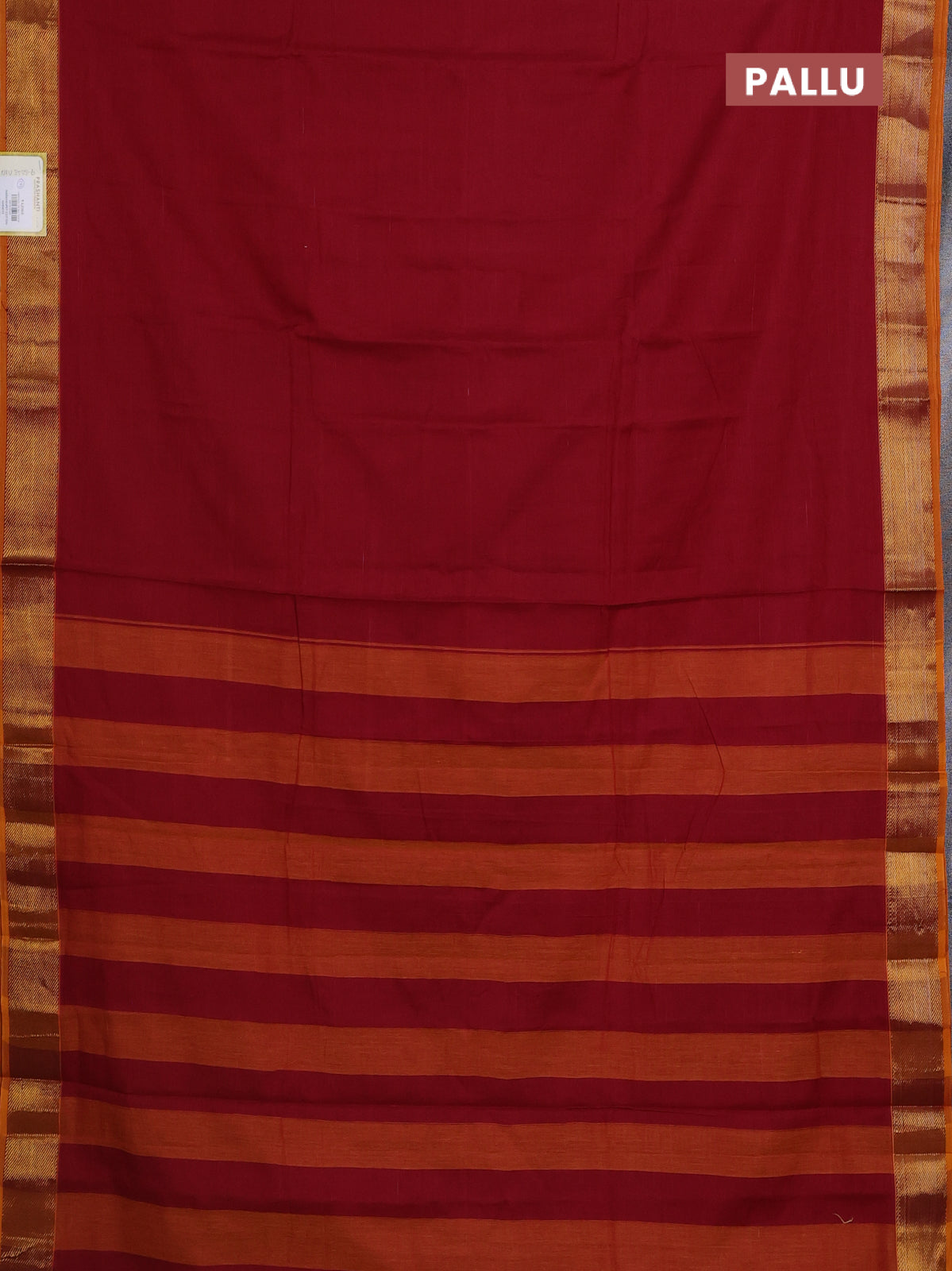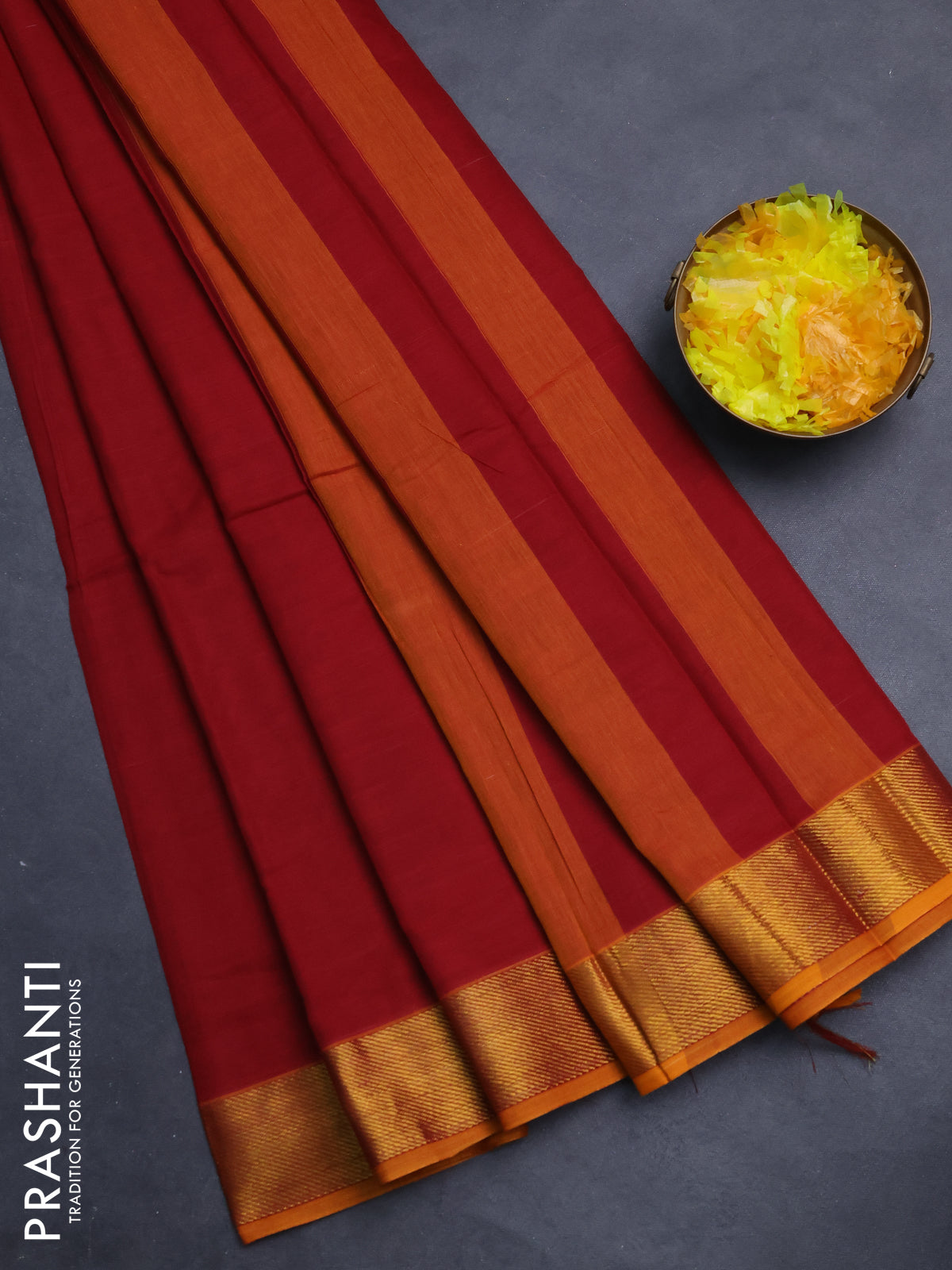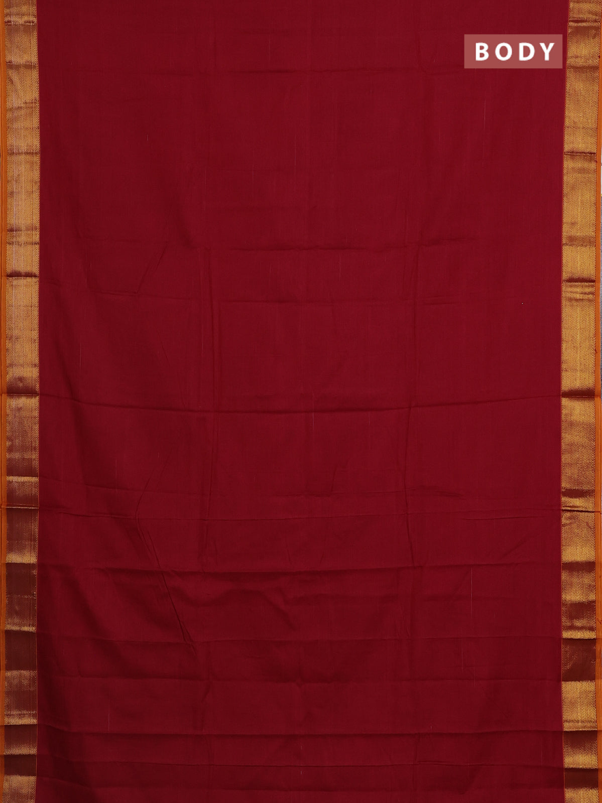 Narayanpet cotton saree maroon and mustard yellow with plain body and zari woven border