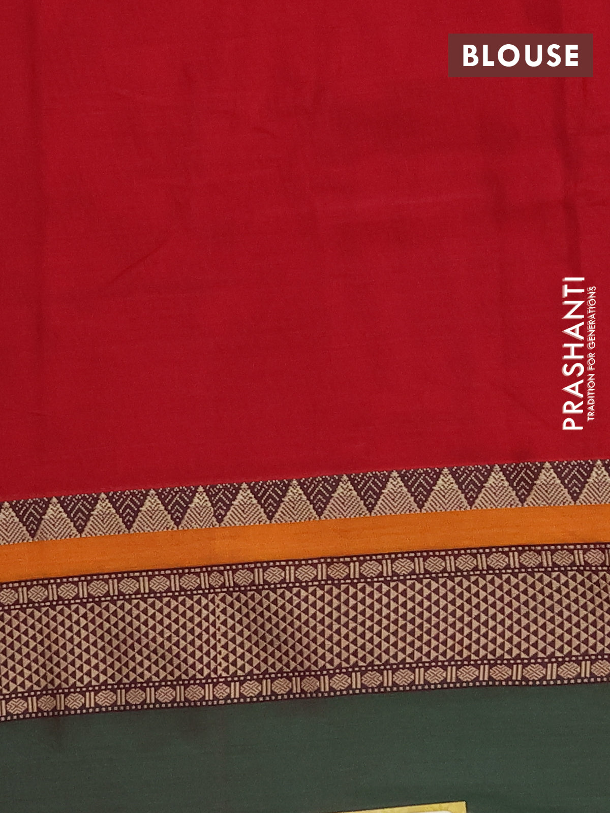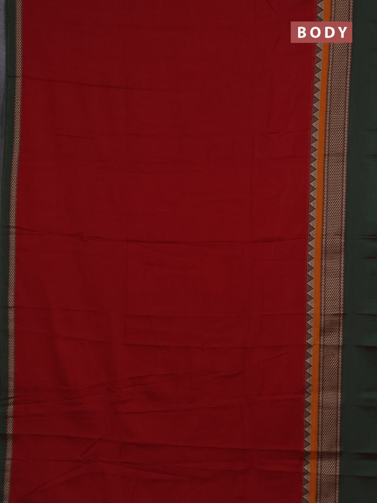 Narayanpet cotton saree red and dual shade of green with plain body and long thread woven simple border