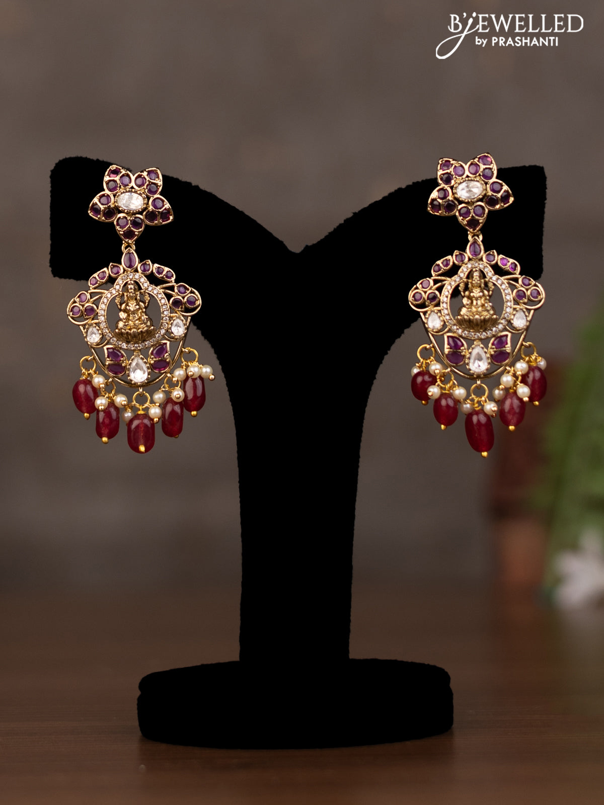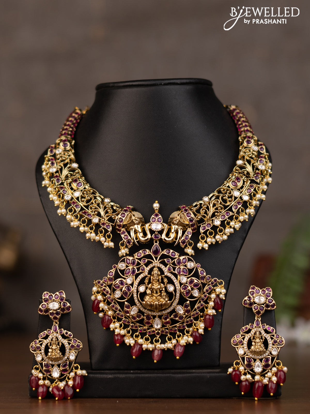 Necklace lakshmi pendant with kundan stones and natural beads & pearl hangings in victorian finish
