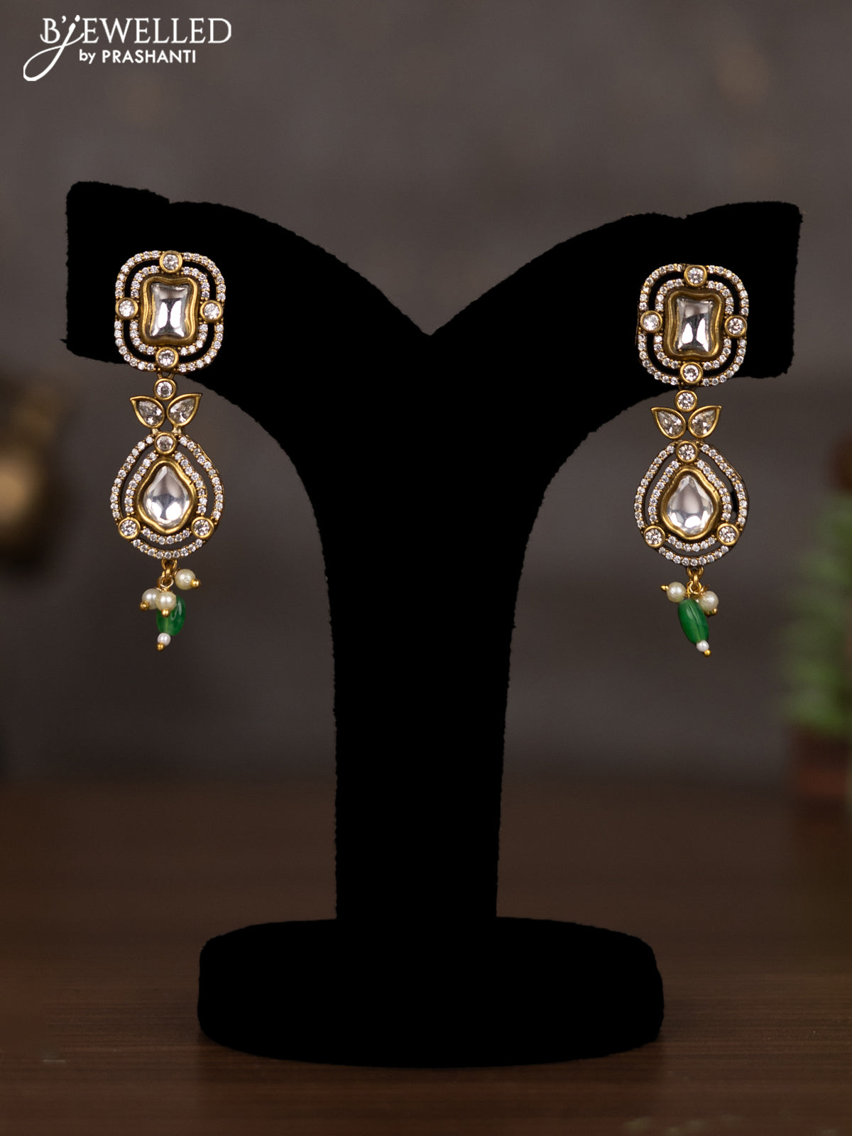 Necklace with emerald & cz stones and beads hangings in victorian finish