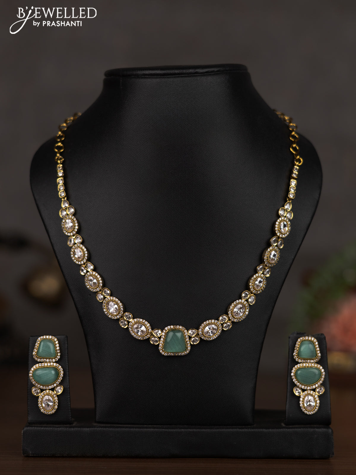 Necklace with mint green and cz stones in victorian finish