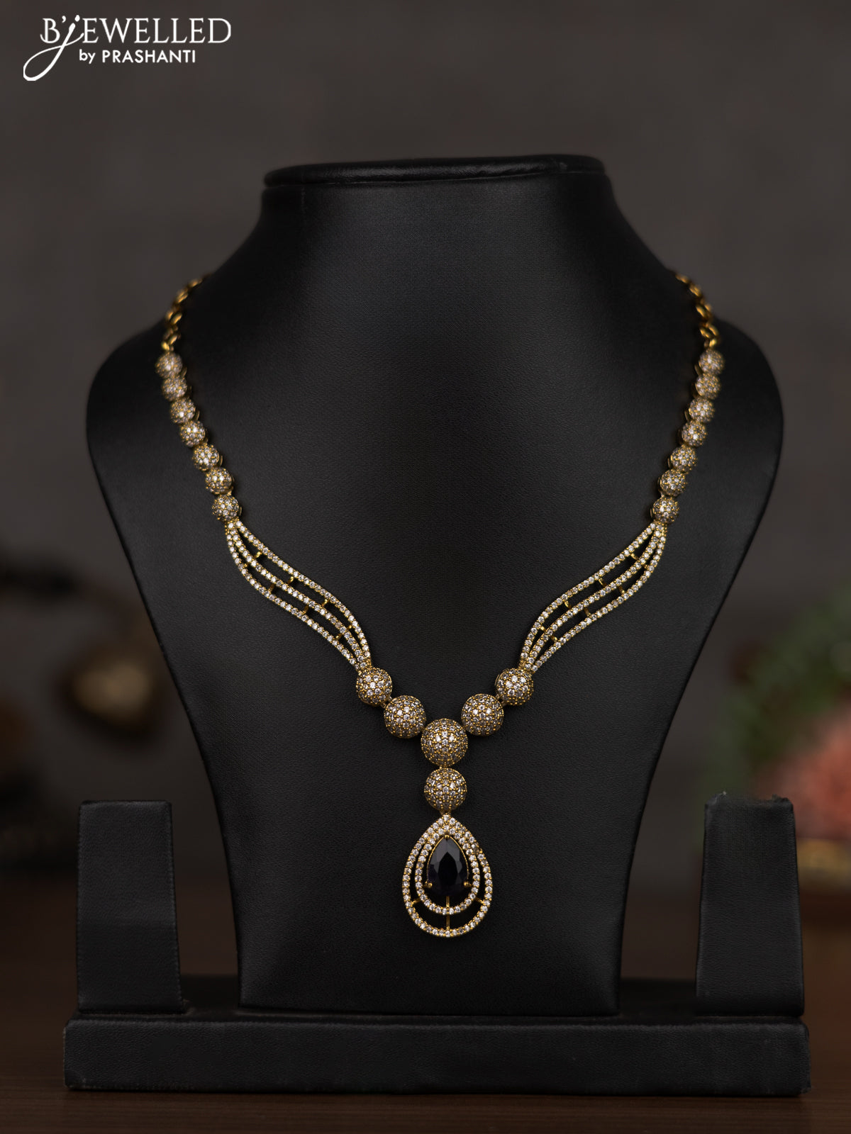 Necklace with violet and cz stones in victorian finish without earrings