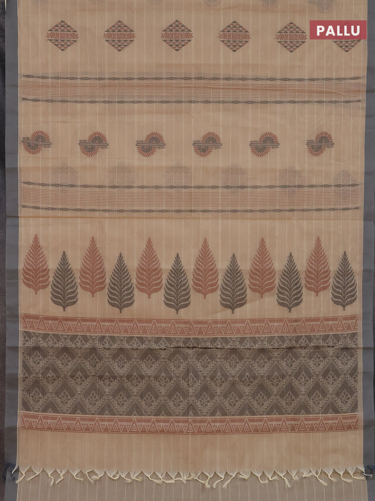 Nithyam cotton saree beige and grey with thread woven buttas and simple border