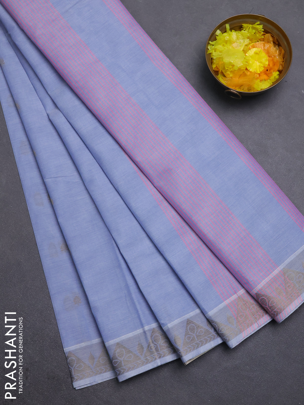 Nithyam cotton saree blue shade with thread woven buttas and thread woven border